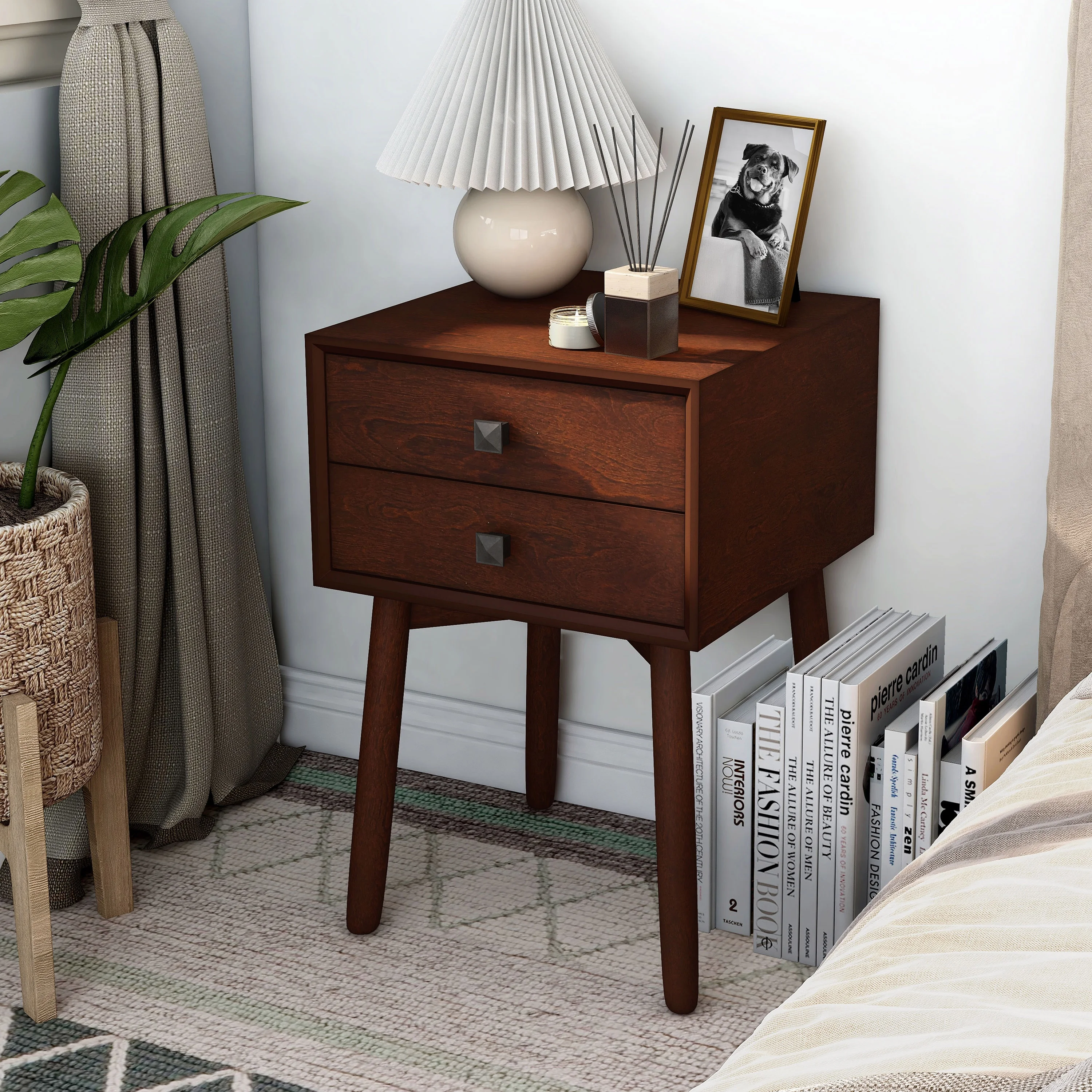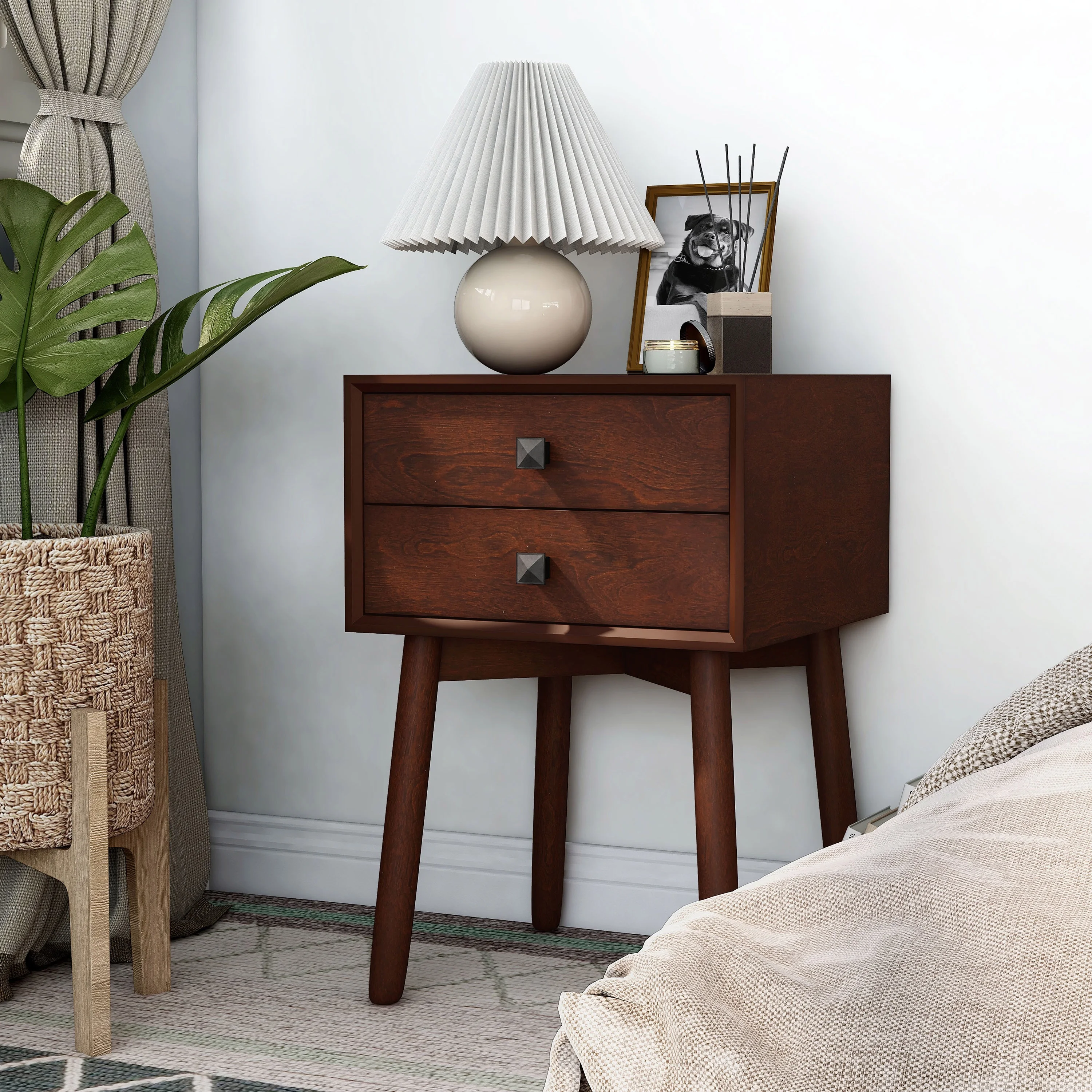 Berne Indoor 2-Drawer Wood Espresso End Table for Bedroom by Furniture of America