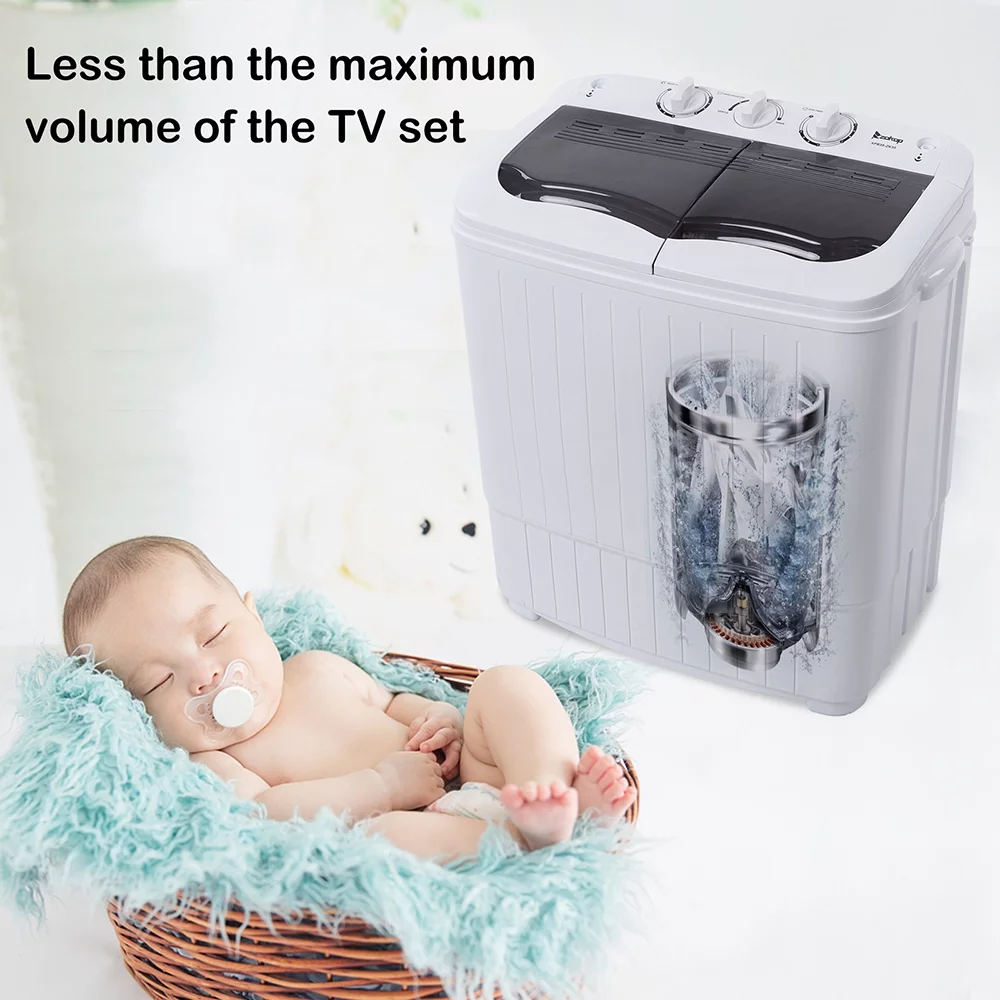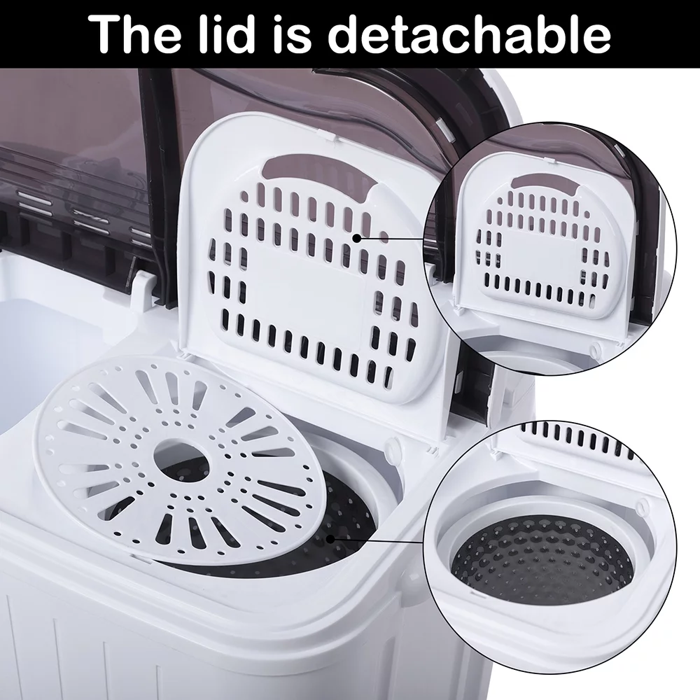 Portable Compact Washing Machine 14.3(7.7 6.6)lbs Semi-automatic Gray Cover Washing Machine