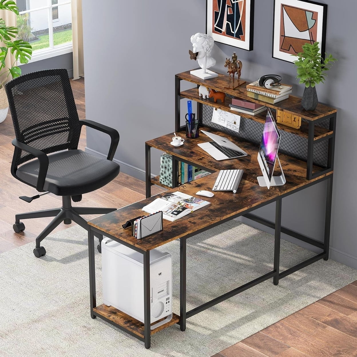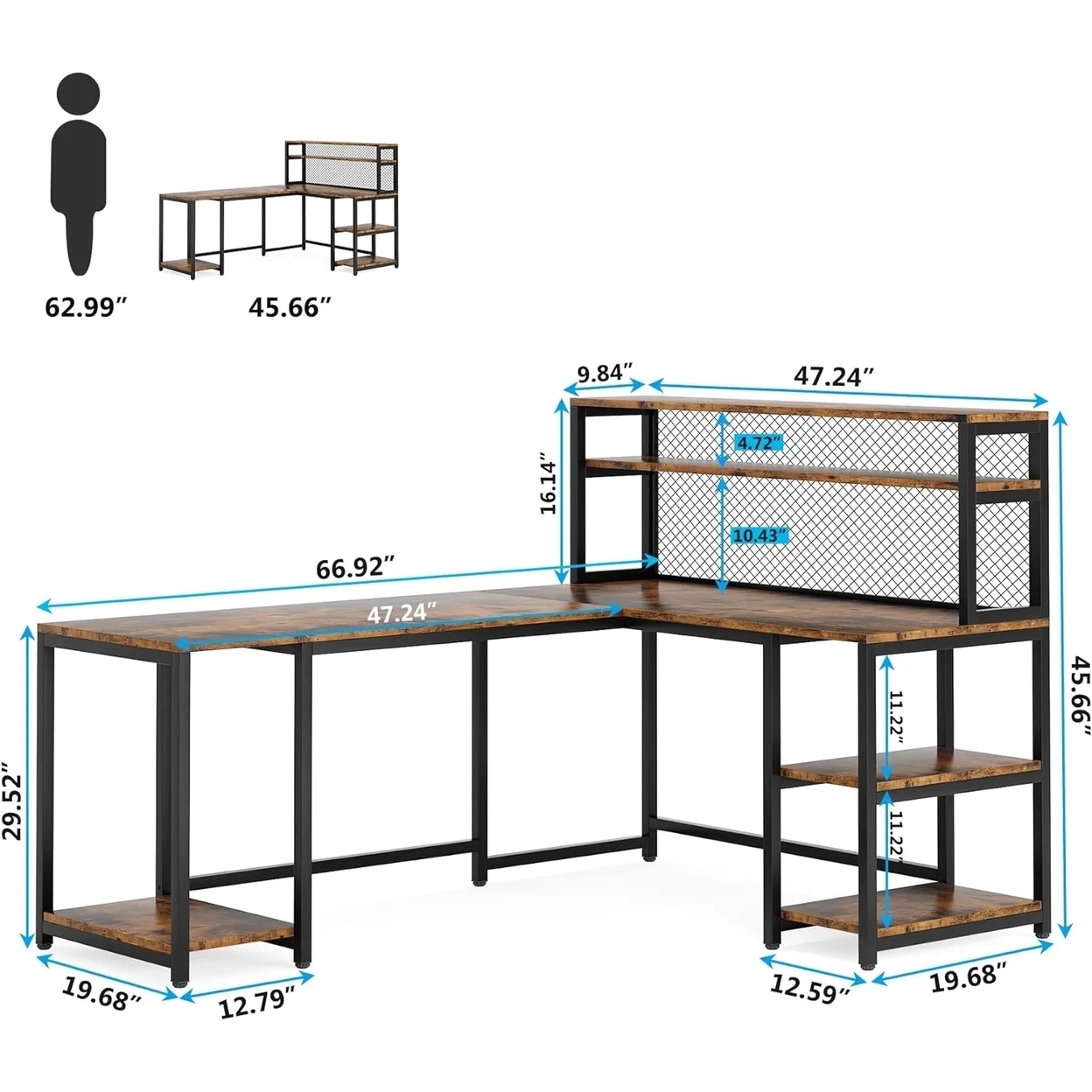 67" Large Computer Desk with Hutch Office Desk Study Table Writing Desk