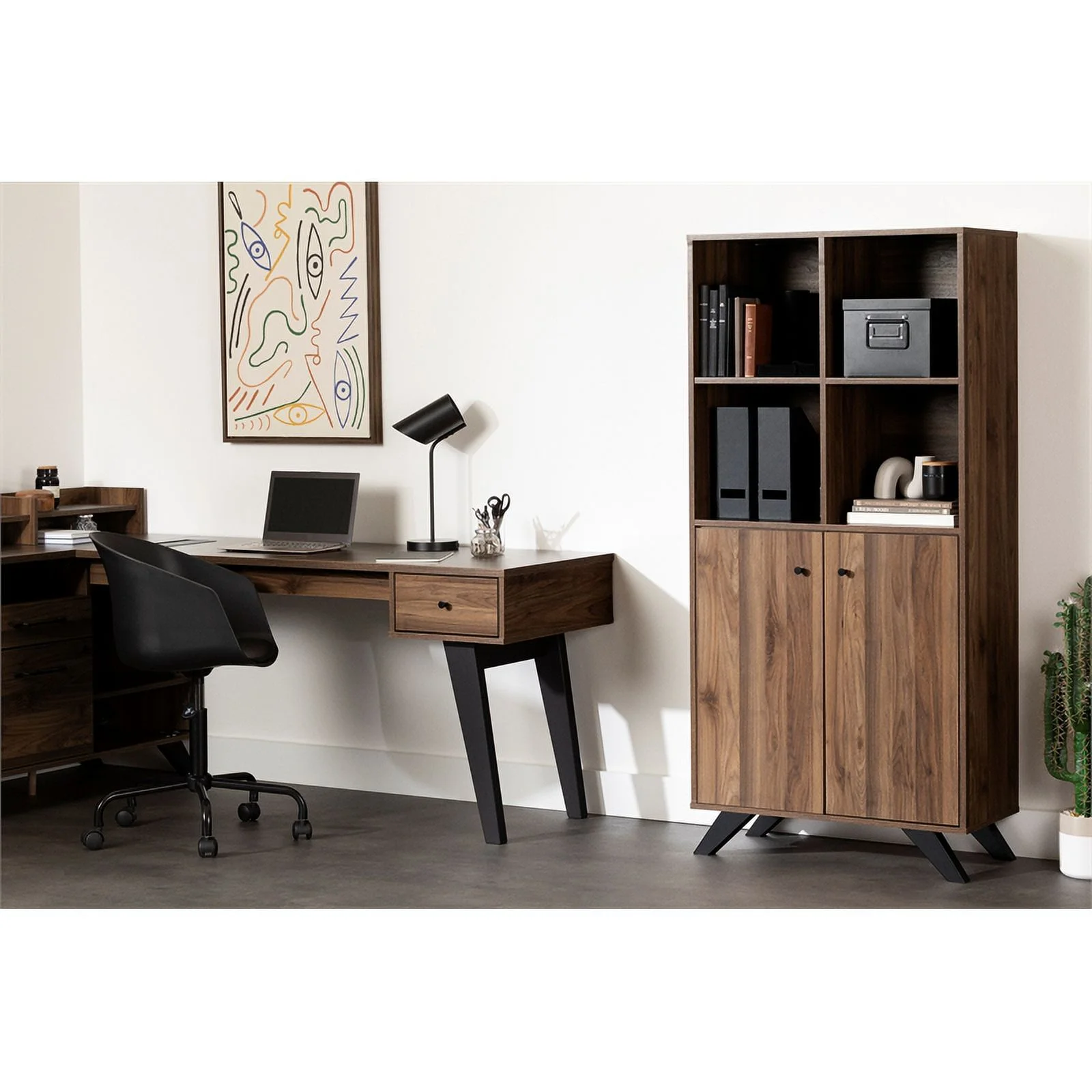 Pemberly Row Contemporary Bookcase with Doors Natural Walnut
