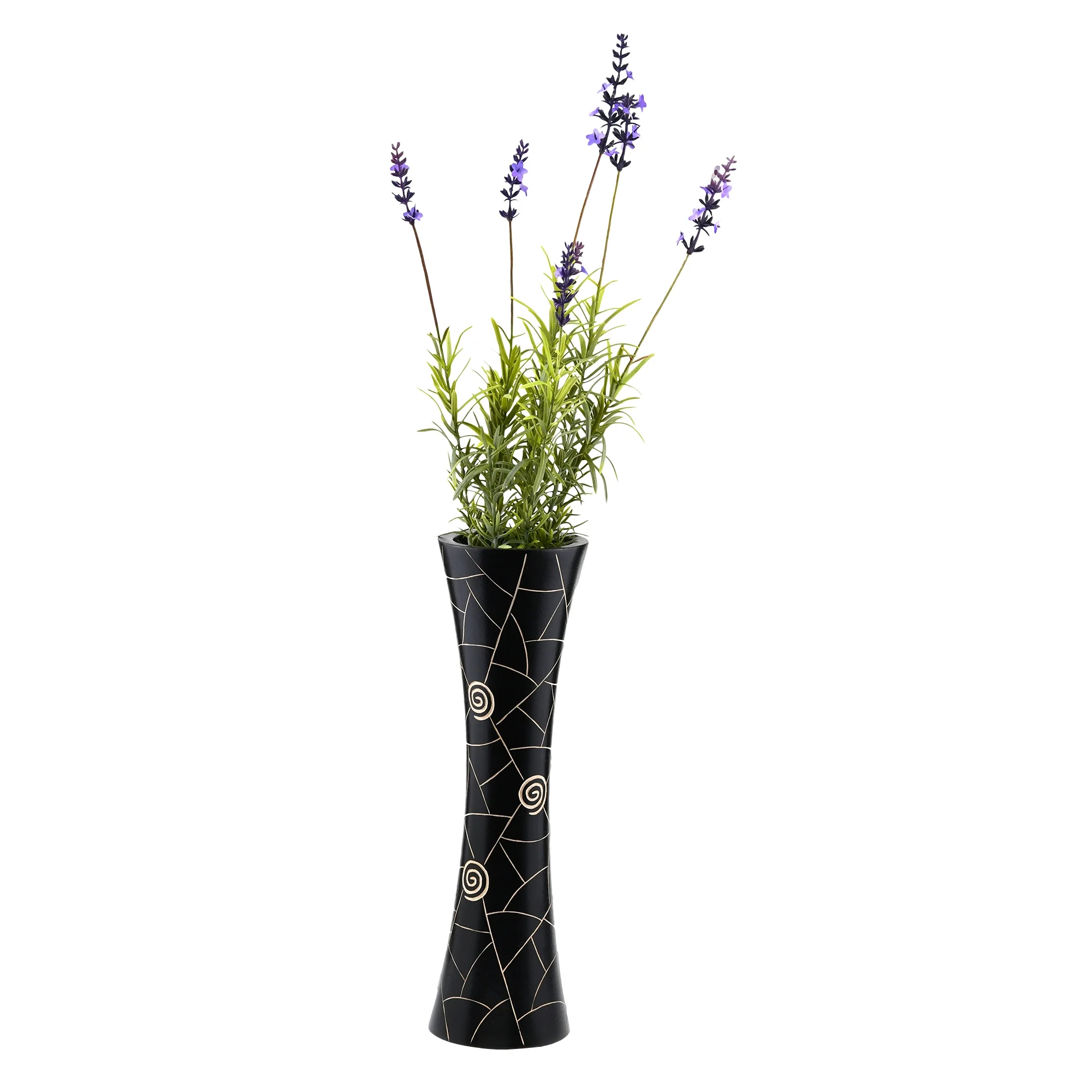 AeraVida Sleek Classy Modern Black Golden Geometric Etch Natural Mango Tree Wood Concaving Vase