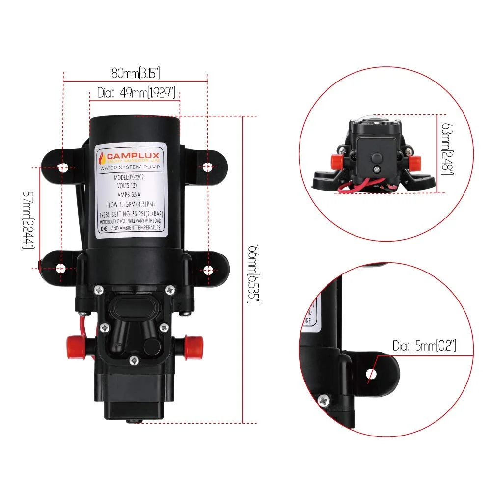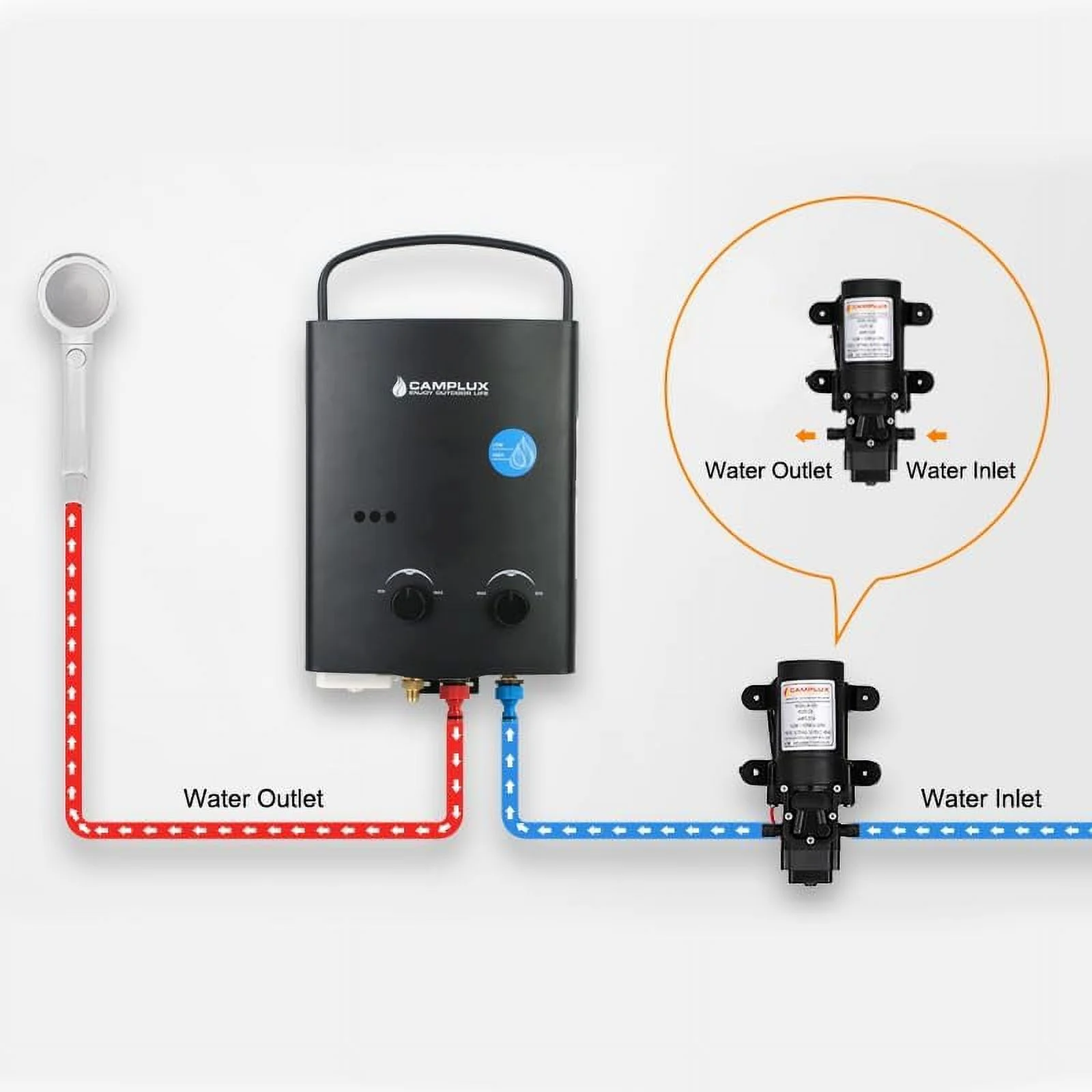 Camplux 12V Water Pump 1.2GPM for Gas Outdoor Tankless Water Heater AY132