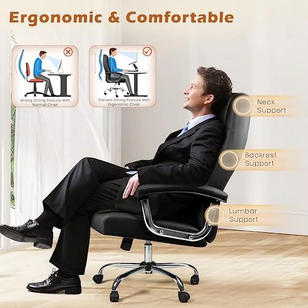 RUNFAYBIU Big and Tall Office Chair 350lbs Leather Office Chair for Heavy People High Back Executive Desk Chair Adjustable Home Office Chair with Armrest Swivel Computer Chair with Spring