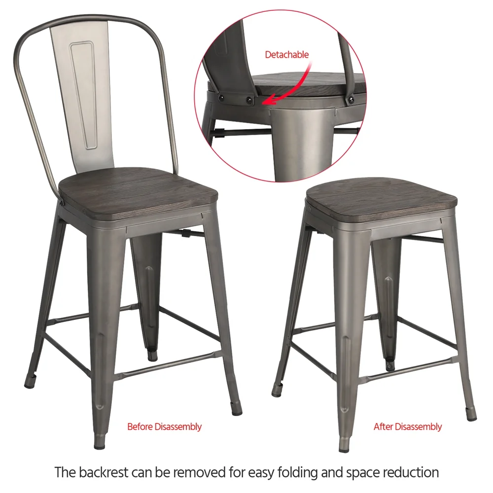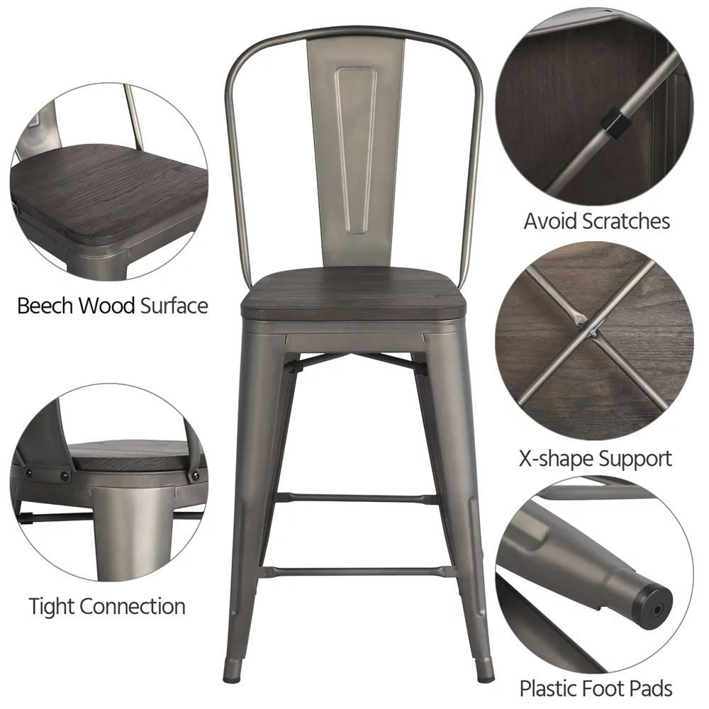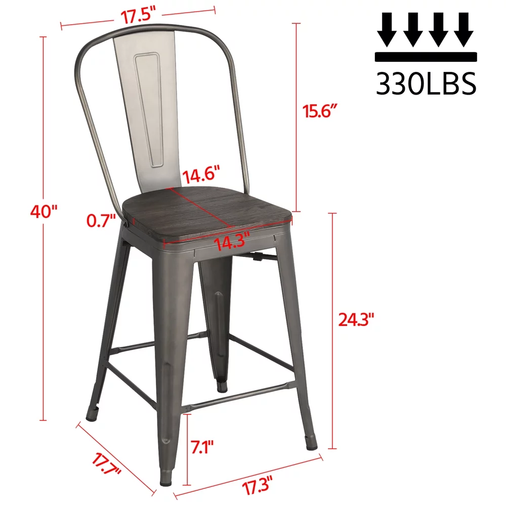 SMILE MART 4pcs Industrial Metal Bar Stool with Solid Wood Seat for Home Restaurants, Metal