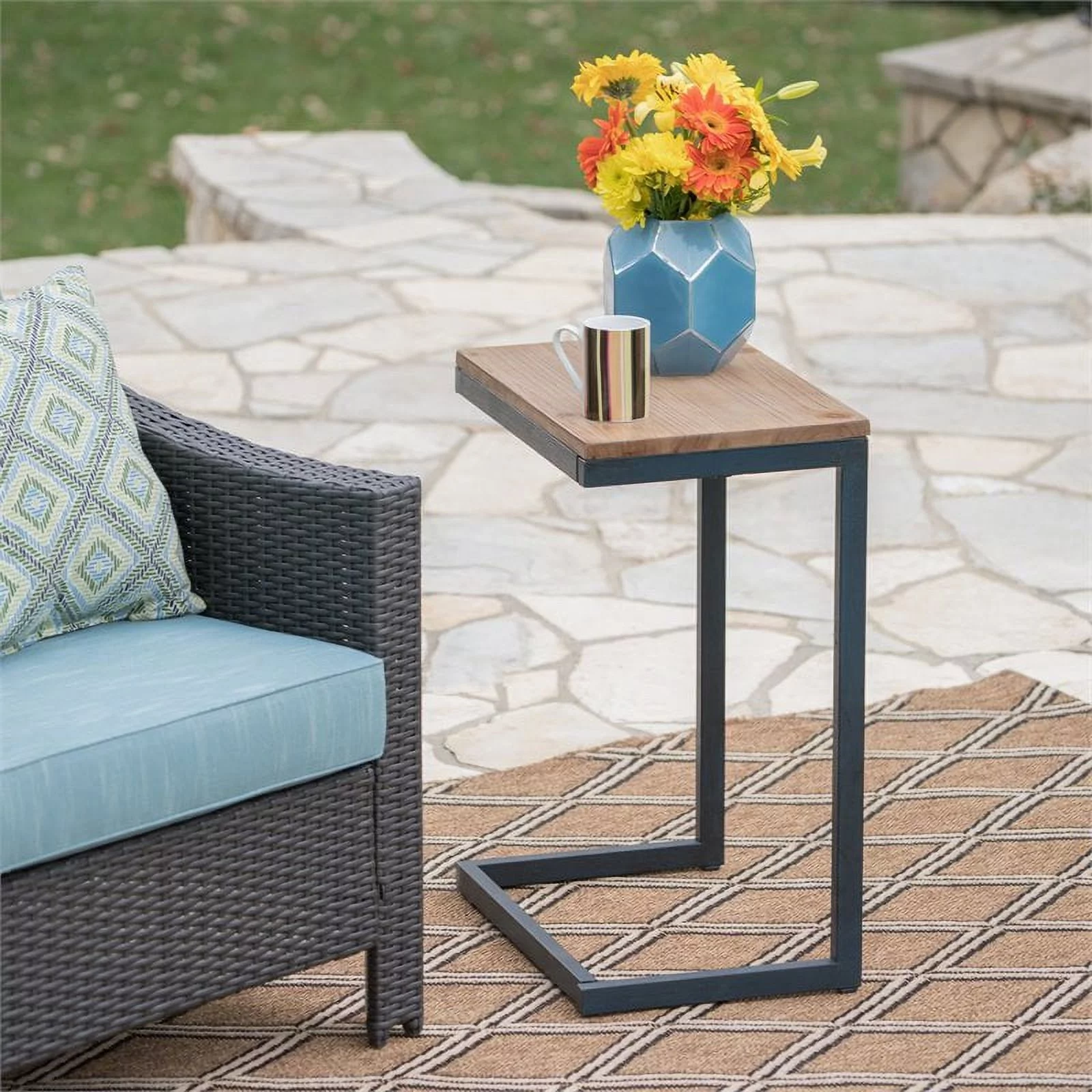 Bowery Hill Modern Firwood C-Shaped Accent Table in Brown and Black
