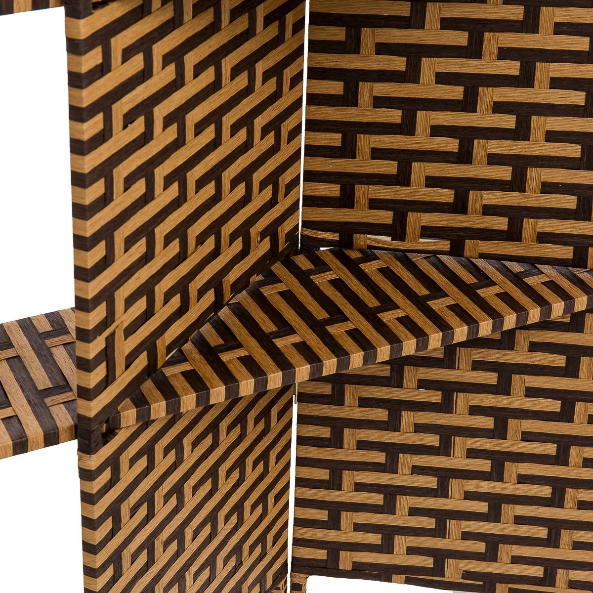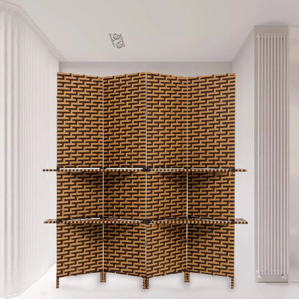 THY COLLECTIBLES Freestanding Woven Bamboo 4 Panels Hinged Privacy Panel Screen Partition Wall With 2 Display Shelves Holding Room Divider With Shelves-Bamboo (Darkmocha)