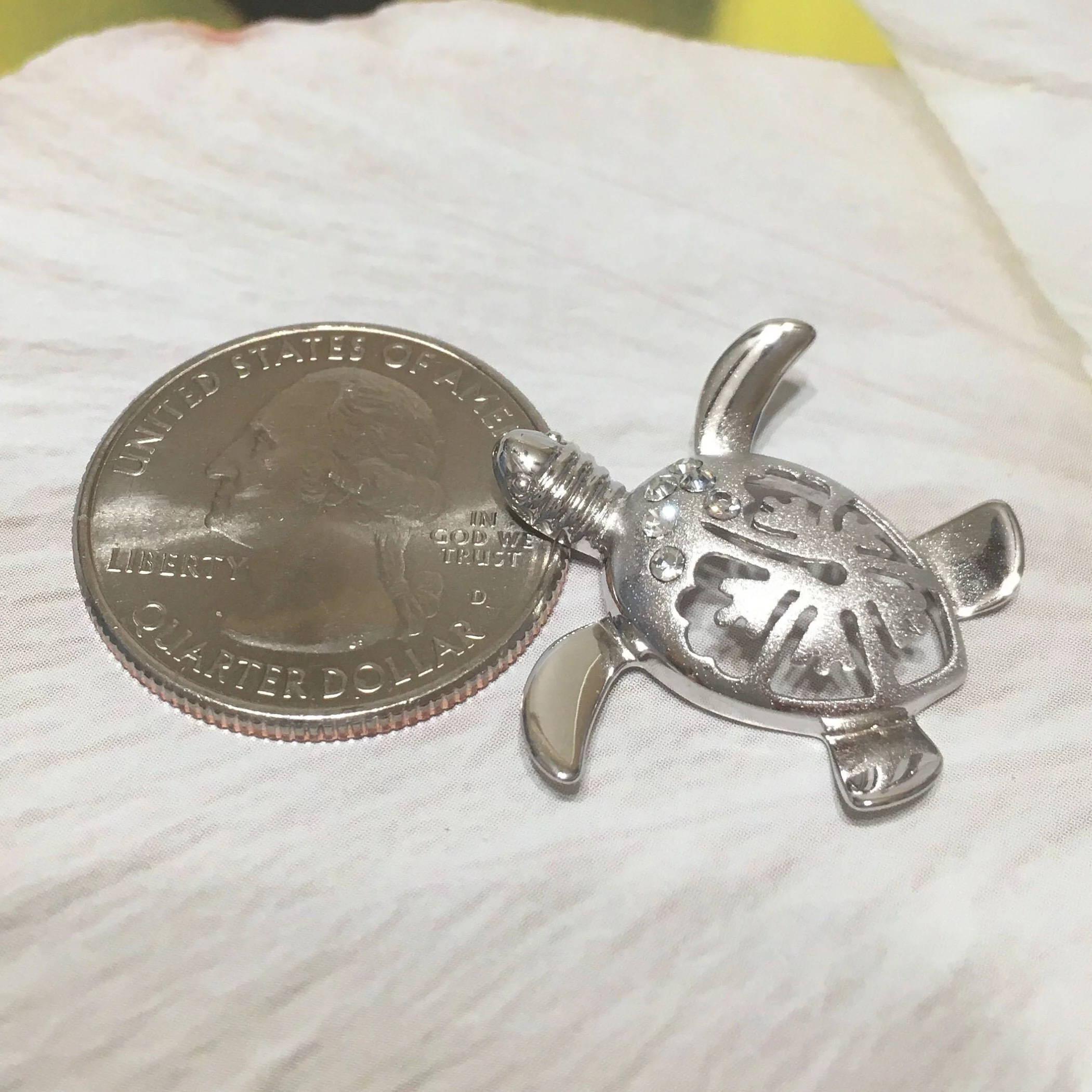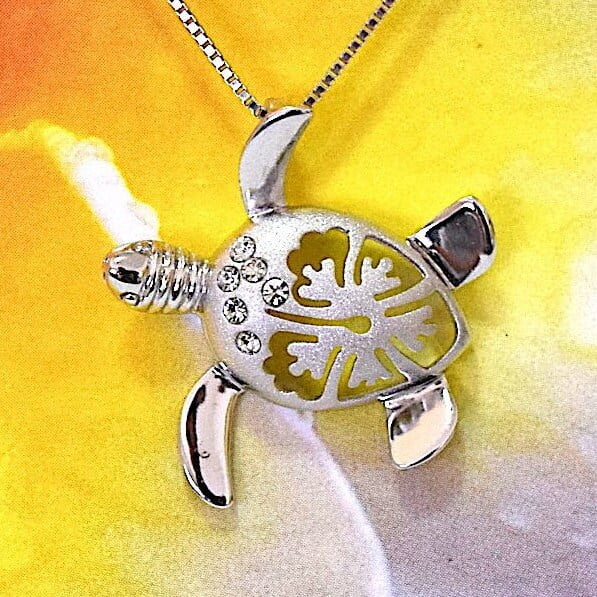 Beautiful Hawaiian Large Sea Turtle Hibiscus Earring and Necklace, Sterling Silver Turtle Hibiscus CZ Pendant, N6025S Birthday Mom Gift