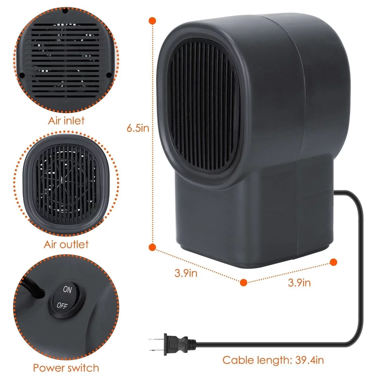 500W Portable Electric Space Heater Mini Desktop Fan Heater Personal Small Space Heater for Home Office