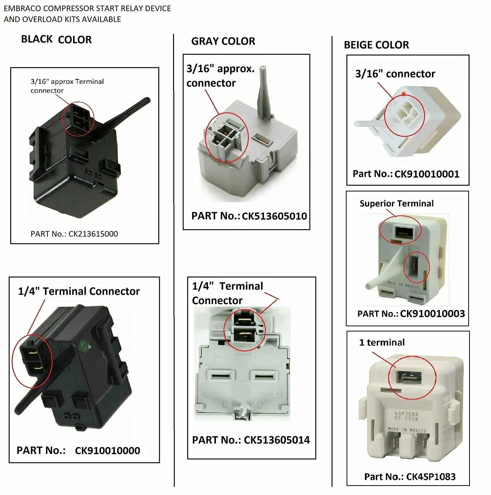 GlobPro WR08X22874 CK900368 Fits Embraco Compressor Start Relay 1/4 terminal Replacement for and compatible with GE Hotpoint Heavy DUTY