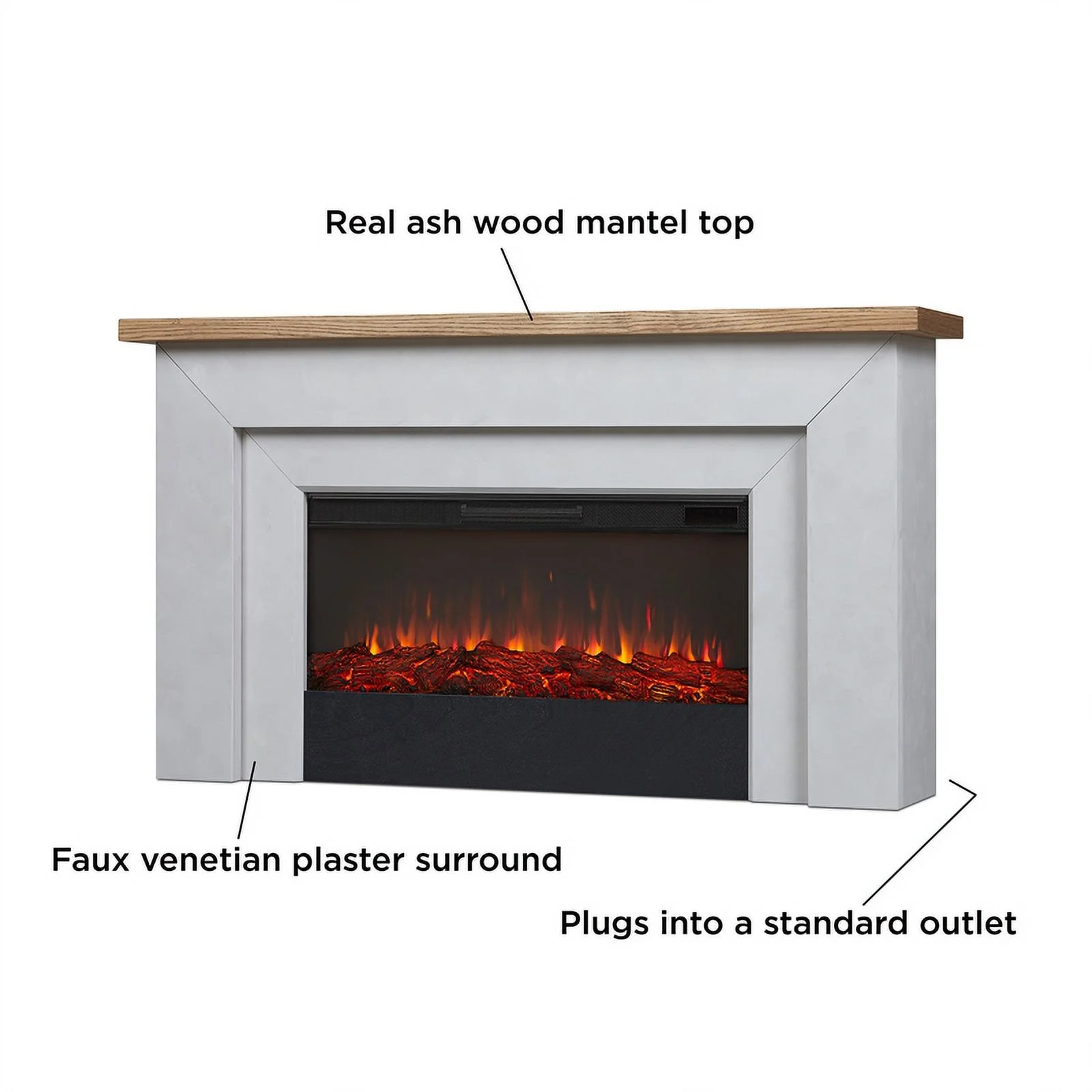 Bowery Hill 68" Wood Landscape Electric Fireplace in Venetian Gray
