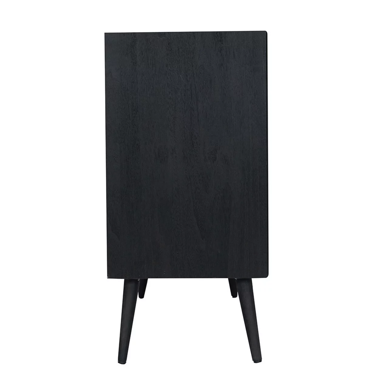 Dana 47 Inch TV Media Entertainment Center, Pine Wood, Rattan Doors, Black- Saltoro Sherpi