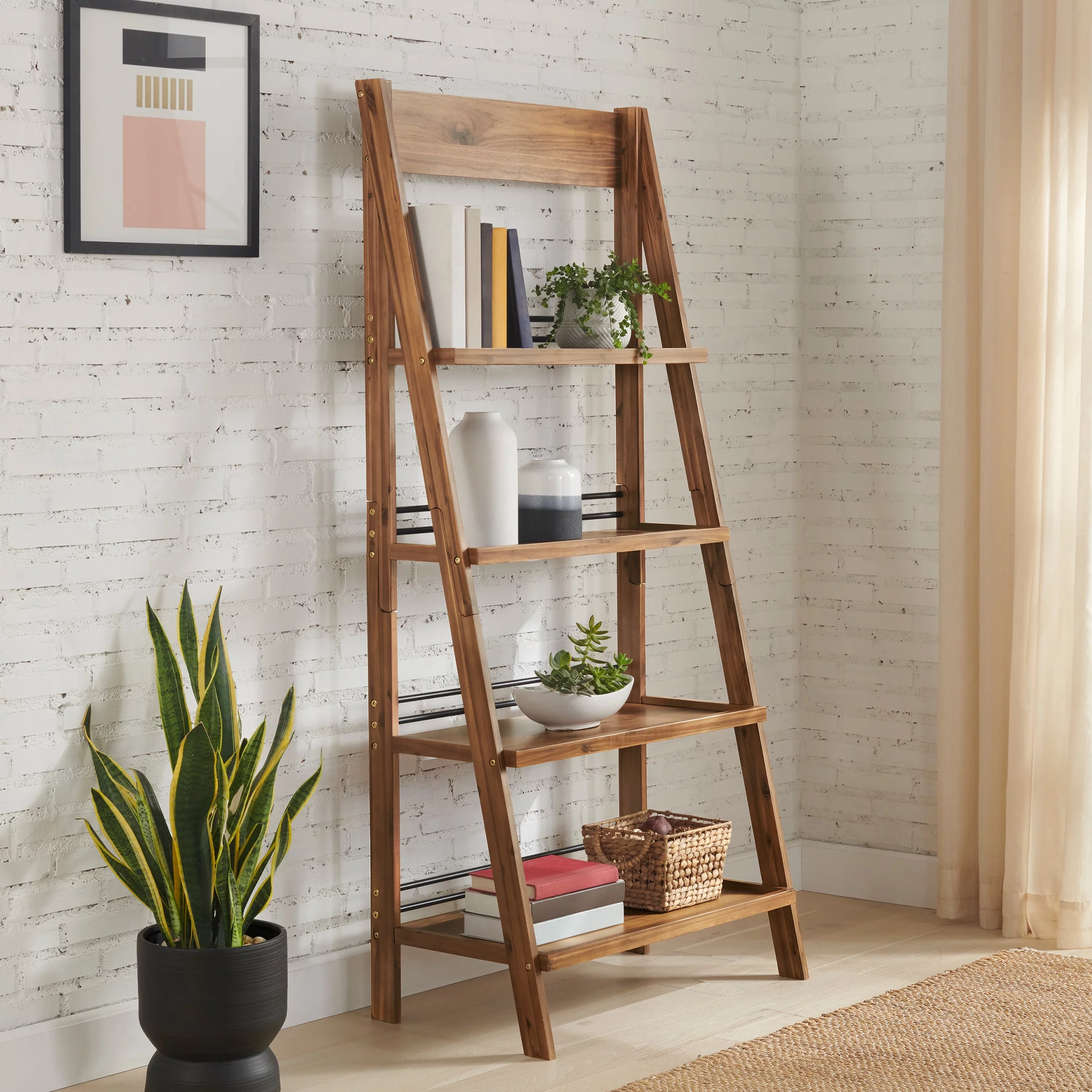 Lavish Home 4-Tier Tall Ladder Bookshelf for Living Room or Office (Walnut)