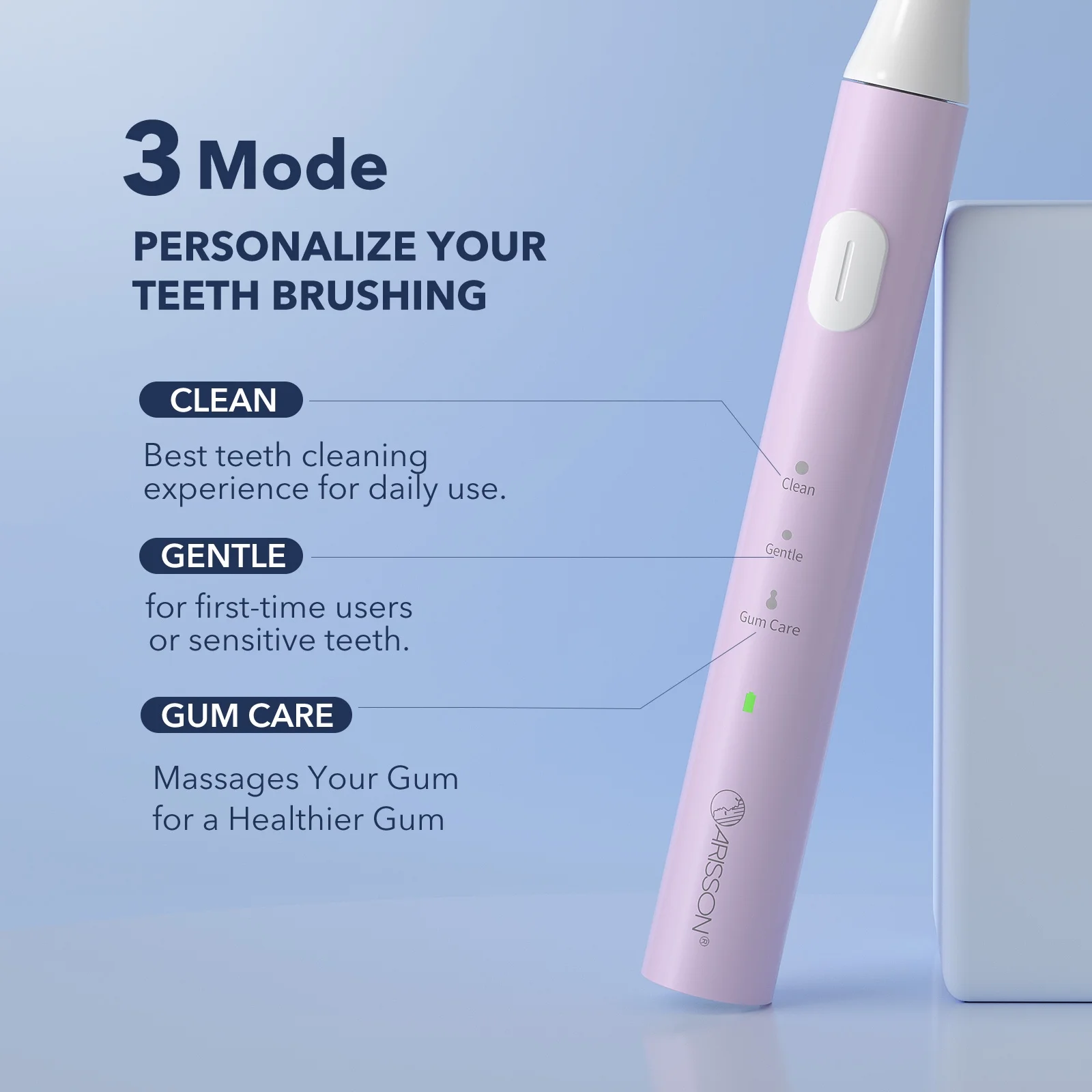 ARISSON Sonic Electric Toothbrush for Adults and Kids, 1.5H Fast Charge for 90 Days, 40,000 VPM Ultrasonic Electric Toothbrushes with 2 Mins Smart Timer, White on Cotton Candy
