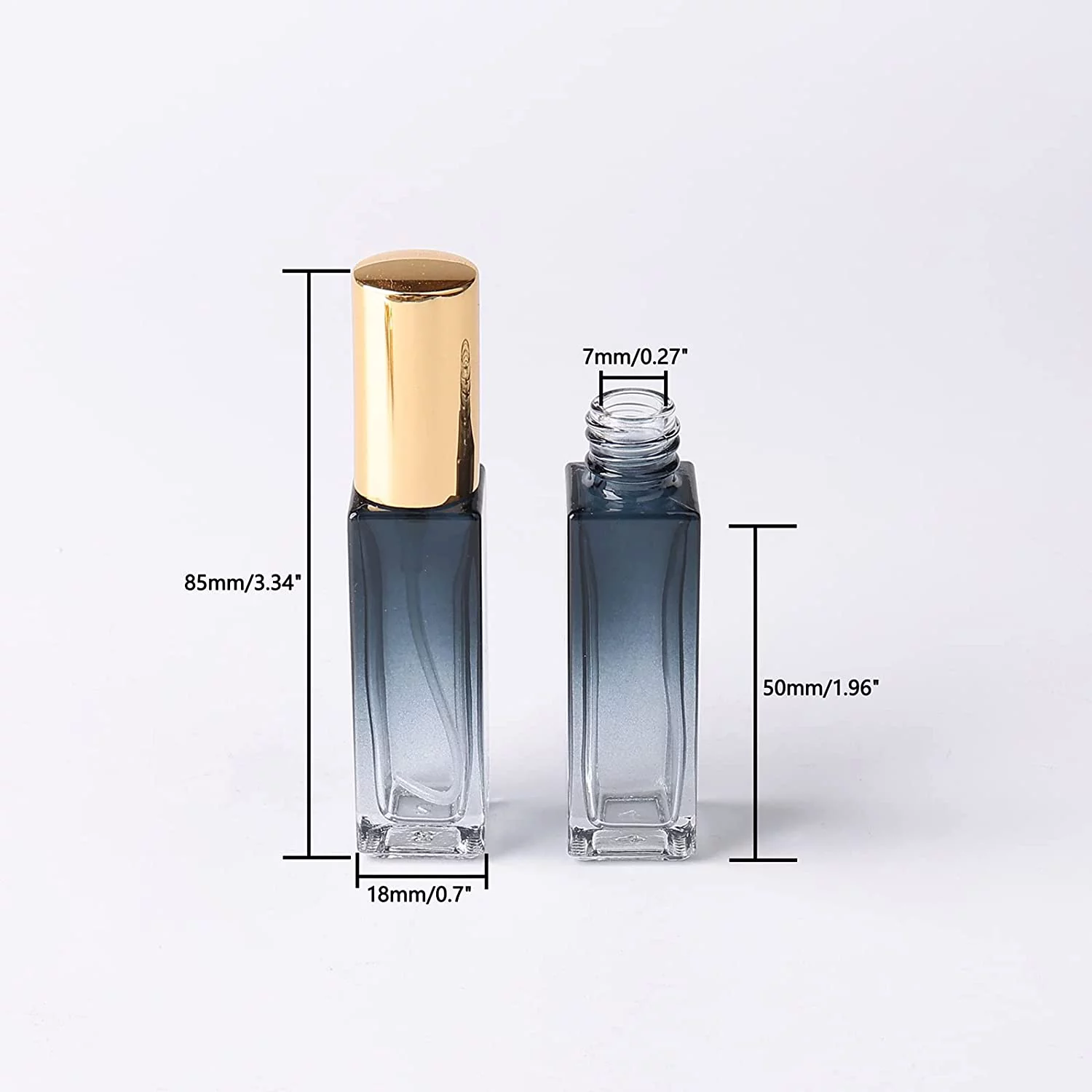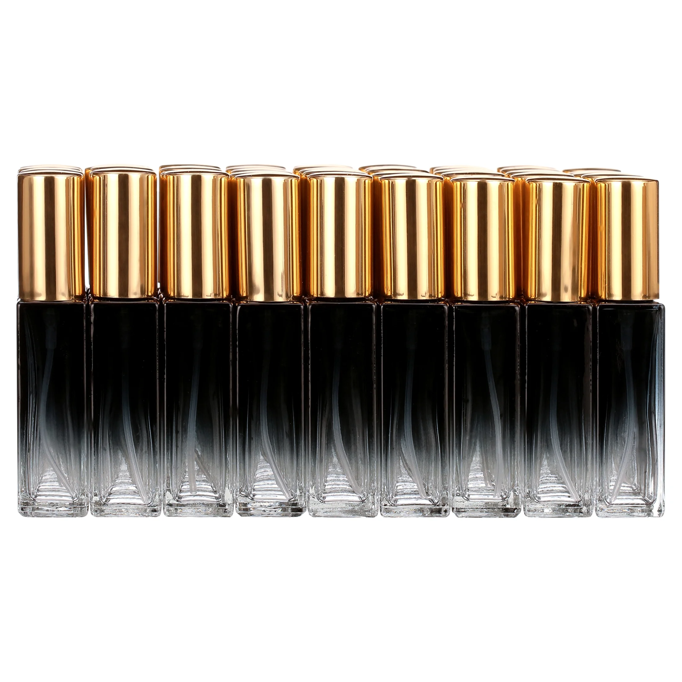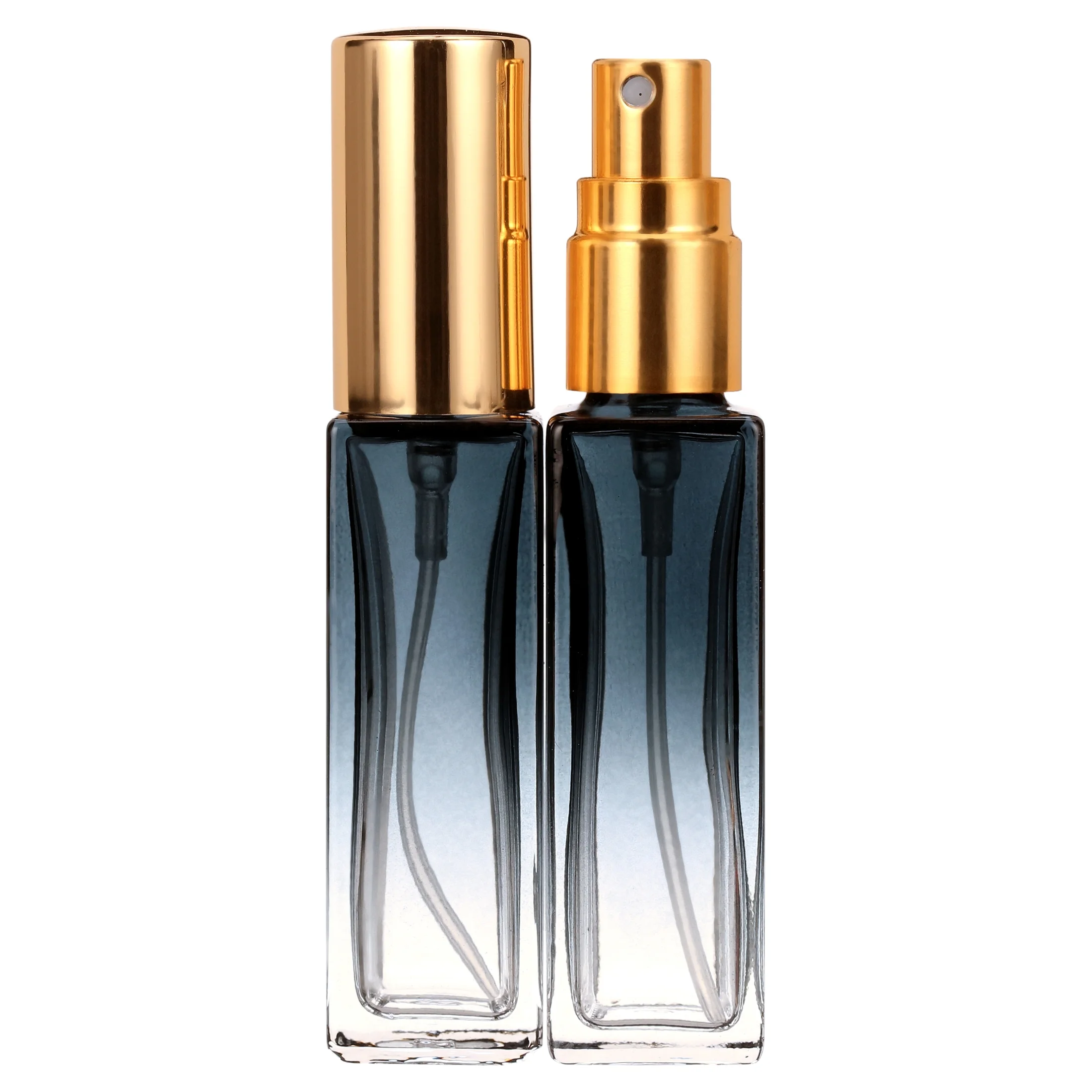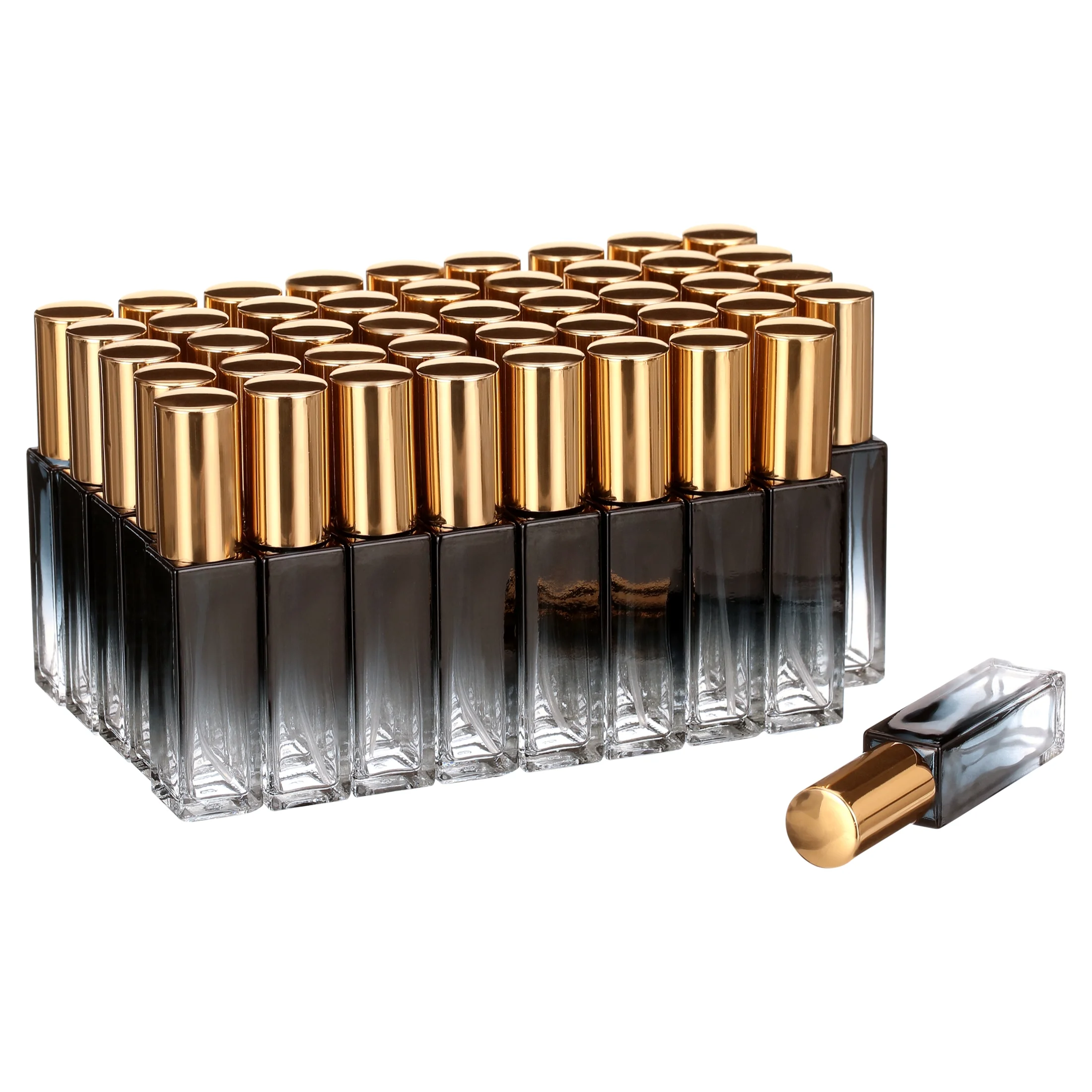 Mini Square Spray Bottle 45pcs 10ml Glass Empty Spray Refillable Perfume Bottle Fine Mist Liquid Dispenser for Makeup Skin Care (Gold Cap)