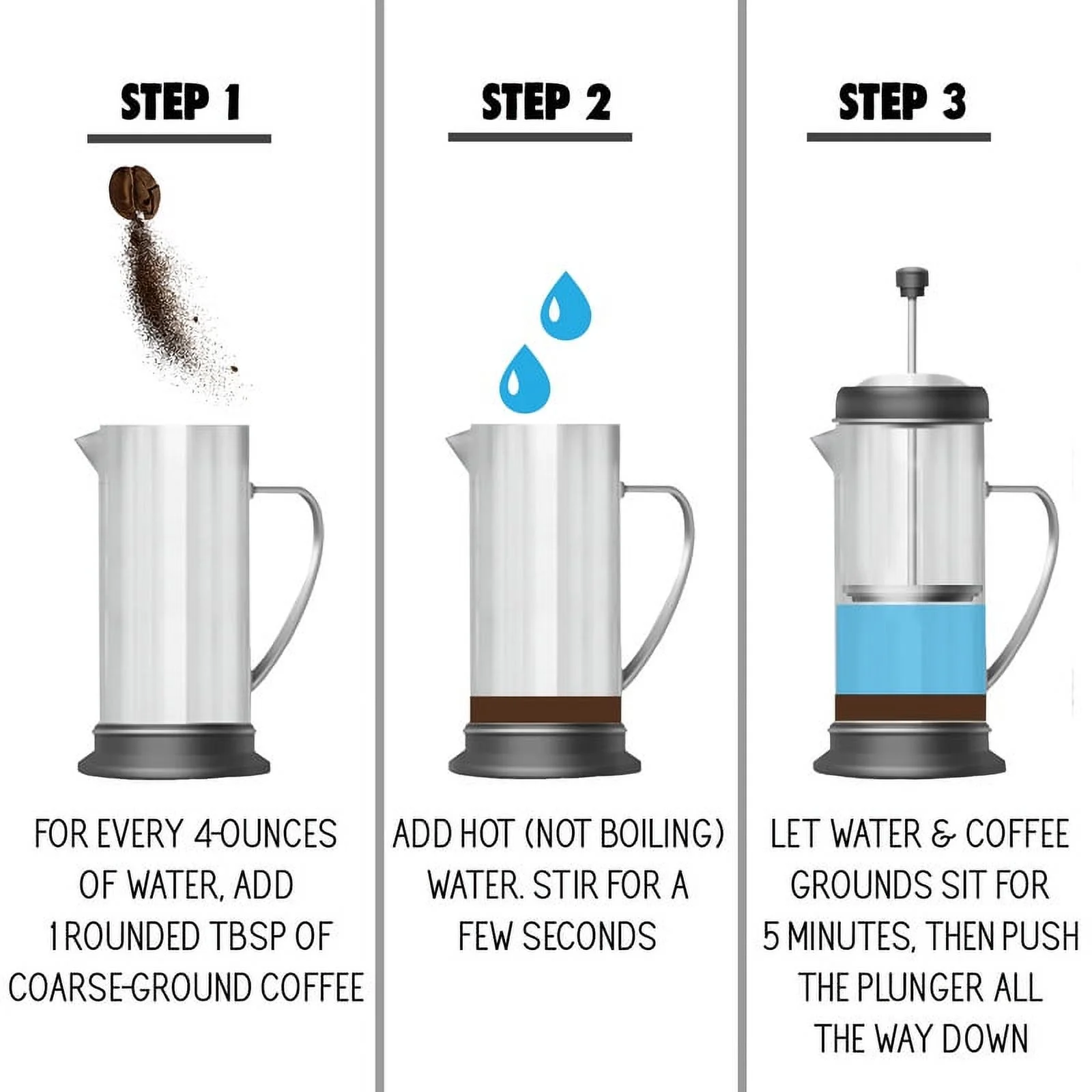French Press Coffee Maker, Maximum Flavor Coffee Brewer with Superior Filtration, 2 Cup Capacity, Silver with Wood Finish, ABN5M010-SSW