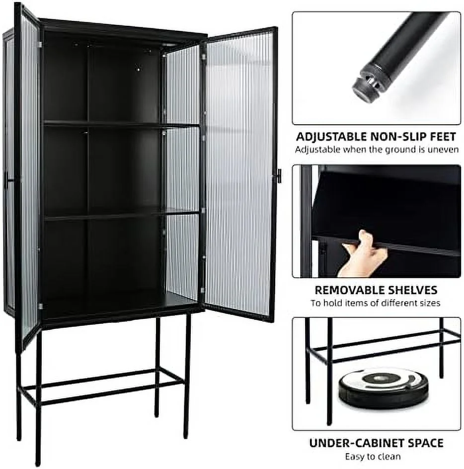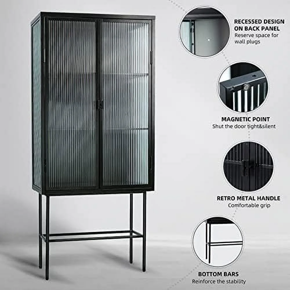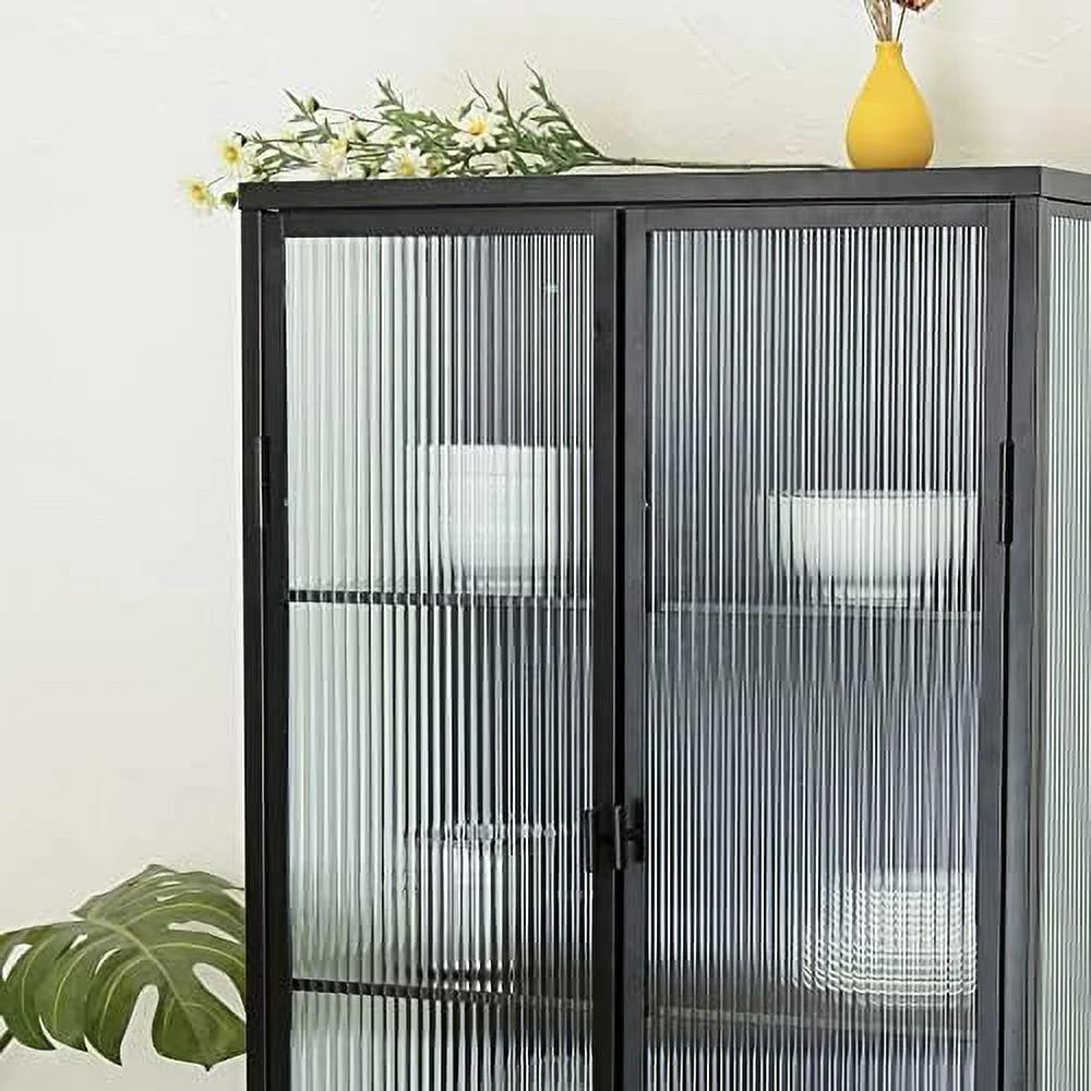 TJUNBOLIFE Fluted Glass Cabinet Multi-Functional Sideboard Cabinet Dual Door Console Table with Removable Shelves for Dining Room Living Room Kitchen Bathroom (Black Dual Doors)