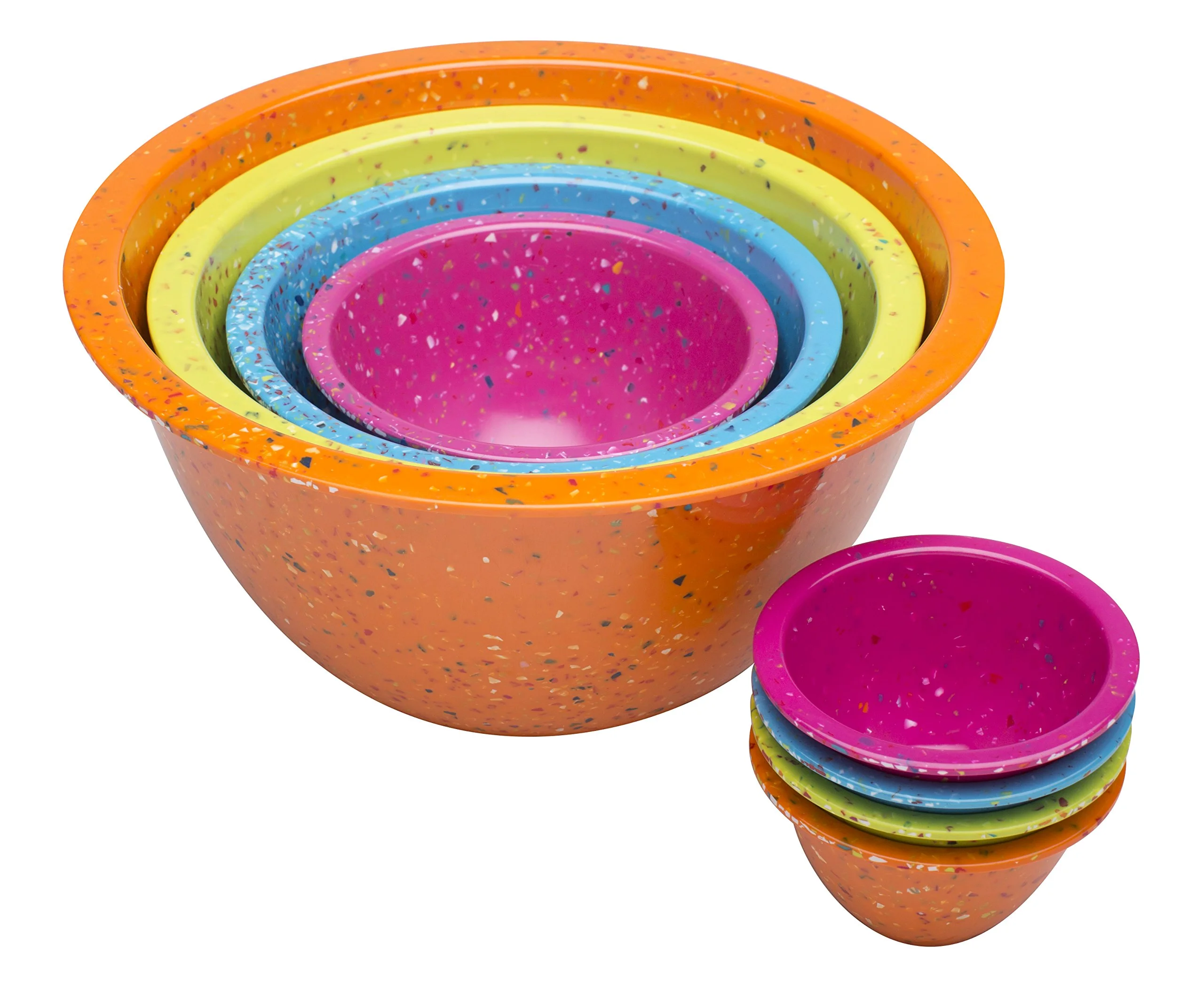 Zak Designs for Prepping and Serving Food, Made with Durable Melamine Set, Nesting Space Saving Storage, 4 Piece Confetti Mixing Bowls, Orange,Kiwi, Turquoise, Magenta