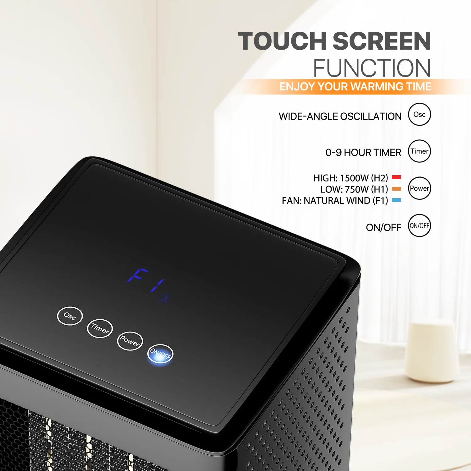 Magshion LCD Display Space Heater, Portable Space Heater with Timer, 1500W PTC Electric Heater Fan, for Home Office Dorm Room, Black