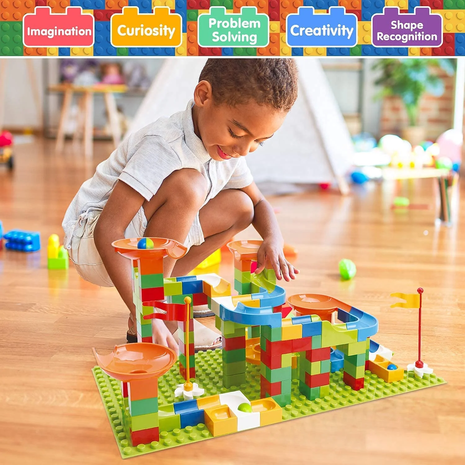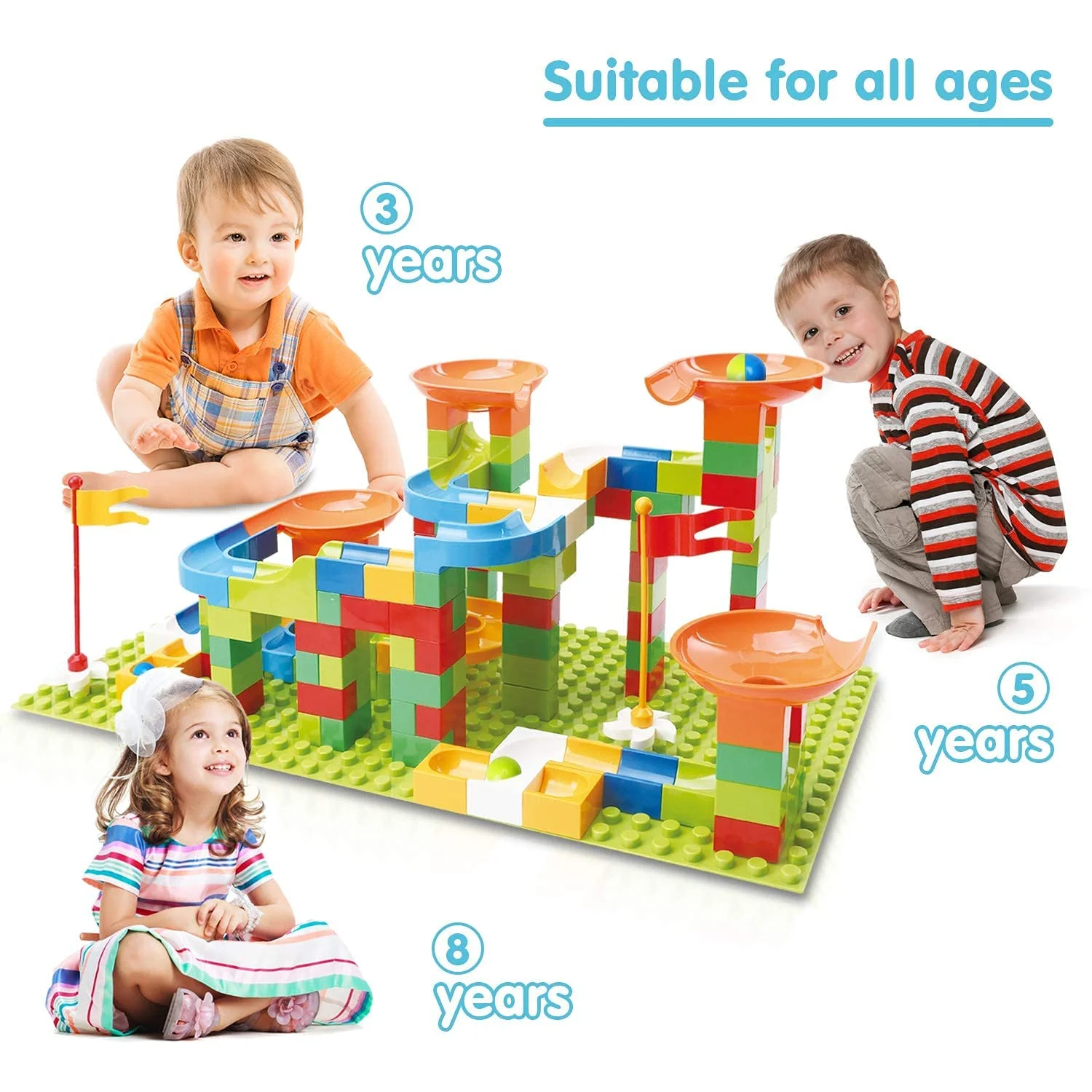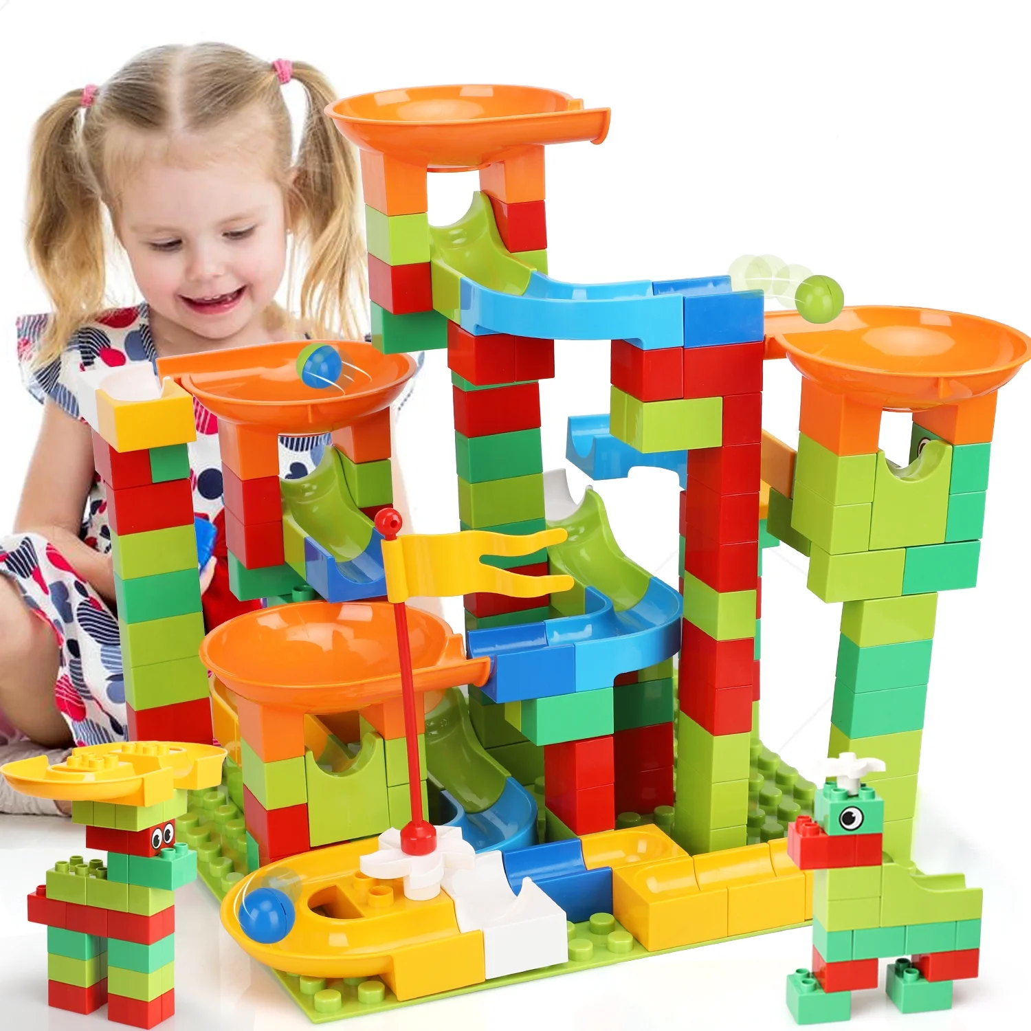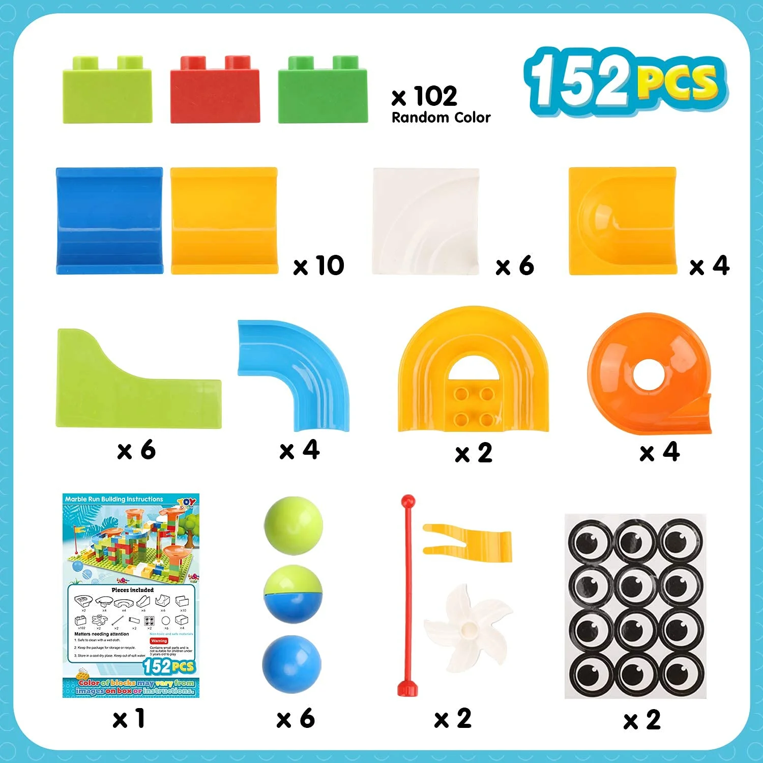 TOY Life 152 PCS Marble Run Set Building Blocks, Marble Race Tracks for Kids Includes Classic Big Blocks STEM Toy Bricks Set, Marble and Many Accessories for Toddlers, Kids Age 3,4,5,6,7,8,9+