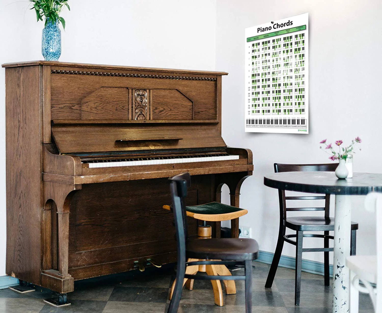 Piano Chord Chart Poster (18"x24") - Educational Poster for Pianists Songwriters & Producers. Perfect Guide for Learning to Play Keyboard and Write Music.