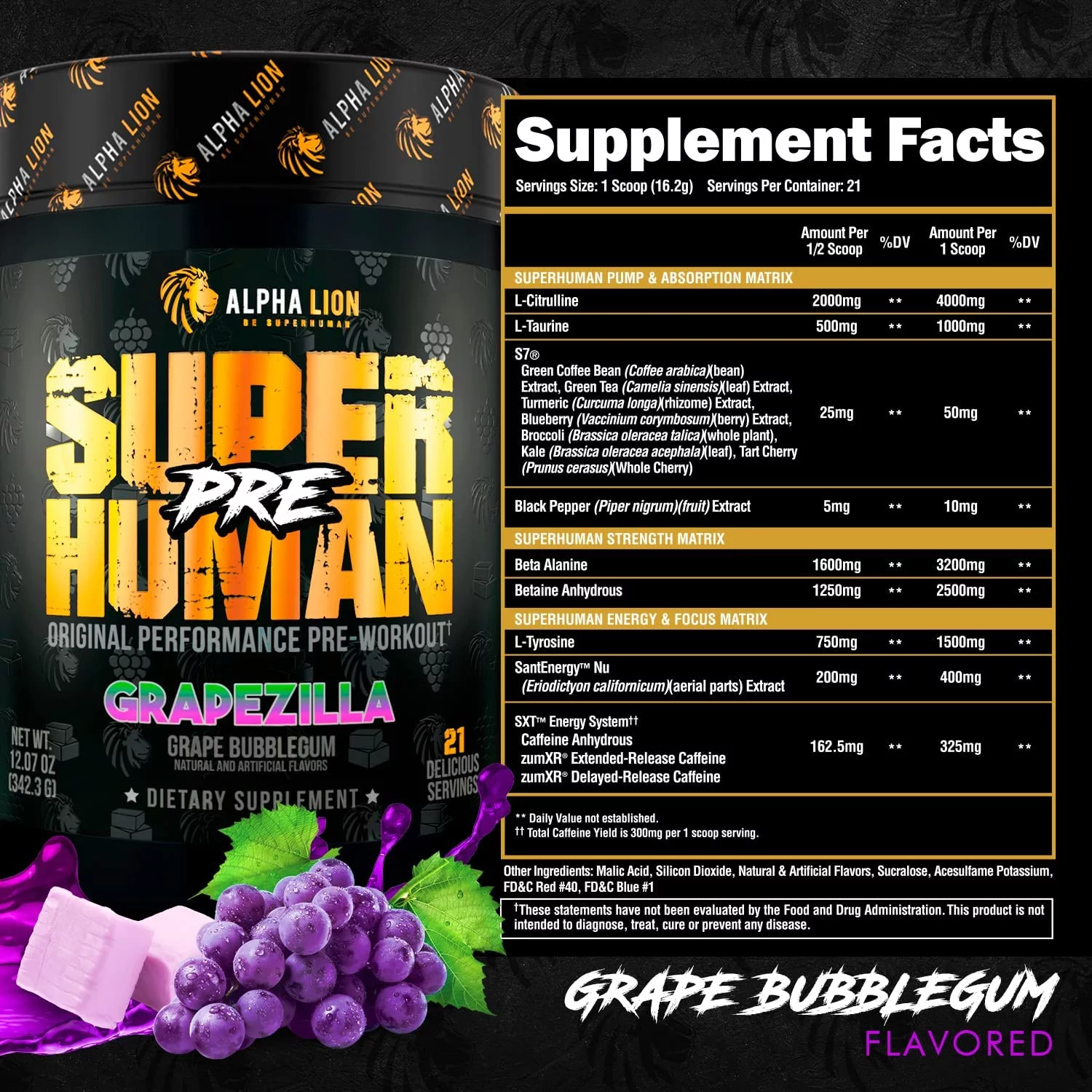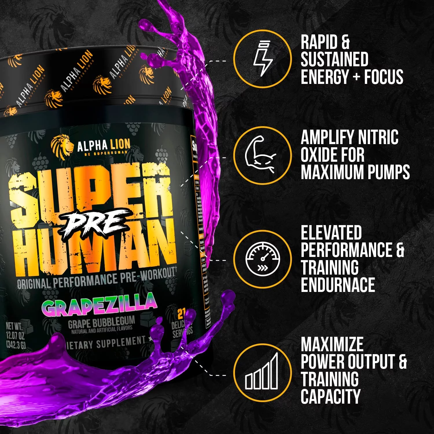 Alpha Lion Pre Workout, Increases Strength & Endurance, No Crash (Grapezilla)