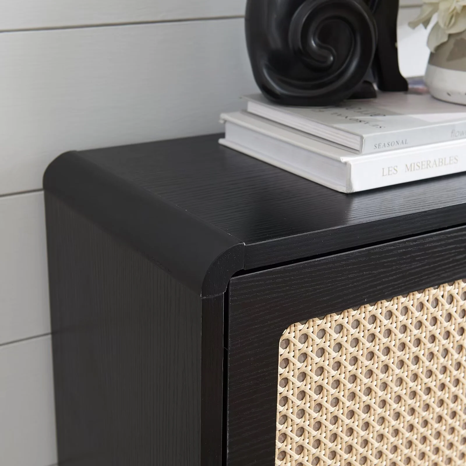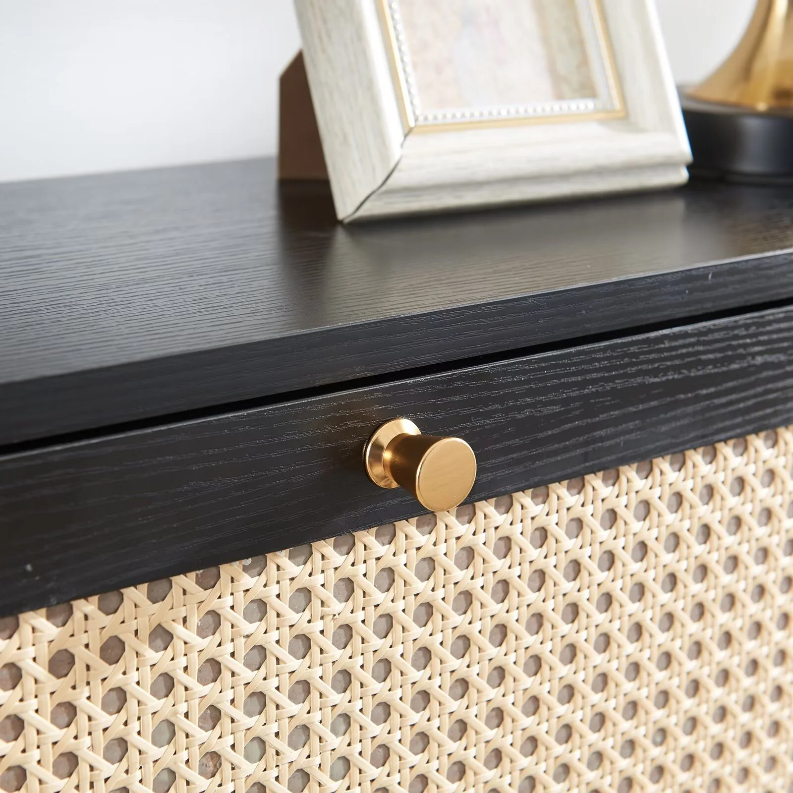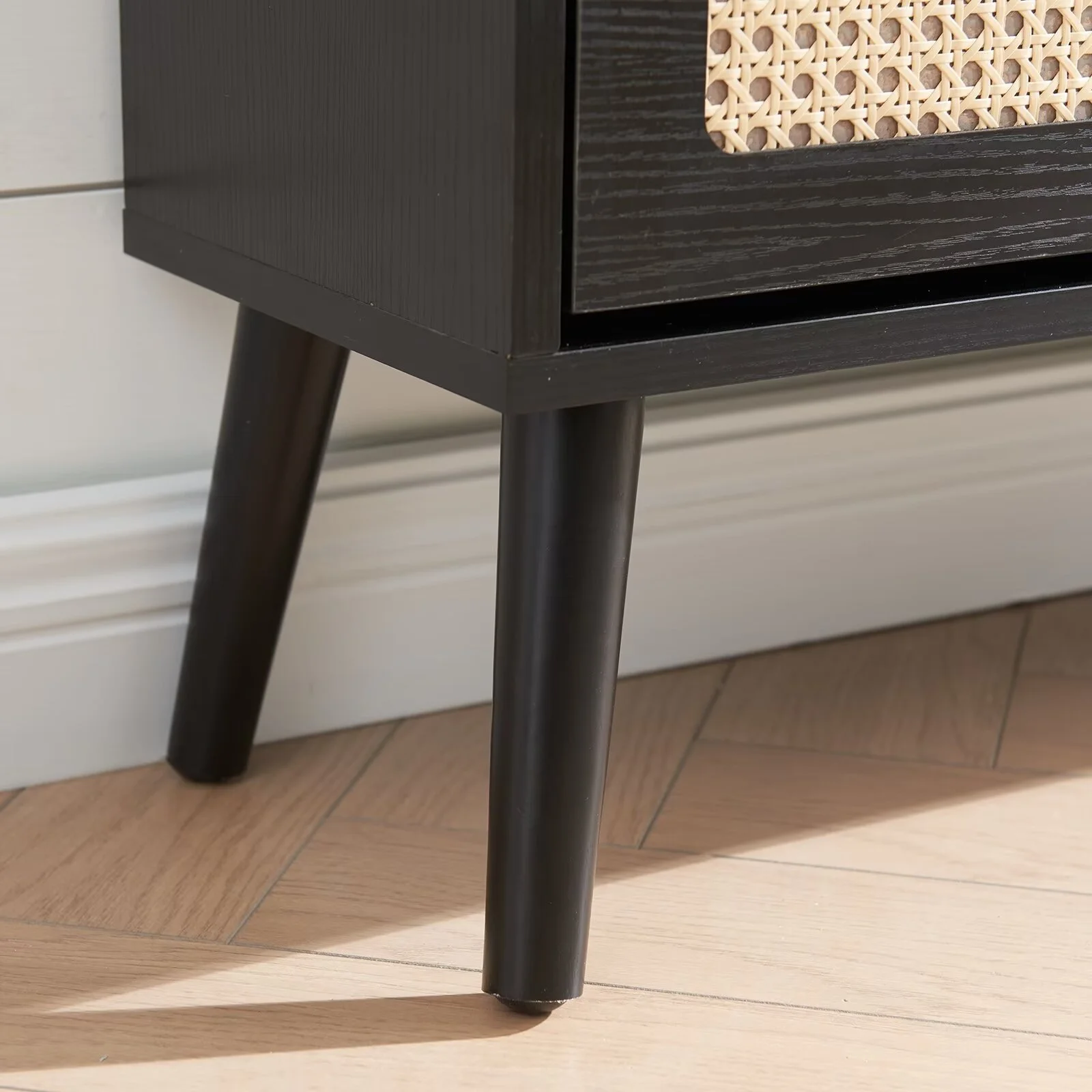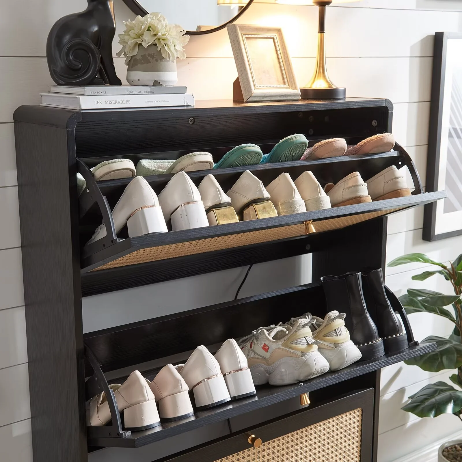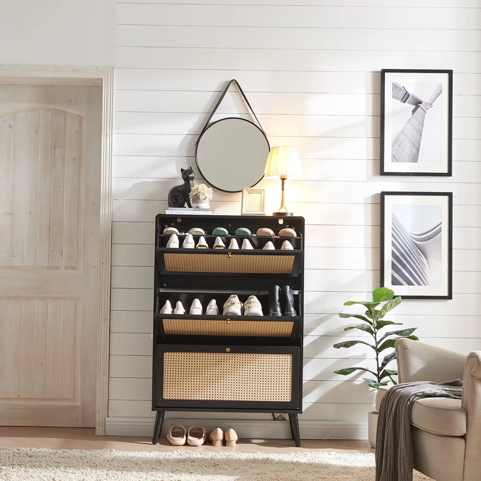 Sweiko Shoe Storage Cabinet with 3 Flip Drawer Natural Rattan Shoe Cabinet Organizer Freestanding Wooden Shoe Rack Storage Cabinet with Metal Legs for Entryway Hallway Bedroom Mudroom Black