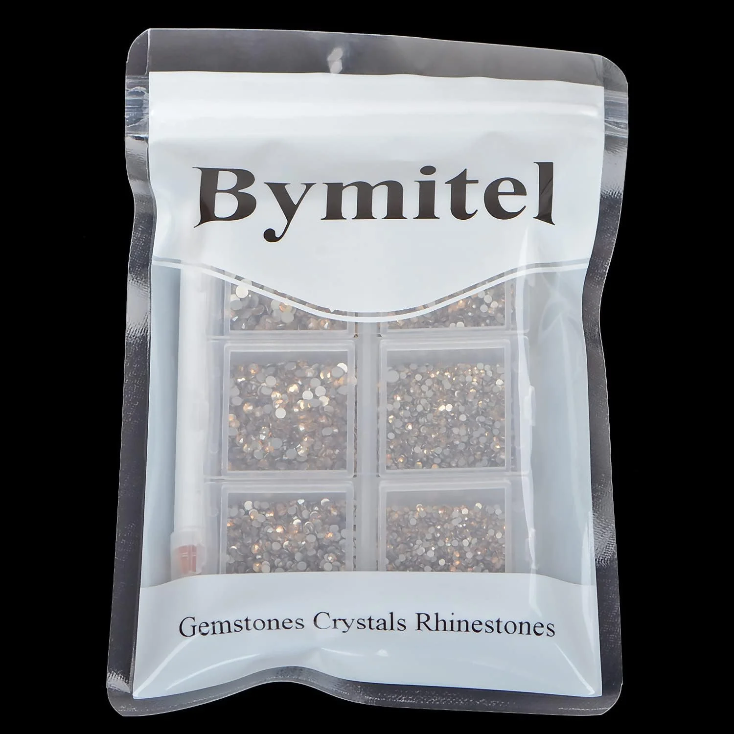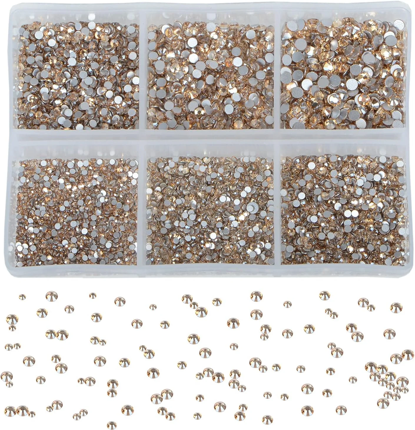 Bymitel 7200 Pieces 6 Mixed Sizes Glue Fix on Glass Rhinestones Round Crystal Gems Flatback for DIY Jewelry Making with one Picking Pen(6-Sizes 7200PCS, Lt. Peach)