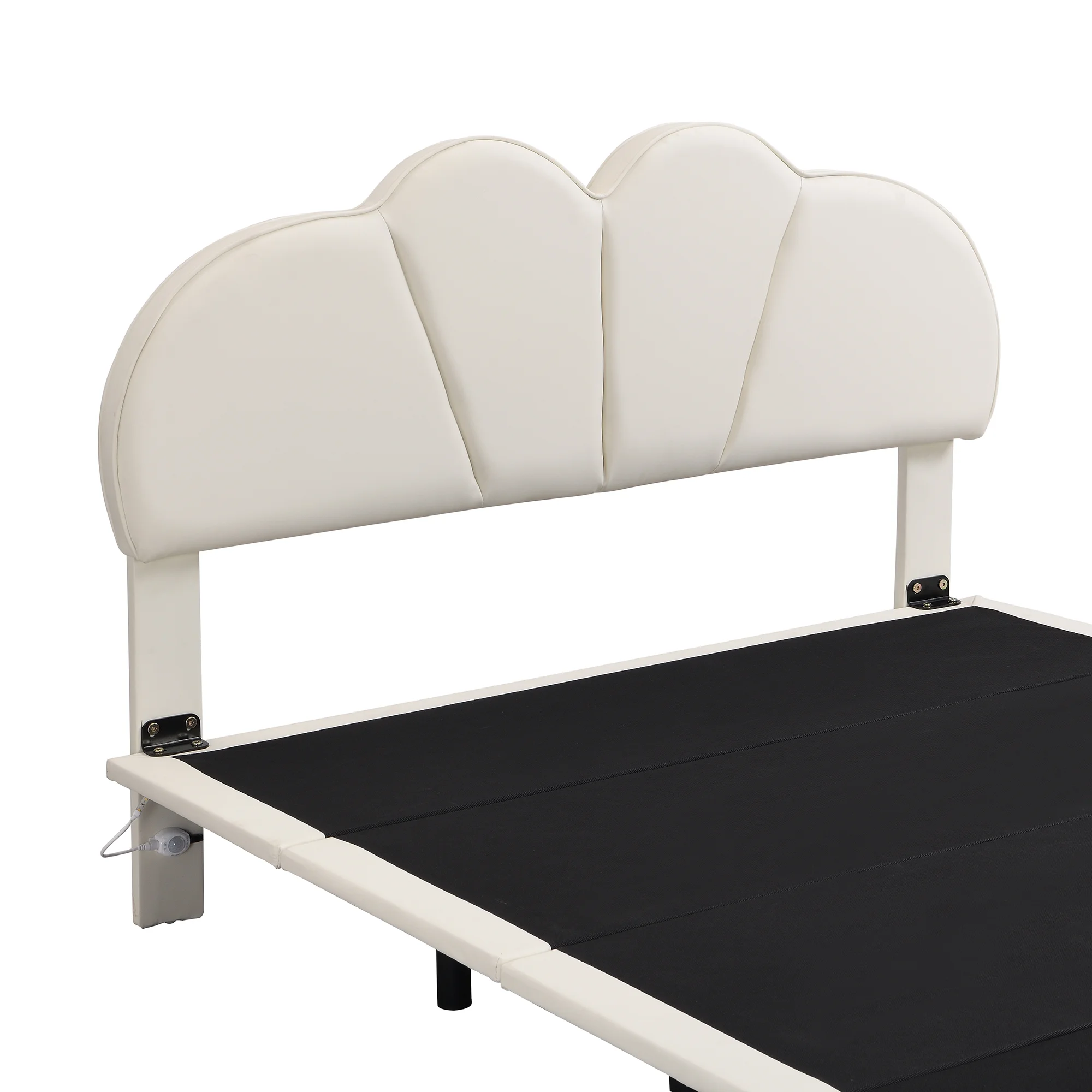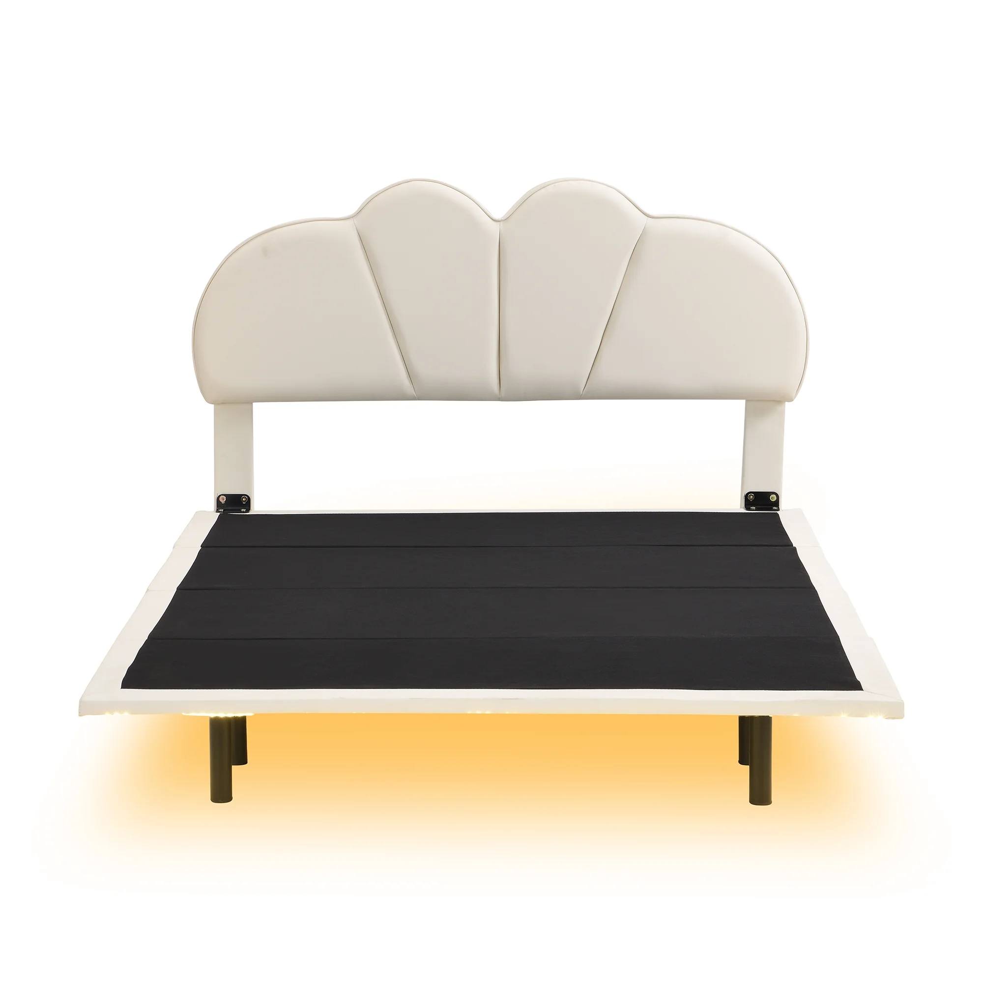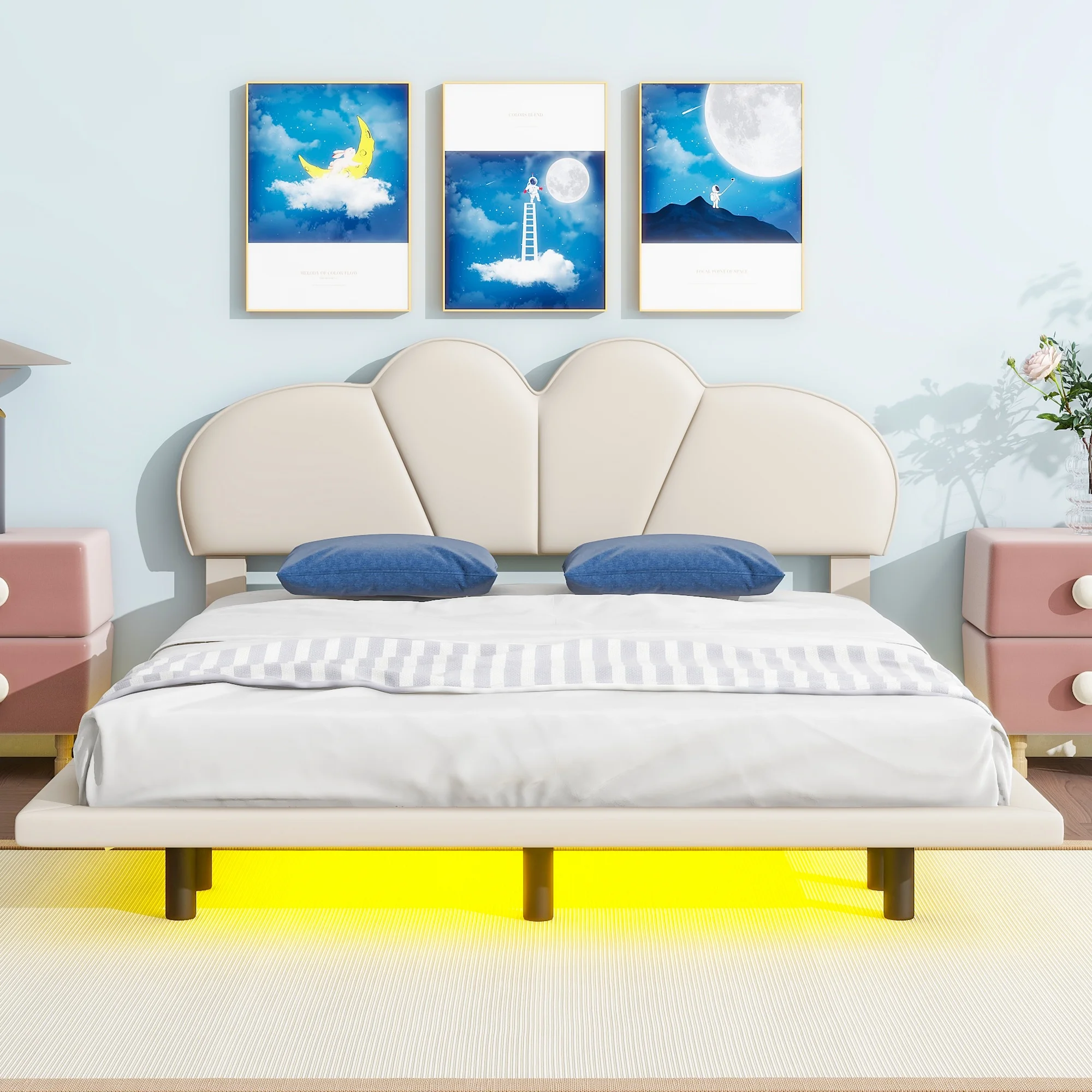 Euroco Full Size Upholstery Floating Bed with LED Lights, PU Leather Headboard Platform Bed for Kids Teens Adults, Beige