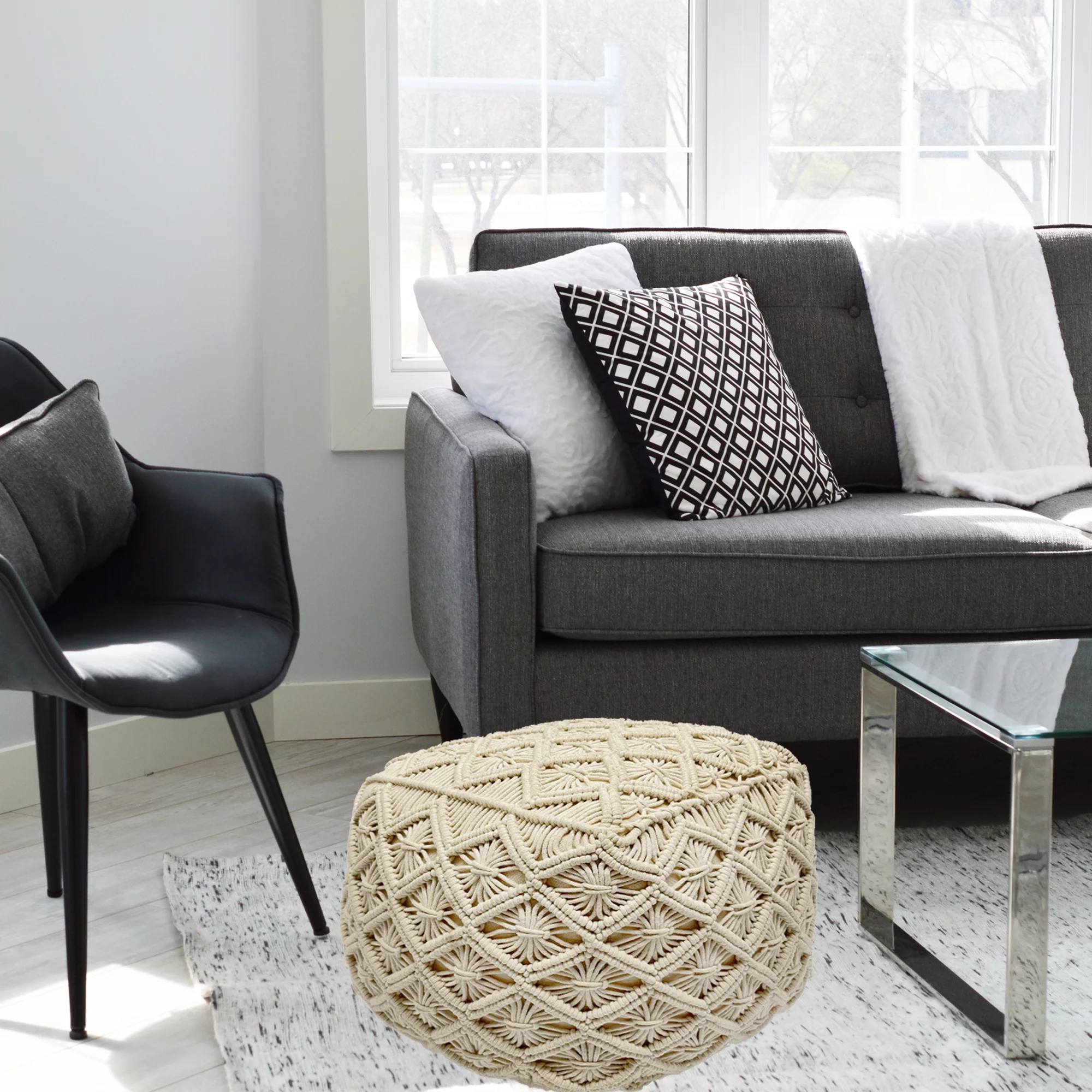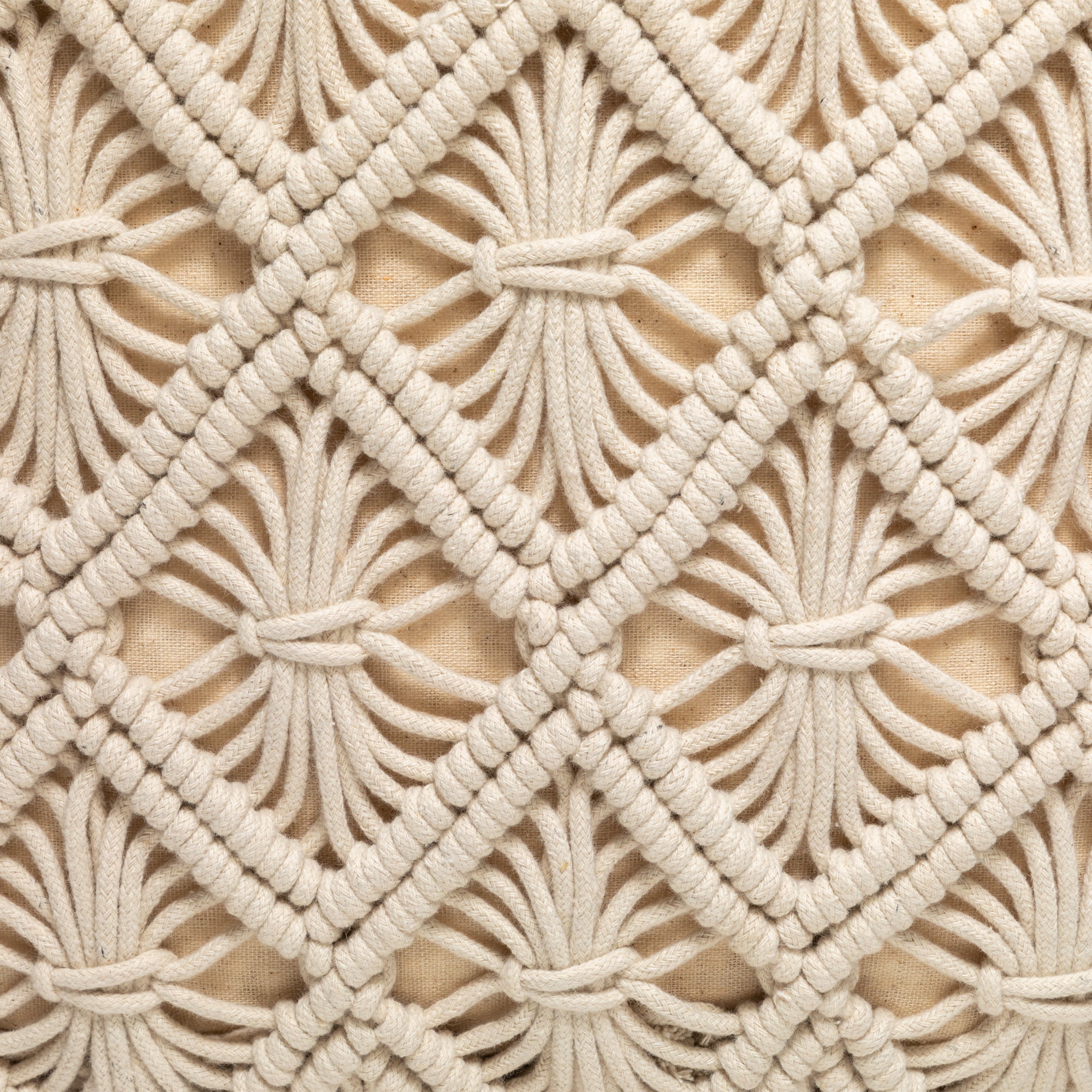 Northlight 18" Beige Handmade Macramé Natural Cotton Square Pouf Ottoman
