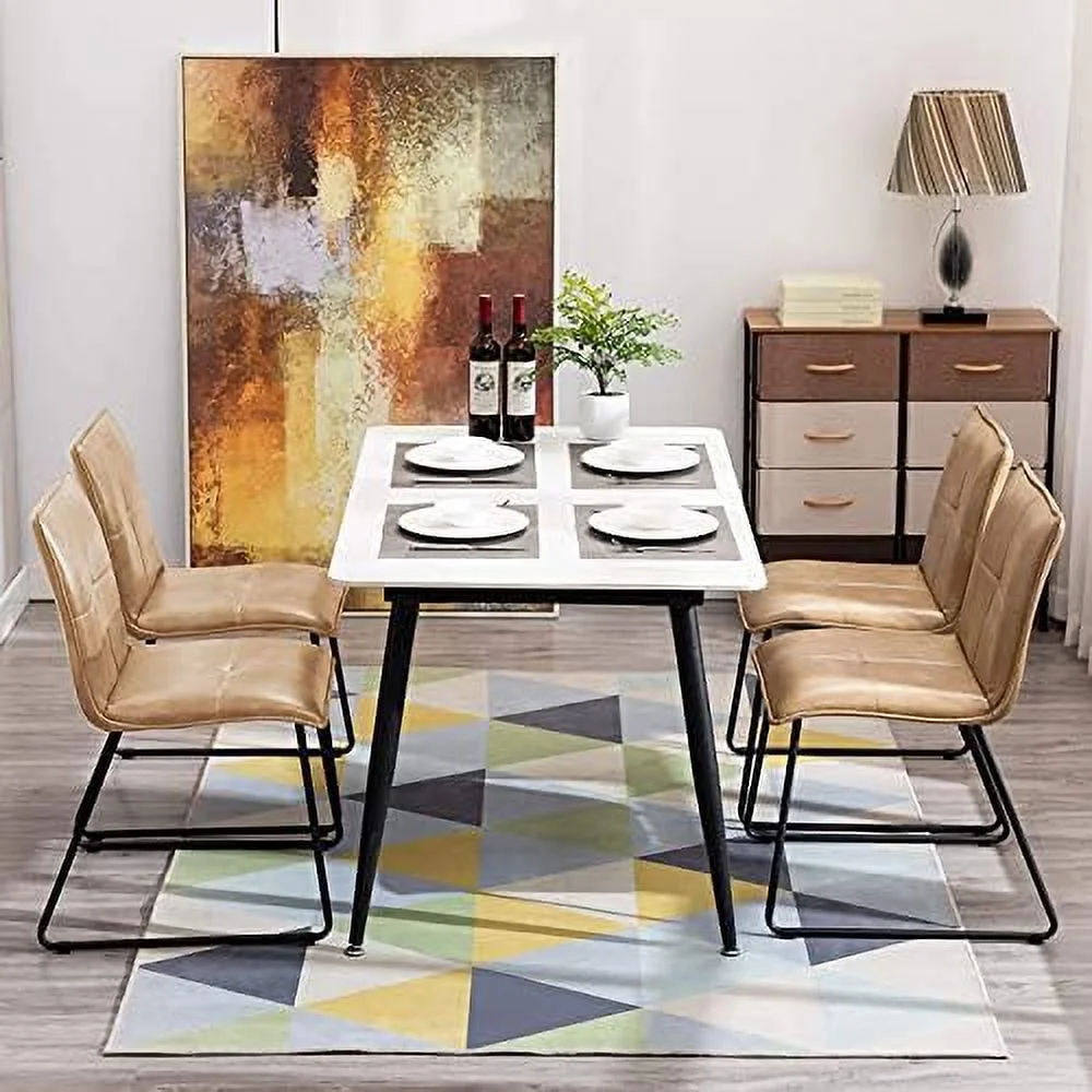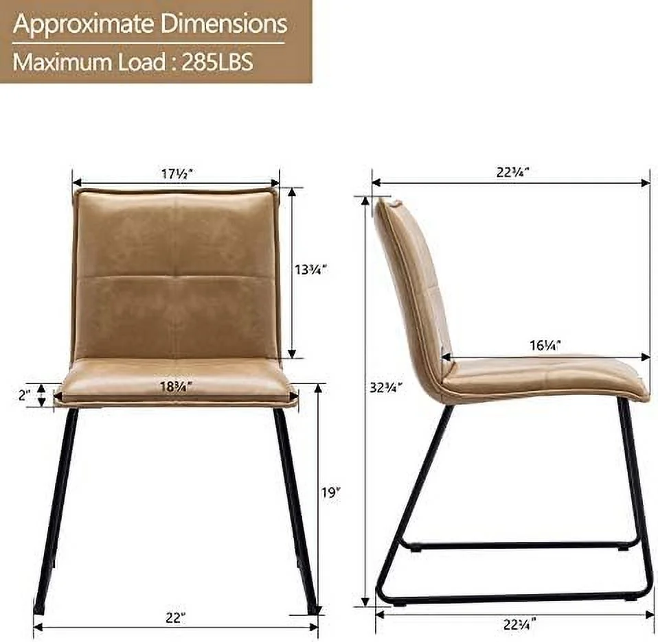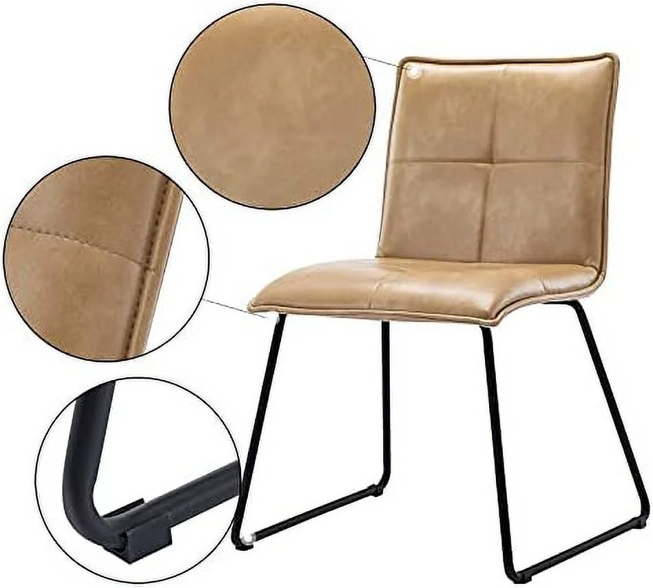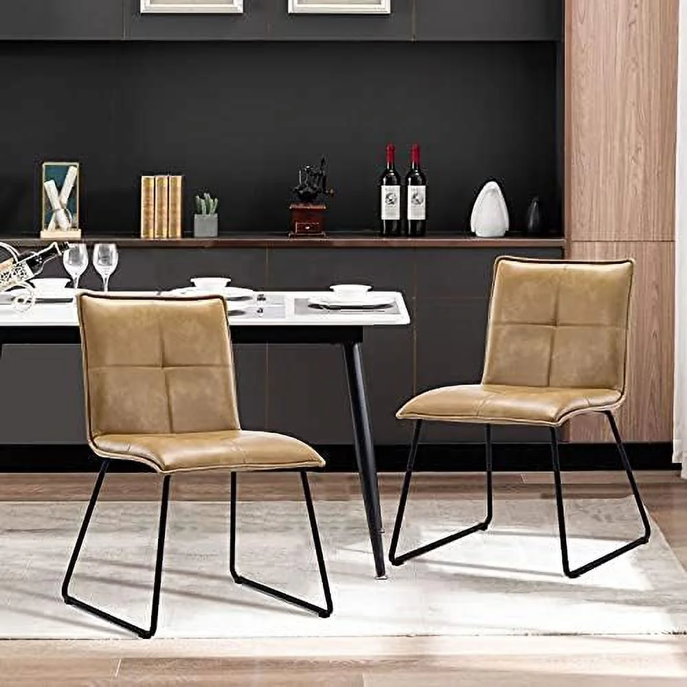 KHBIULIFE Duhome Faux Leather Dining Chairs Set of 2 Mid Century Modern Dining Room Chairs Side Chairs with Metal Legs for Living Room Kitchen Bedroom Camel