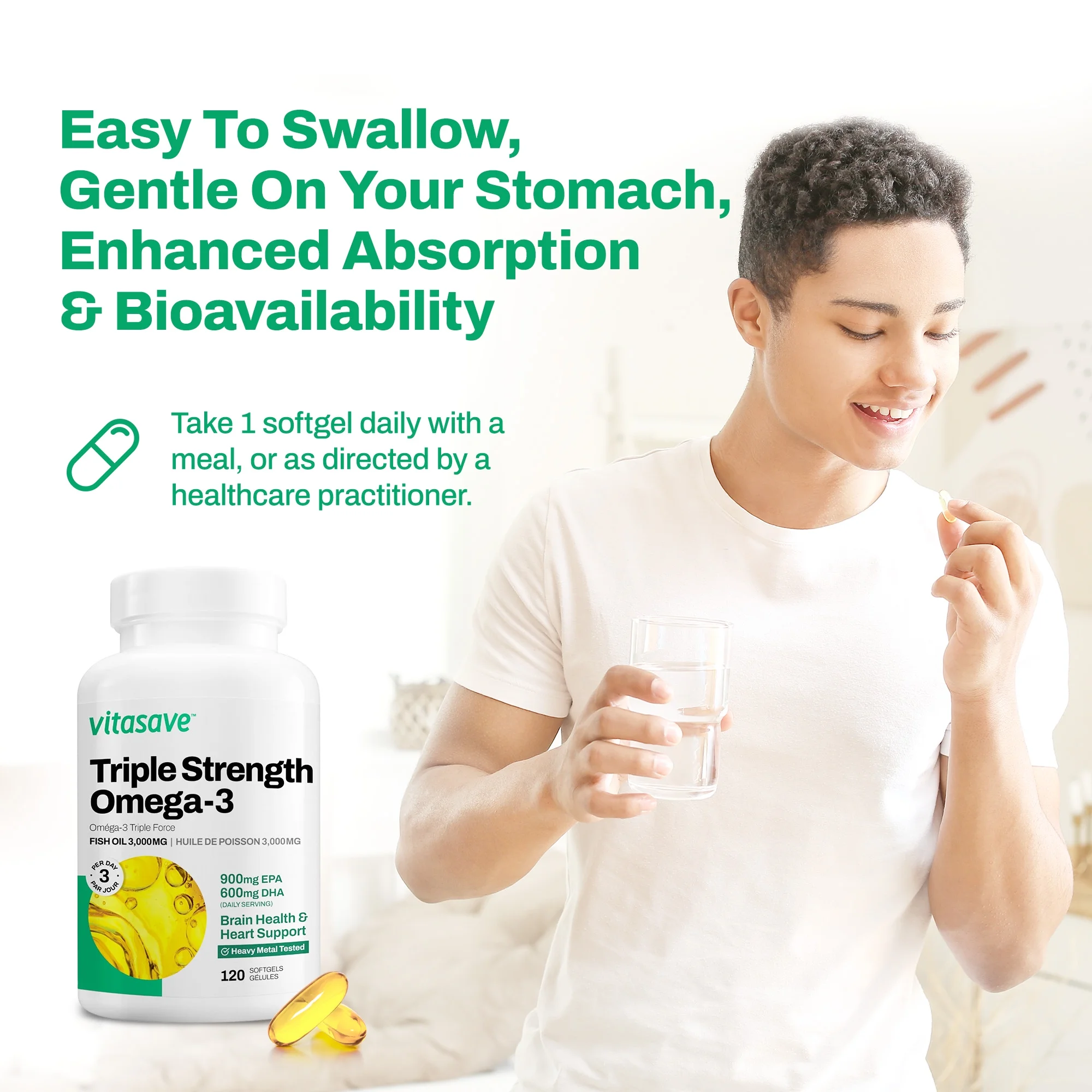 Vitasave Omega 3 Fish Oil Supplement, 3000mg Fish Oil, 120 Softgels