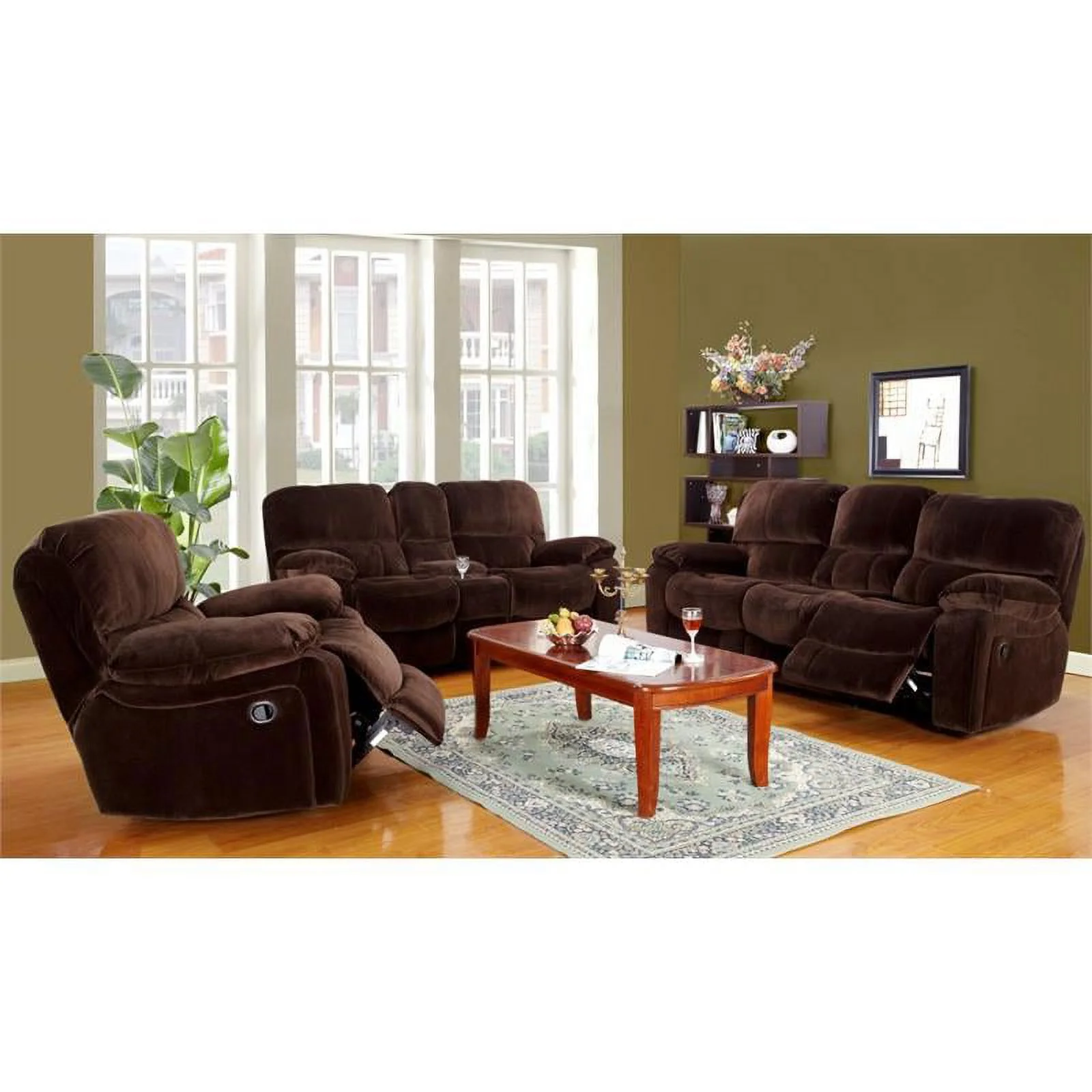 HONBAY Velvet 4-Seat L-Shaped Sectional Sofa with Table Ottoman Set
