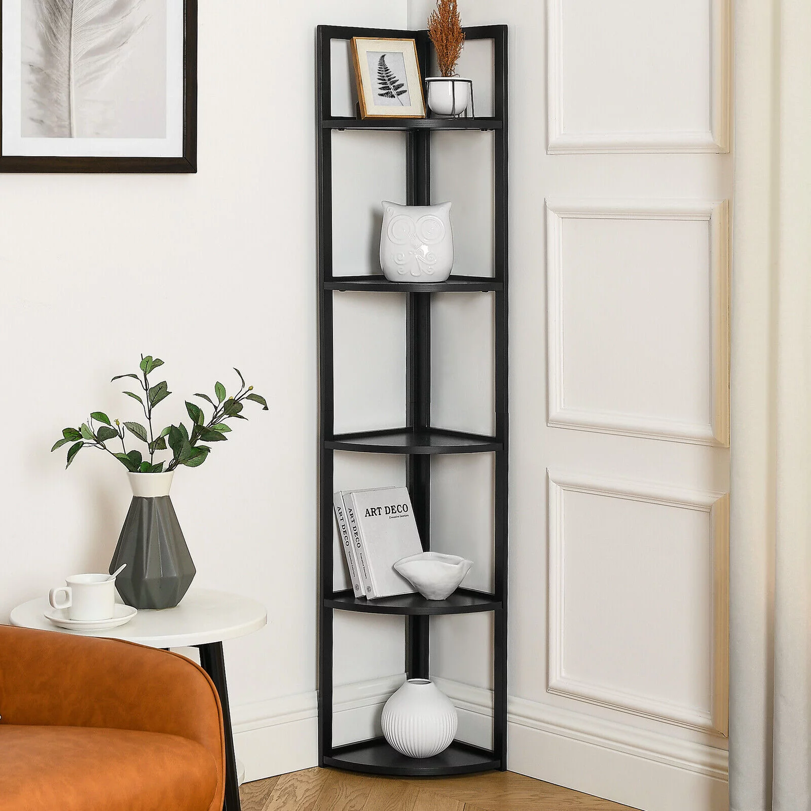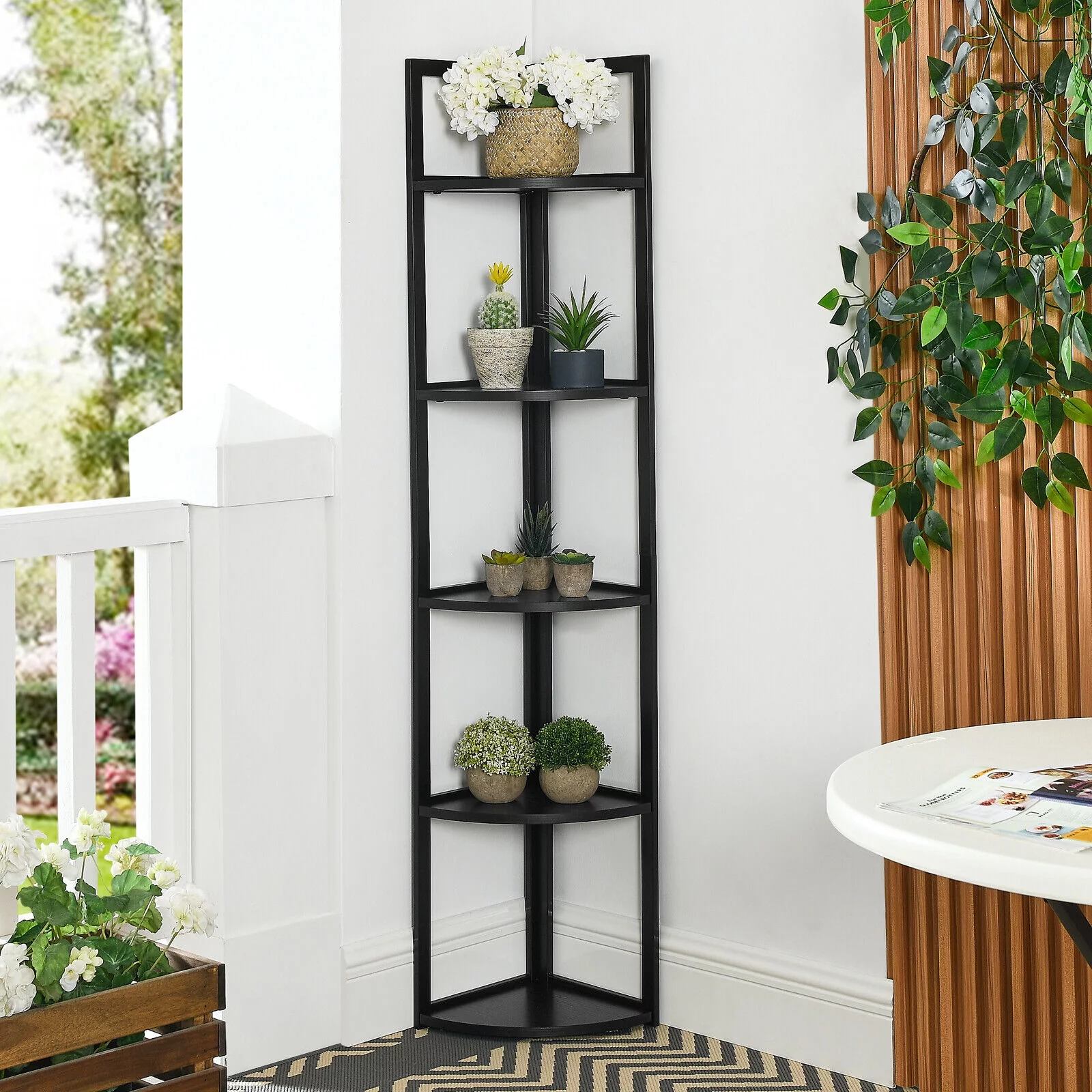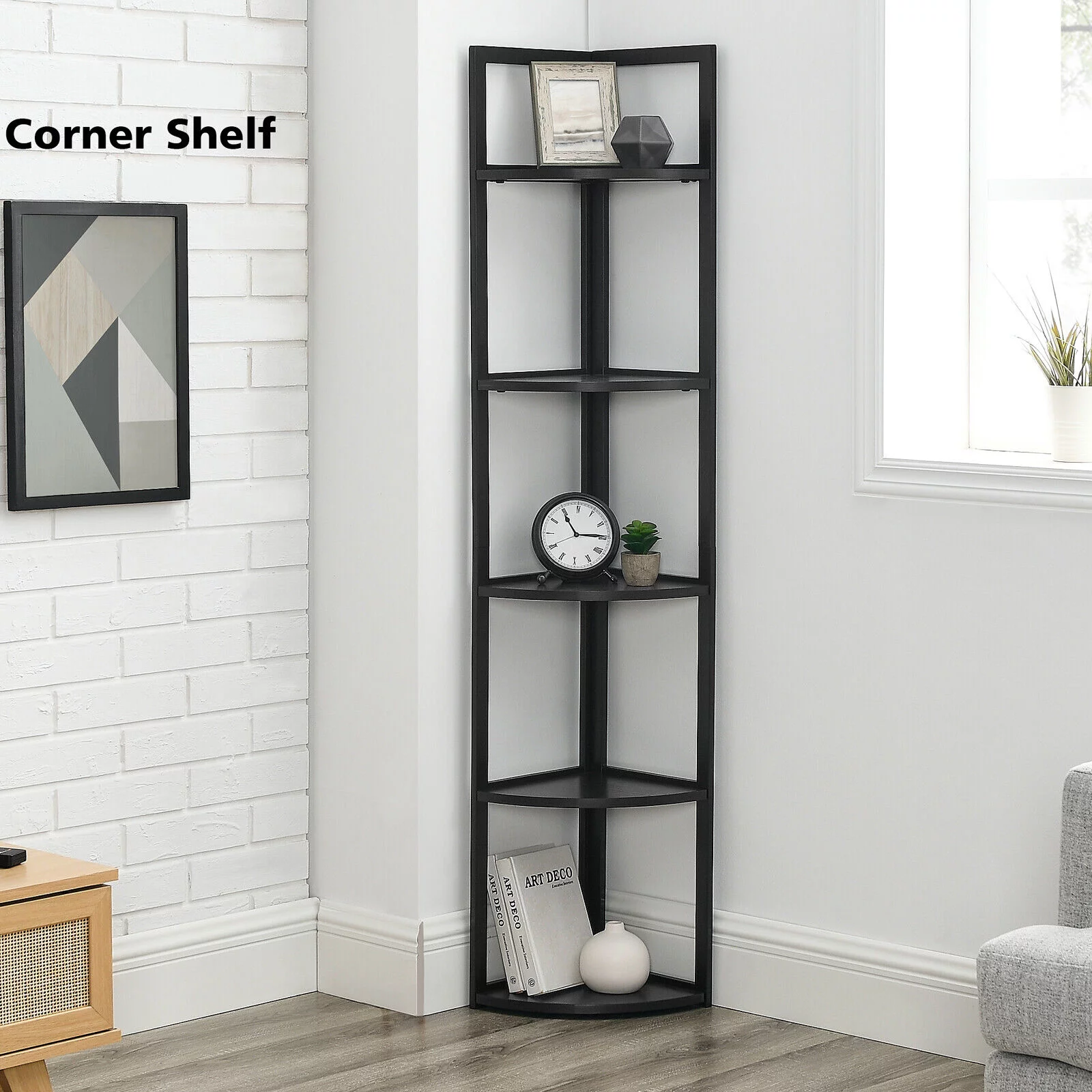 BMTBUY 5 Tier Corner Bookcase, Rustic Corner Storage Rack Plant Stand Small Bookshelf for Living Room White
