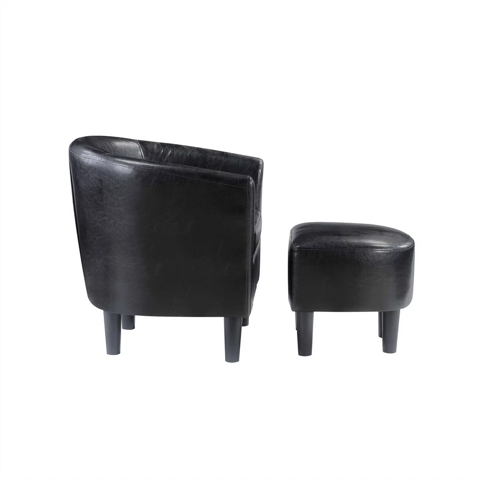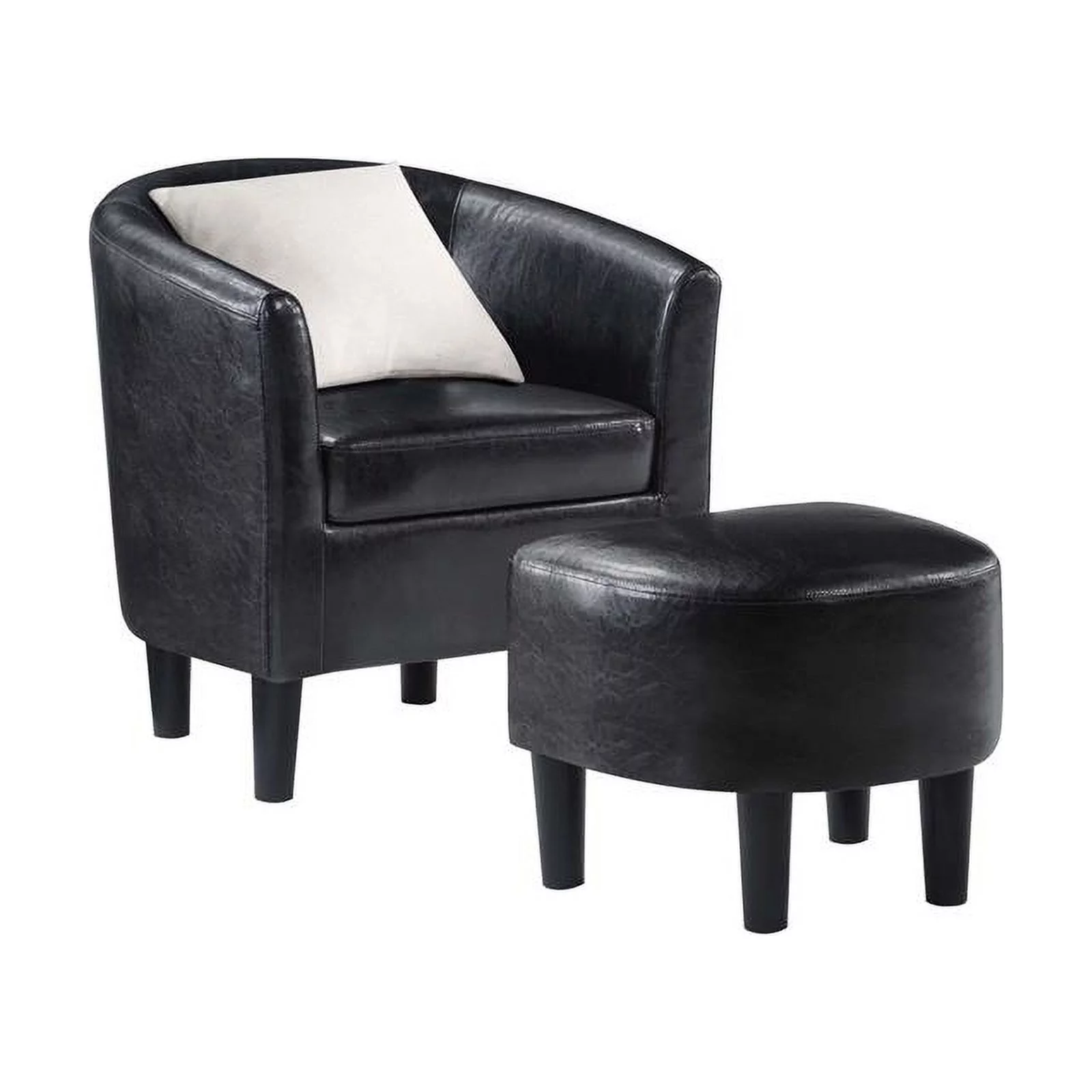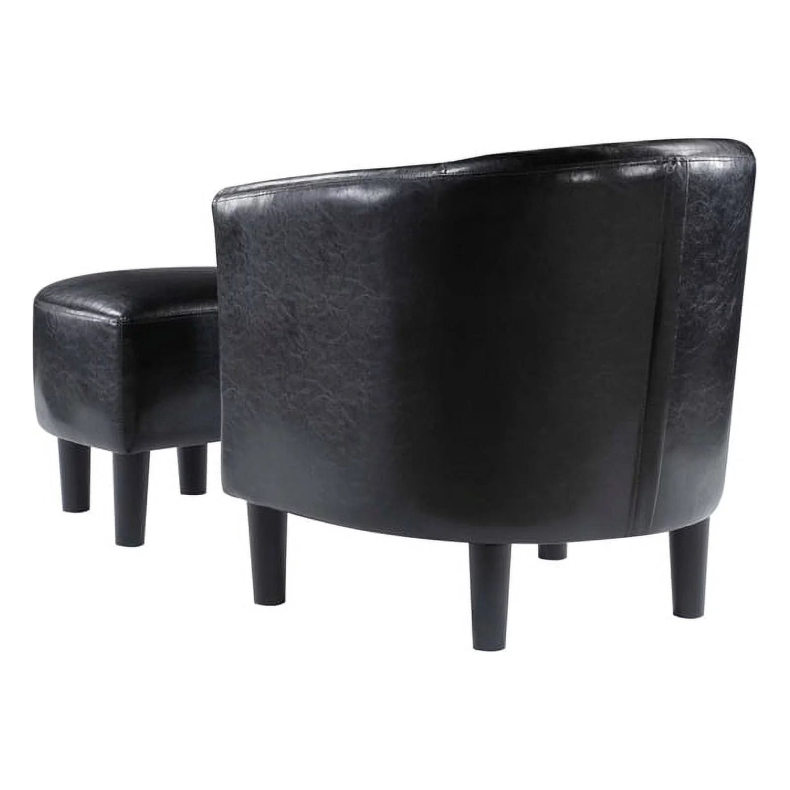 Pemberly Row Contemporary Faux Leather Accent Chair with Ottoman in Black