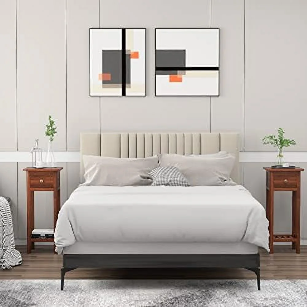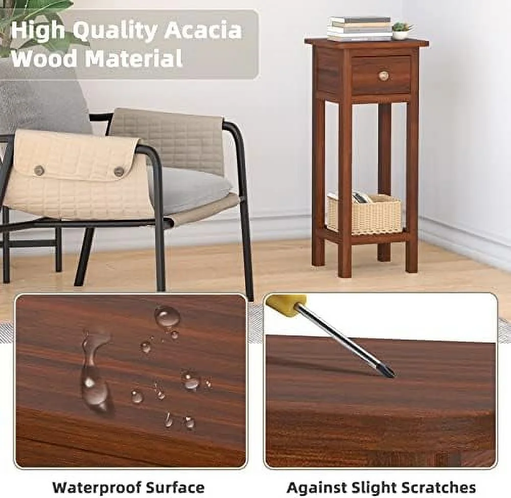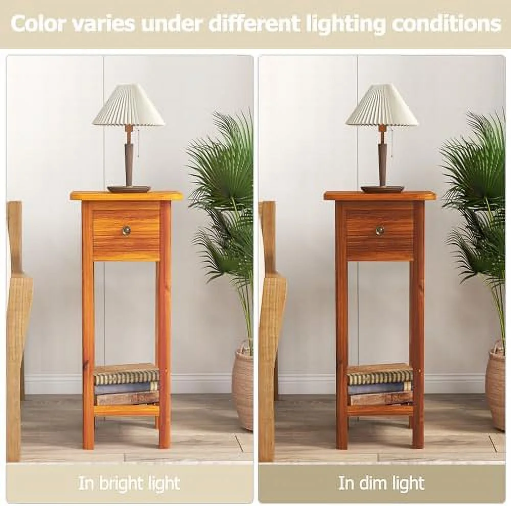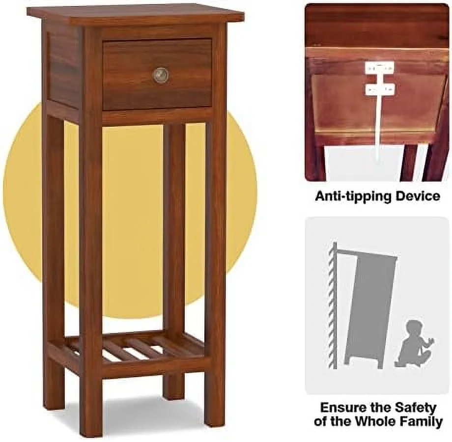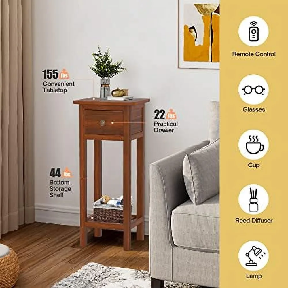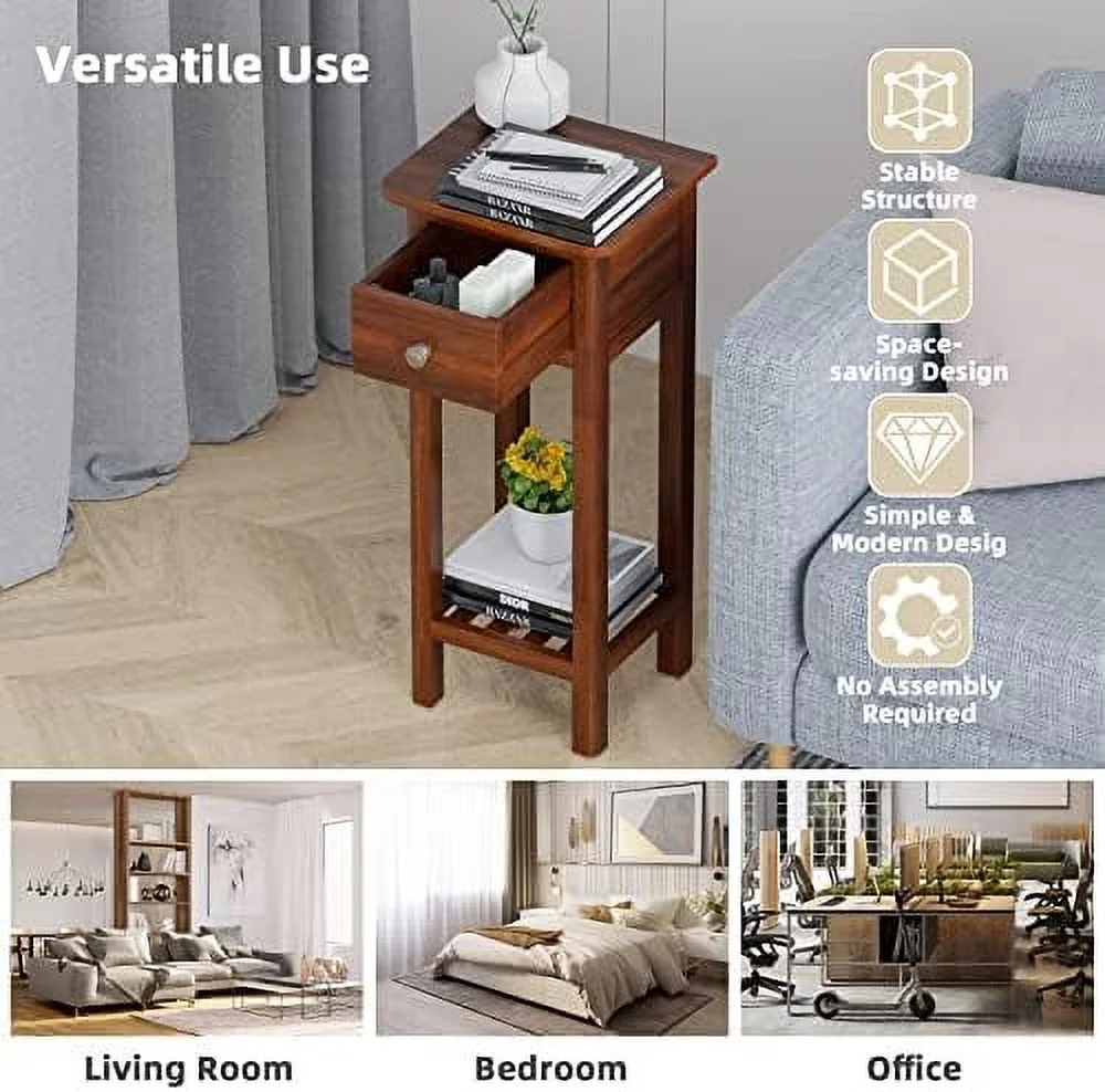 NLIBOOMLife Narrow End Table Tall Nightstand with Drawer & Small Bedside Table w/Anti-Tipping Device No Assembly Wooden Small Sofa for Small Space Living Room Bedroom (2 Natu