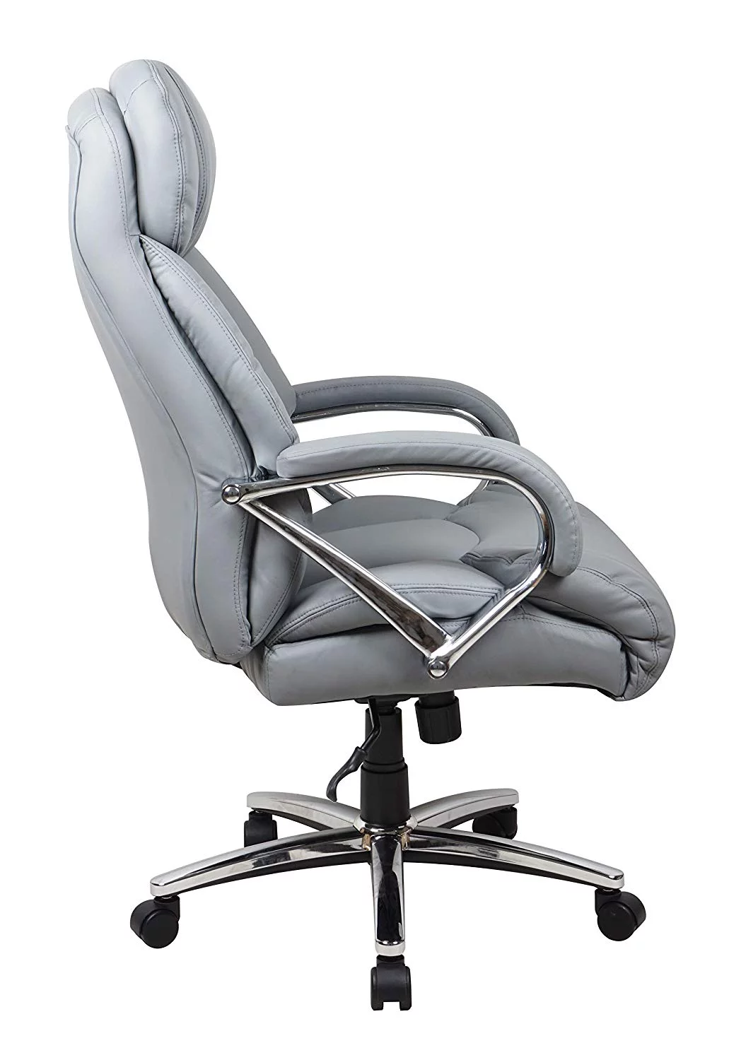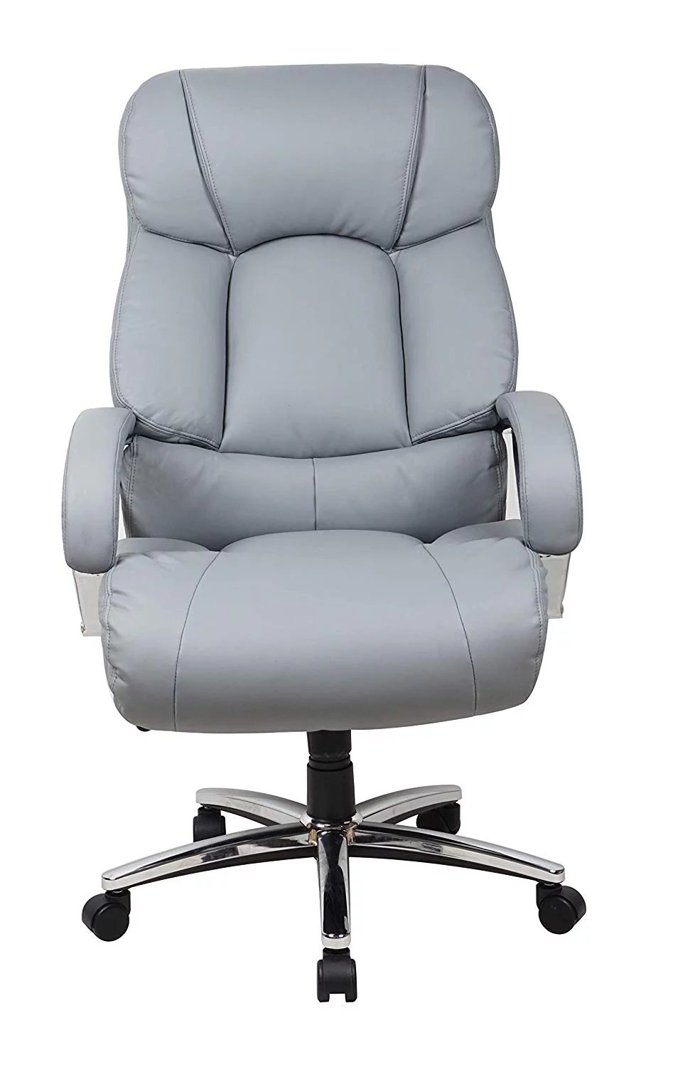 Office Factor Leather Office Chair, Fully Adjustable Big and Tall Office Chair, Swivel Office Chair with Castor Wheels, 500 Lbs Rated Leather Executive Chair (Gray)