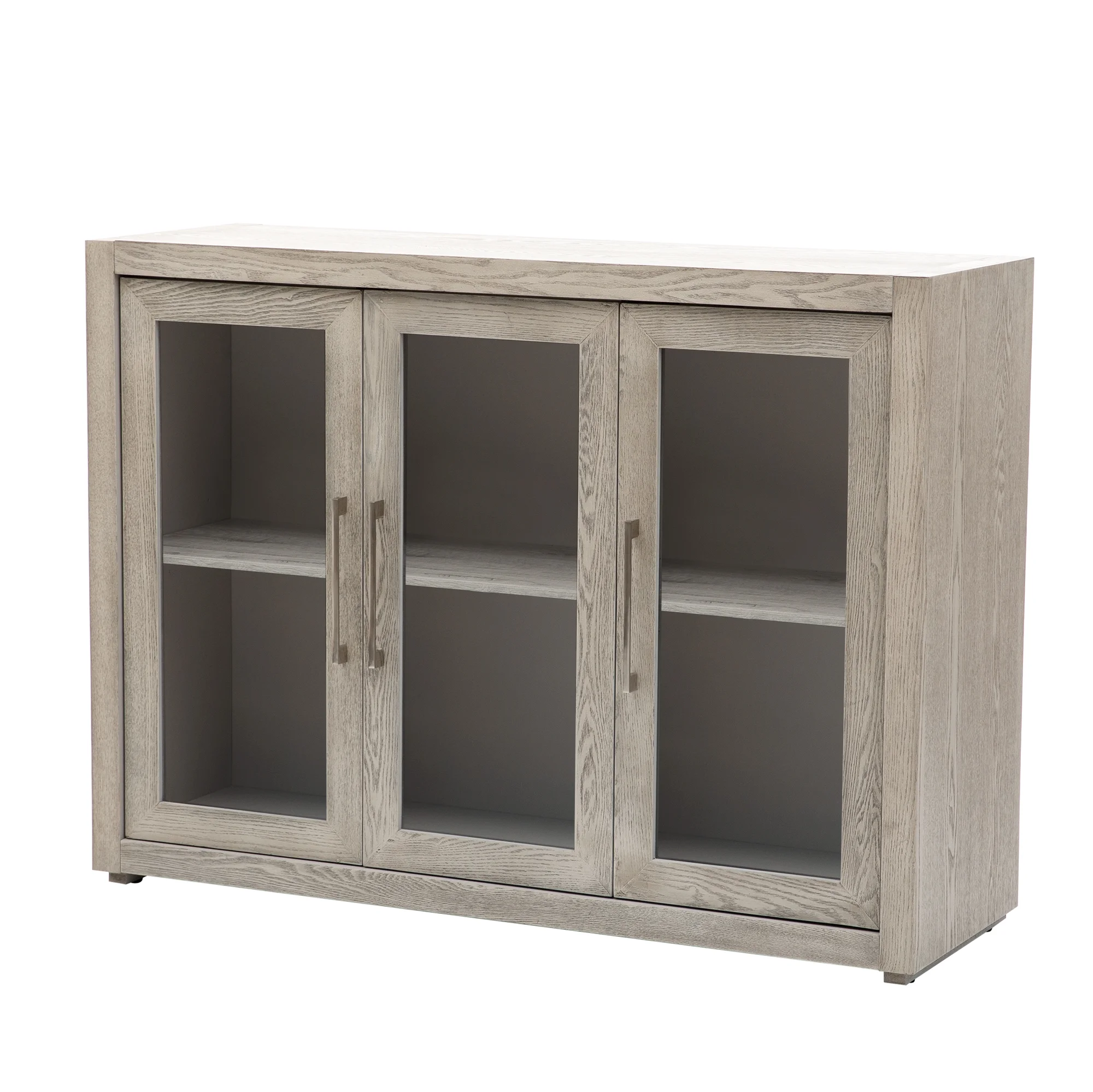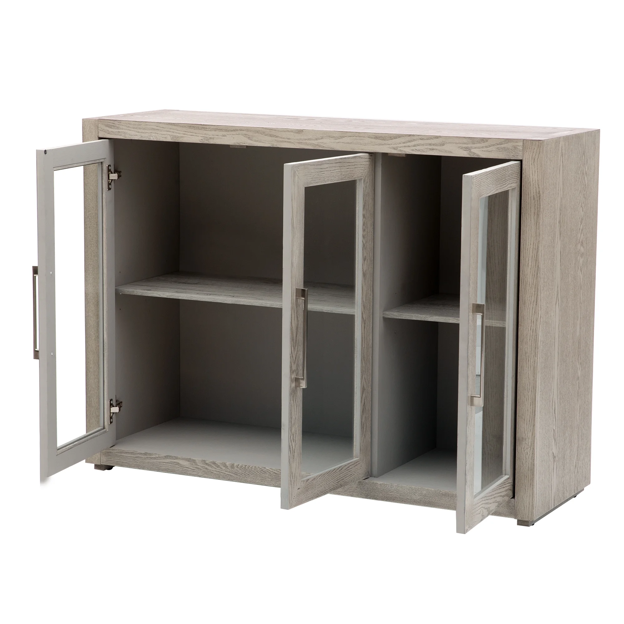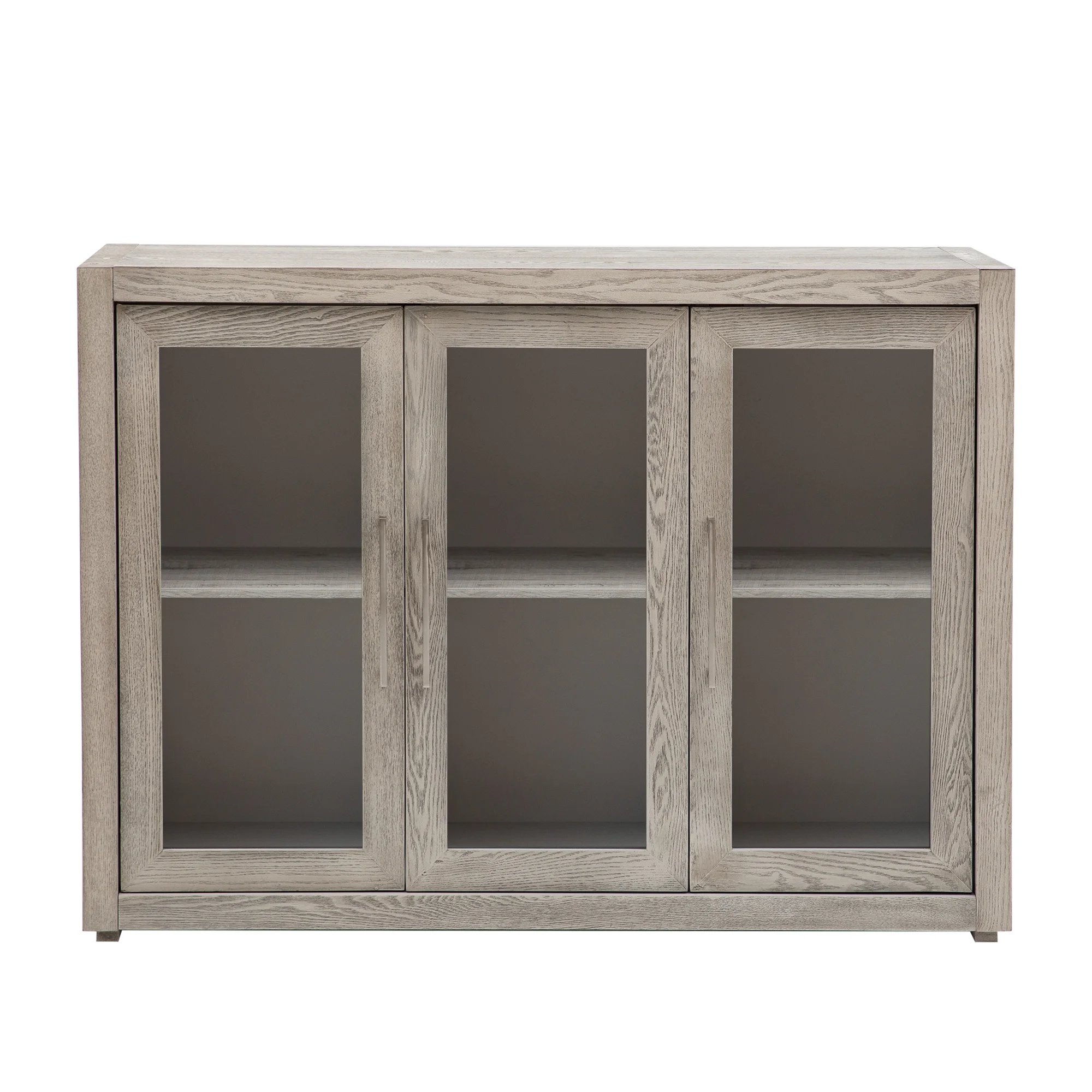 CoSoTower Wood Storage Cabinet with Three Tempered Glass Doors and Adjustable Shelf,Suitable for Living Room, Study and Entrance