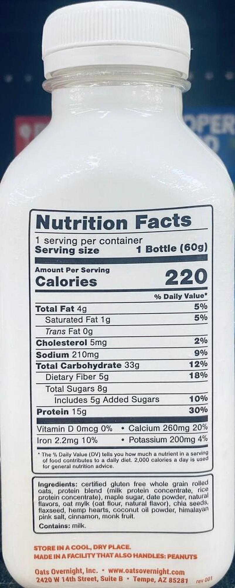 2x Oats Overnight - Cinnamon Roll Over night Oats Shake 2.1 oz 1 Bottle 2 PACK