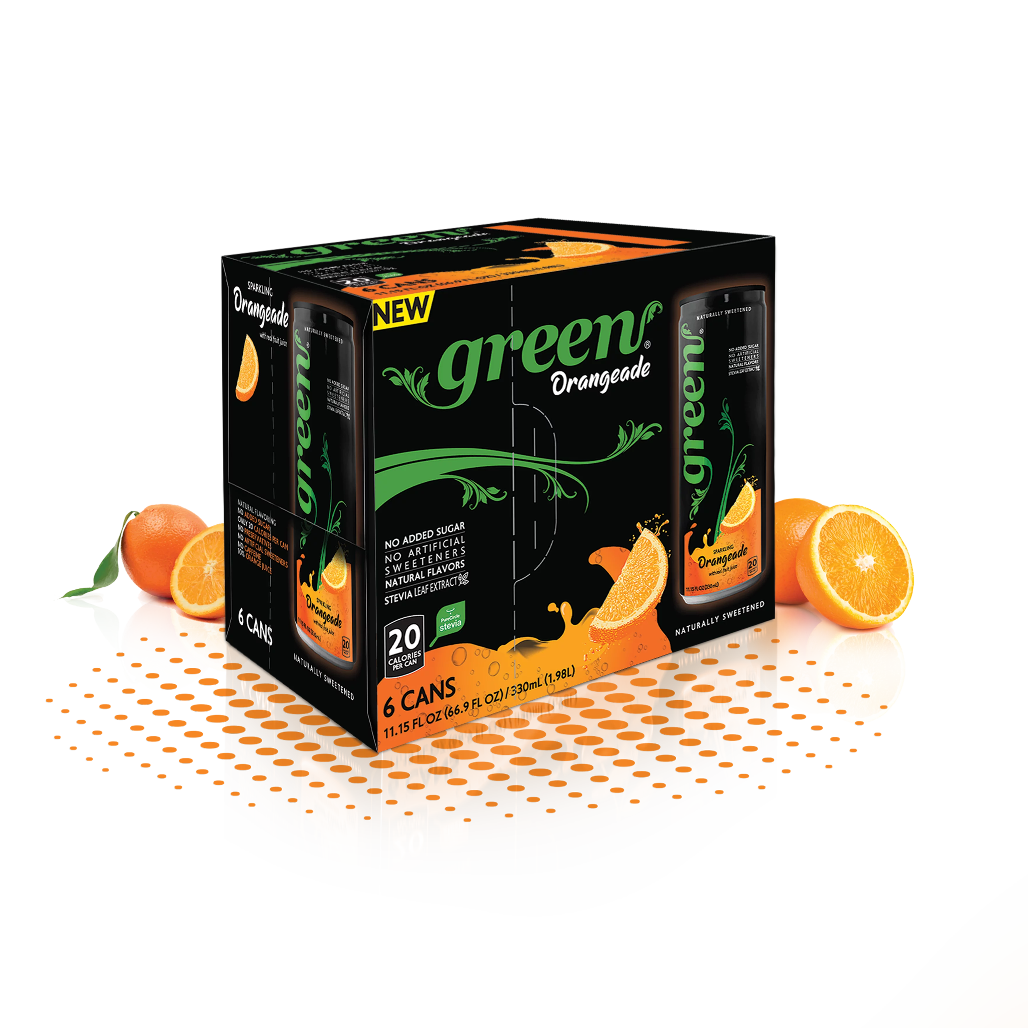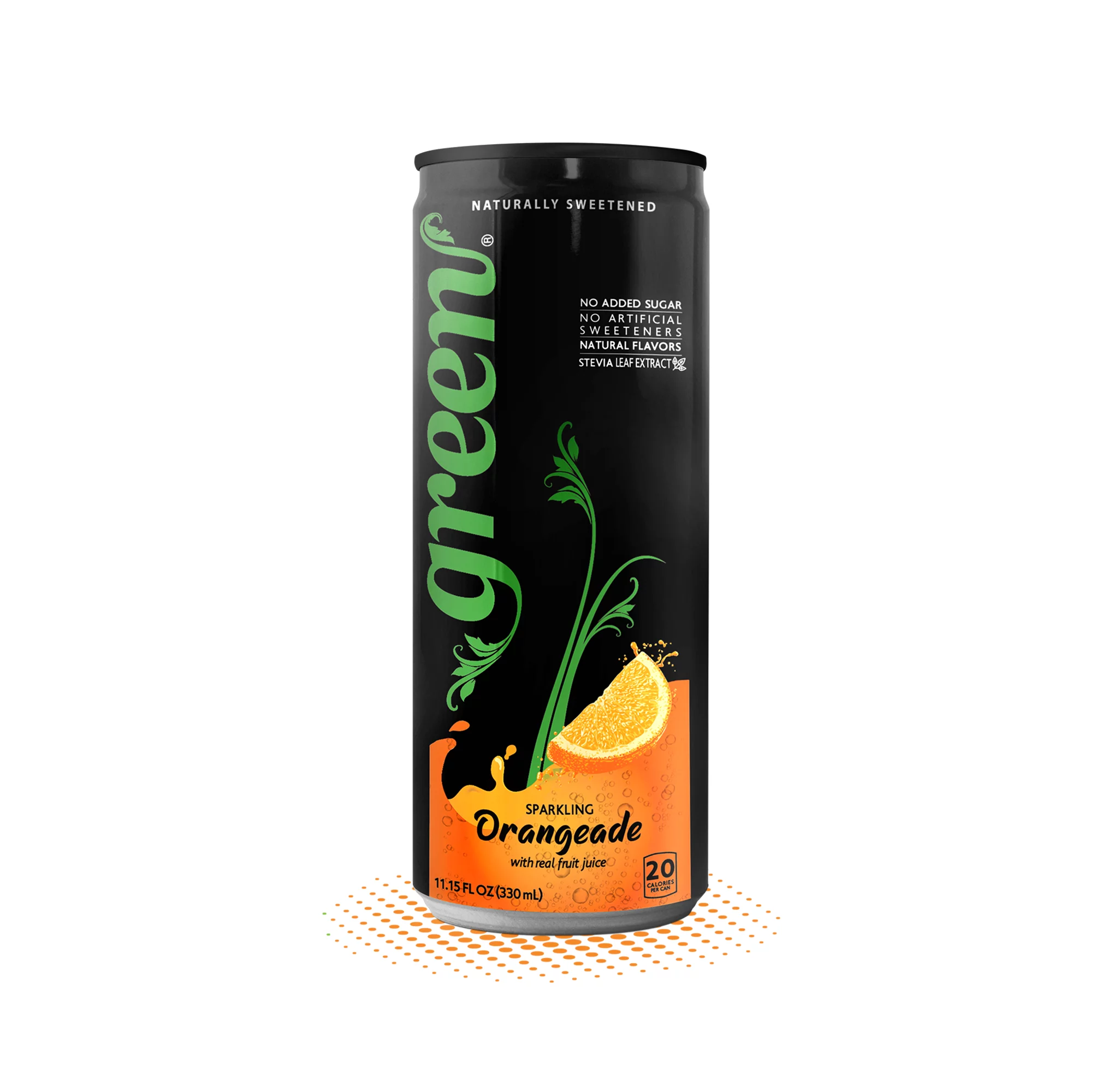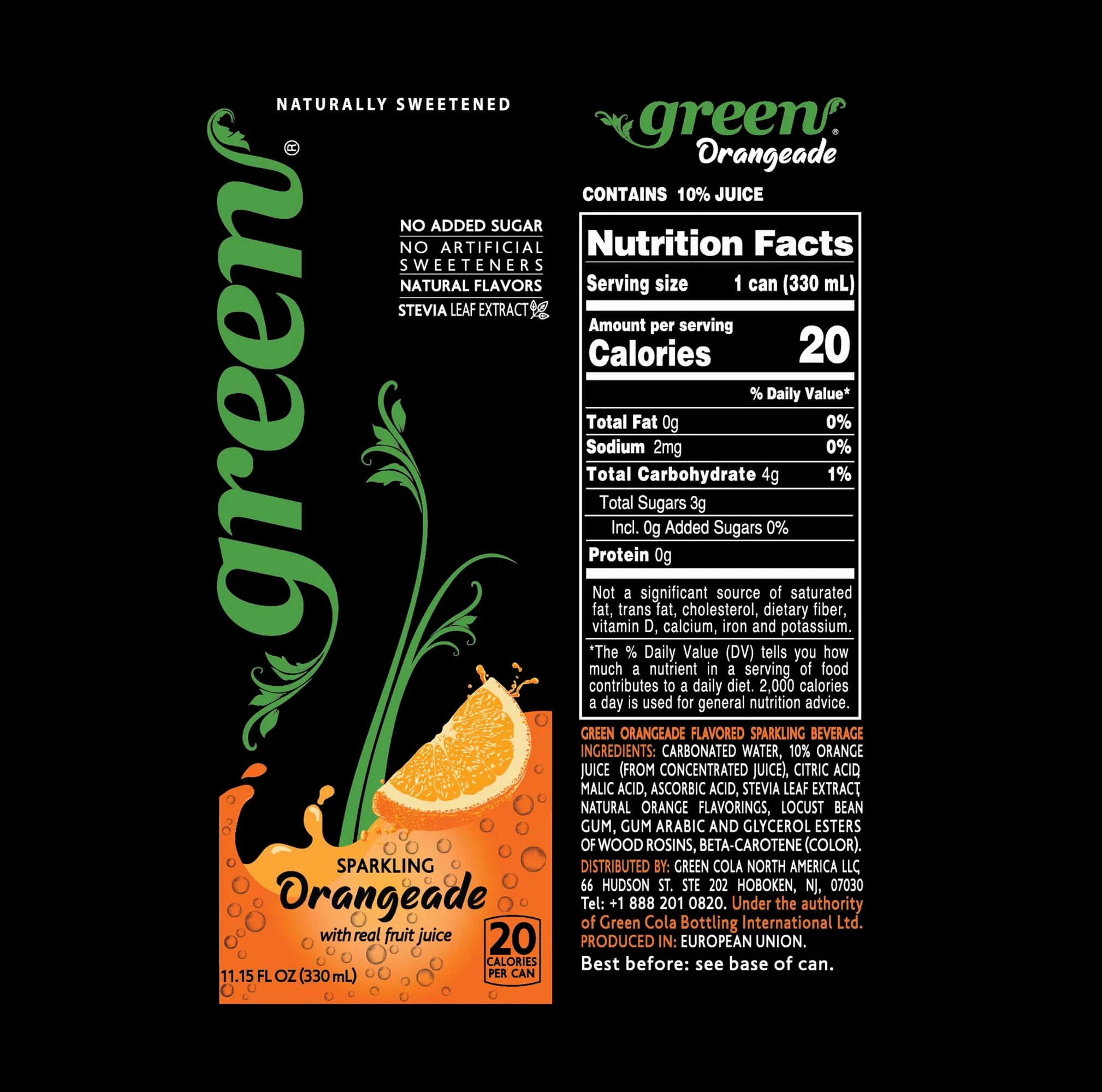 Green Orangeade - No Added Sugar, 10% Real Orange Juice, 20 Calories, Naturally Sweetened with 100% Stevia Leaf Extract, Carbonated Soda, Product Net Content Quantity: 11.15 fl oz Each Can Pack Of 4