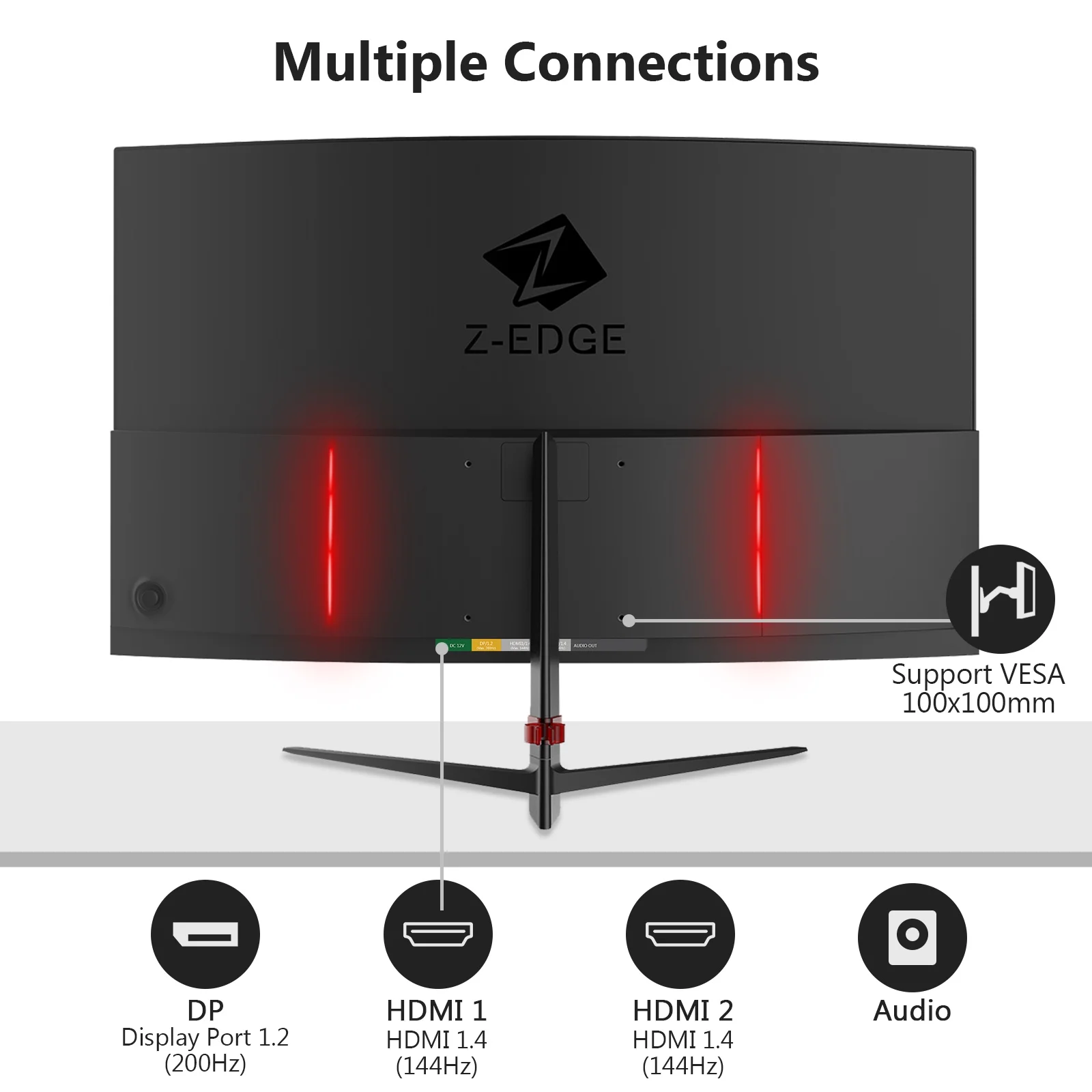 Z-EDGE UG27 27-Inch LED Curved Gaming Monitor 200Hz(DP) 144Hz(HDMI) 1ms Full HD 1920x1080 HDMI DP Port