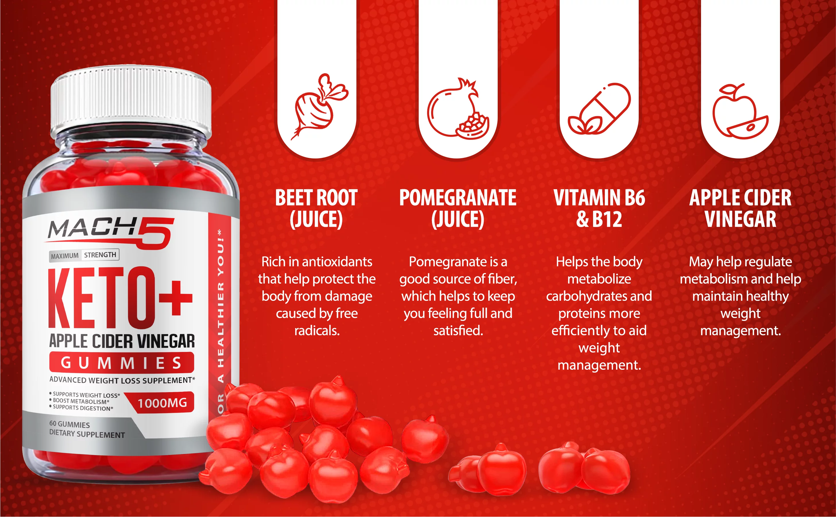 (2 Pack) Mach5 ACV Keto Gummies Apple Cider Vinegar Vegan 120 Gummies