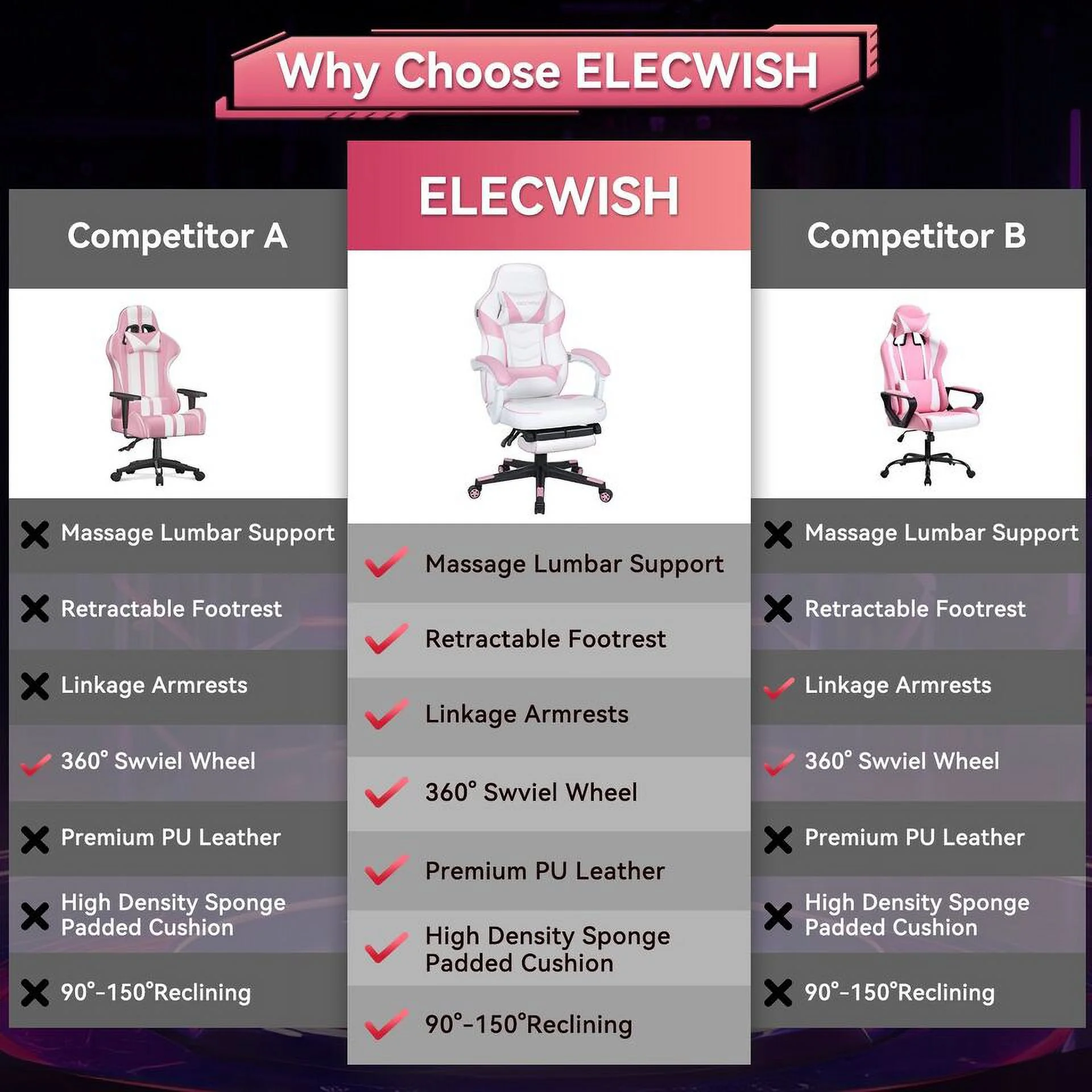ELECWISH Gaming Chair Adjustable & Lumbar Support Swivel Office Chair, Pink