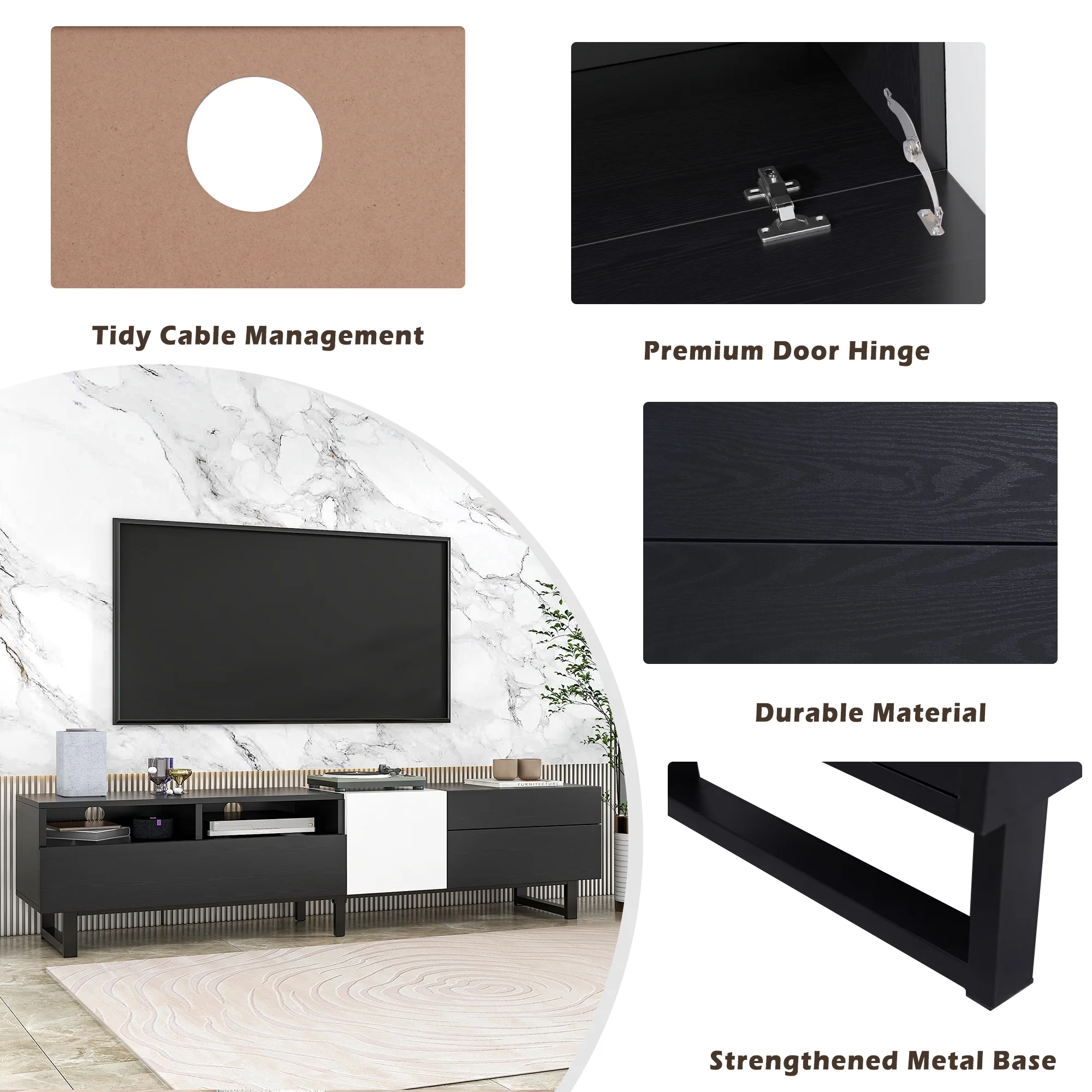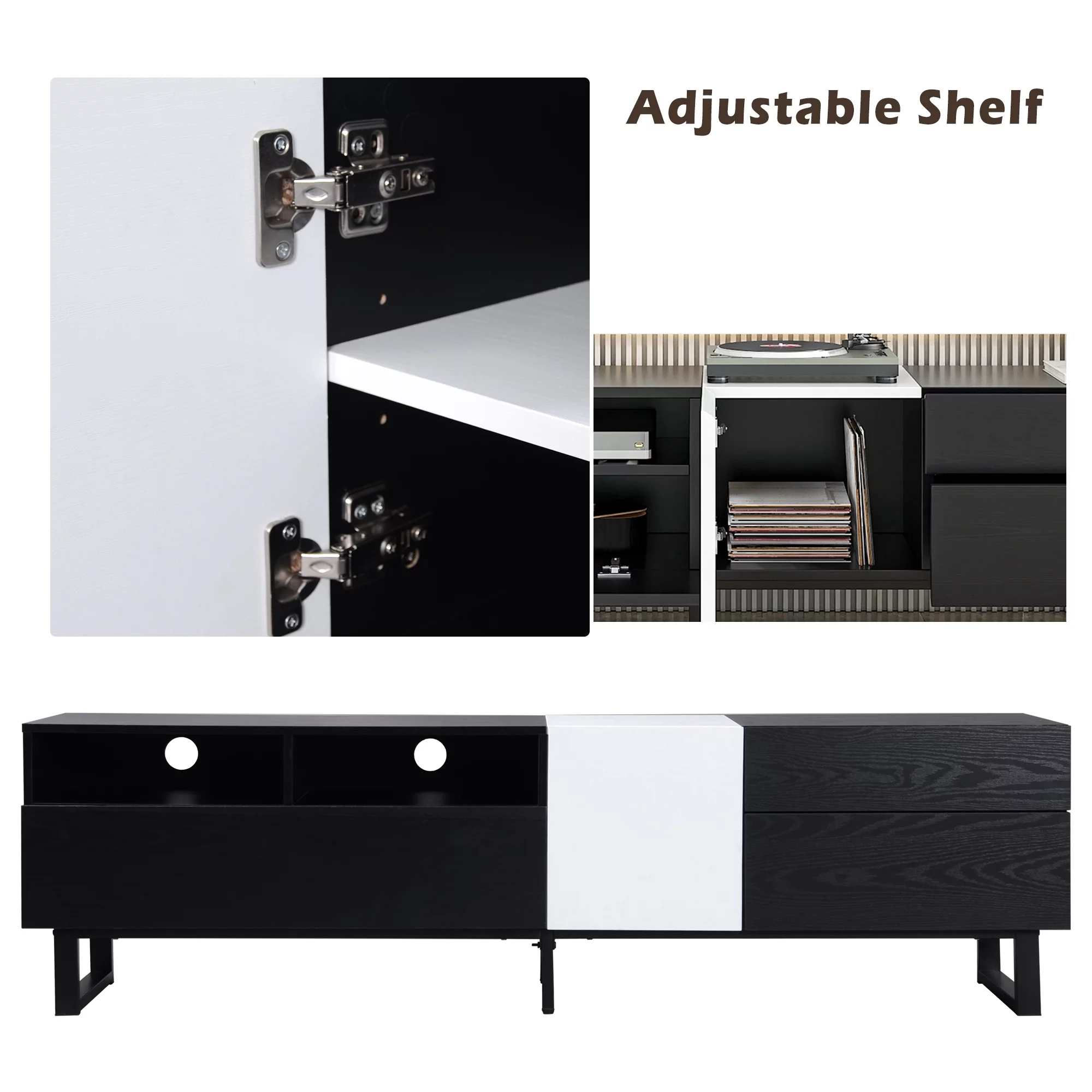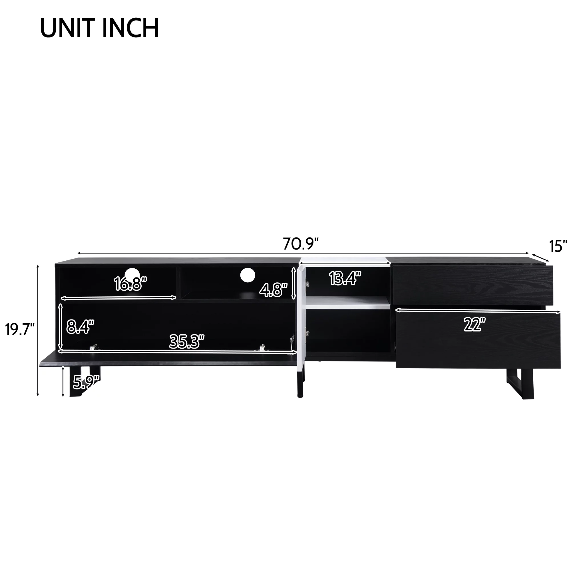 Modern TV Stand for 80'' TV with Double Storage Space, Media Console Table, Entertainment Center with Drop Down Door for Living Room, Bedroom, Home Theatre
