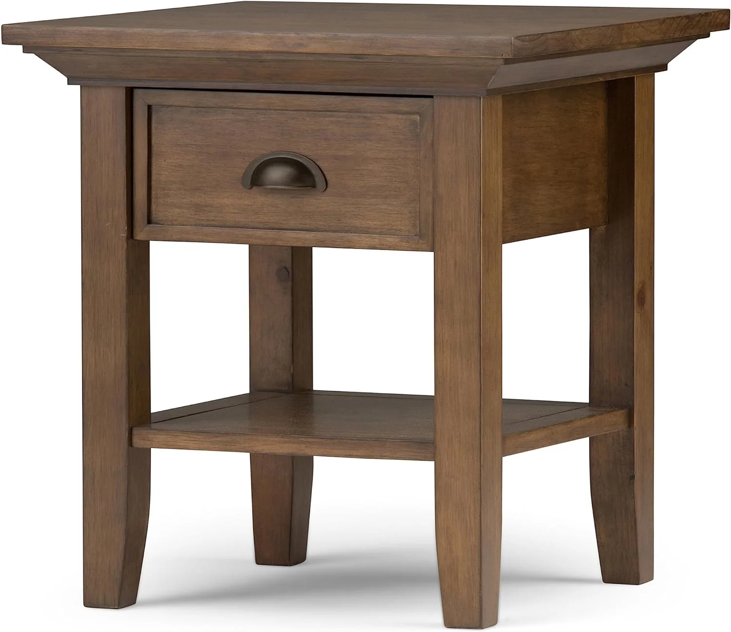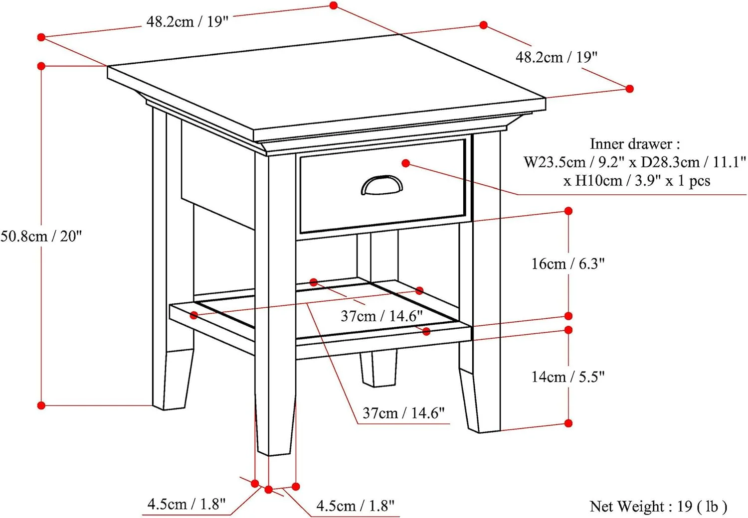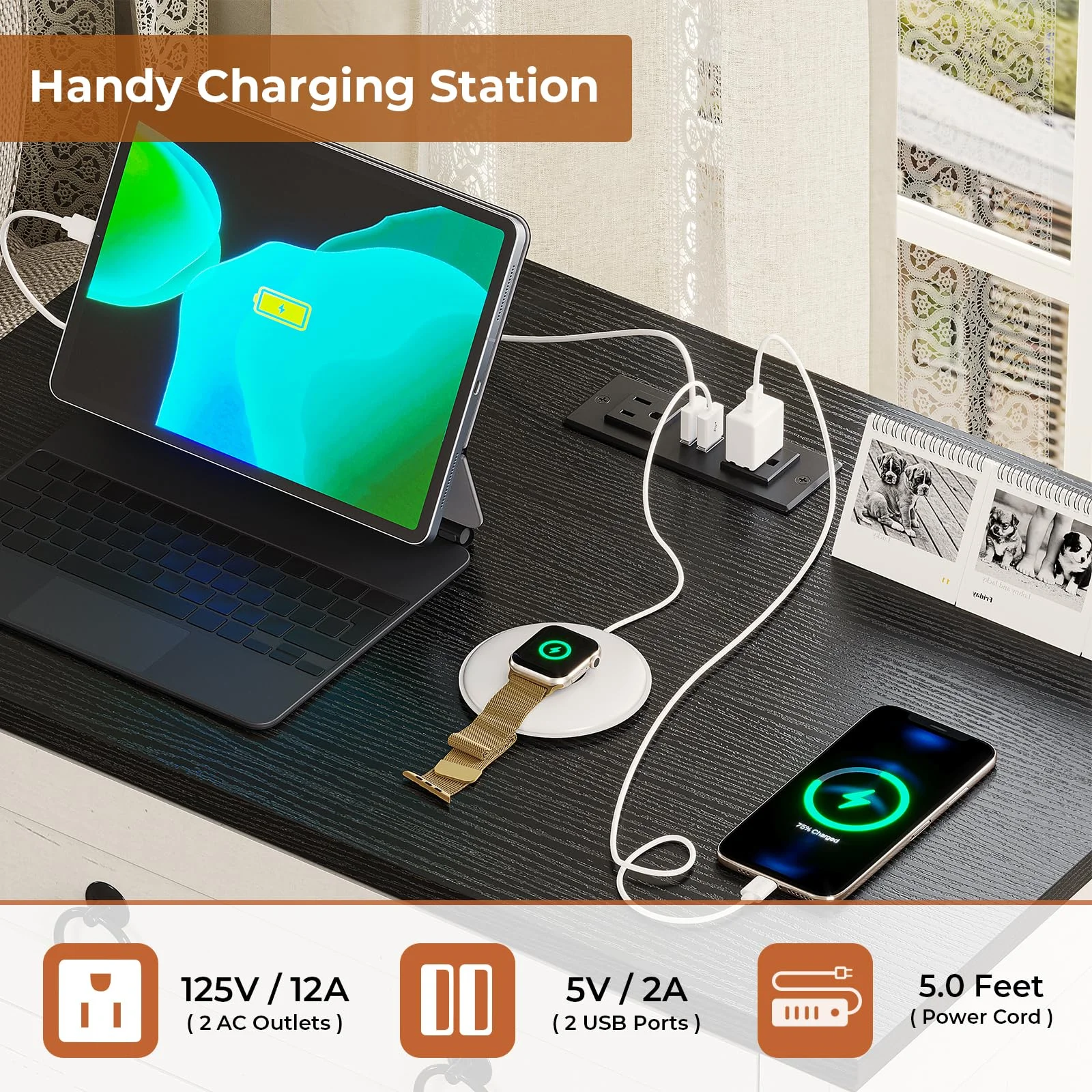 Farmhouse End Table with Charging Station, Side Table with LED Lights, White Night Stand for Living Room, Bedroom