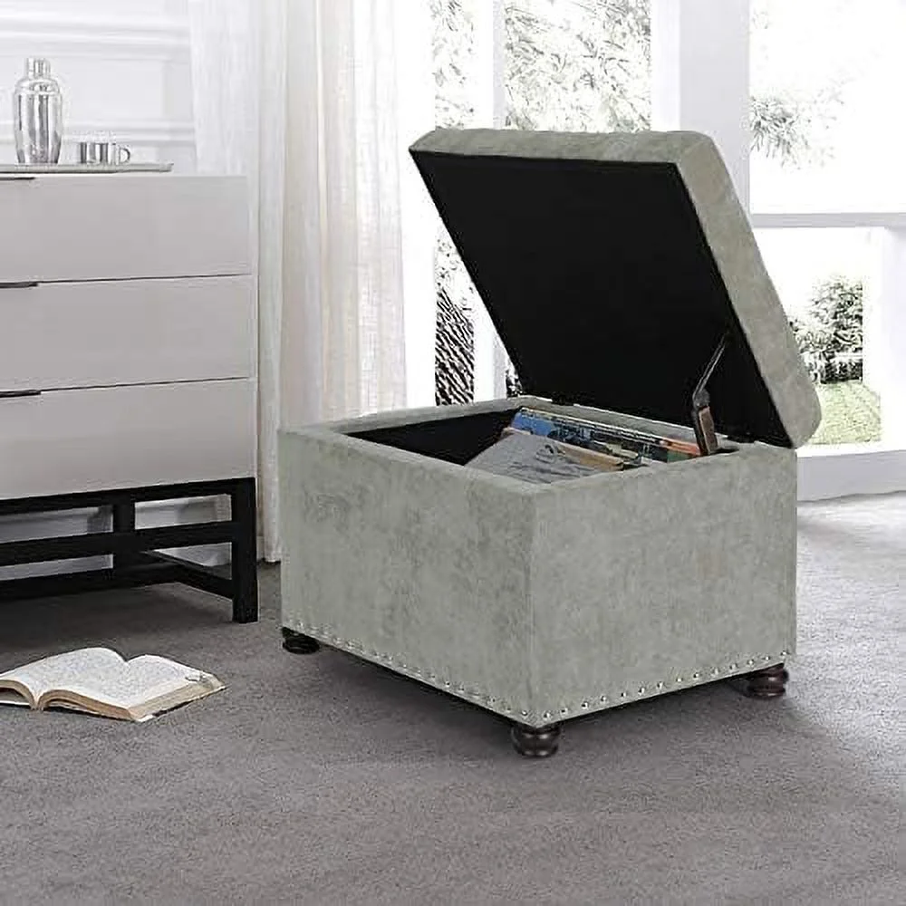 De Ville 24" Rectangle Tufted Lift Top Ottoman Bench Faux Leather Footrest with Foam Padded Seat Red Brown