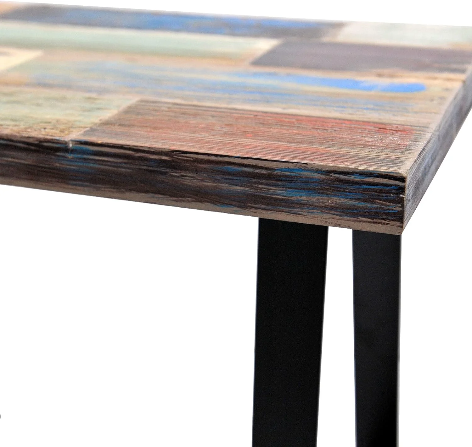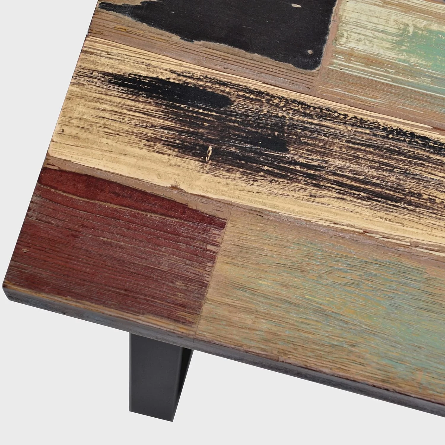 Reclaimed Wood End Table Bedroom With Flat Iron Legs, Small Rectangular Side Tables For Living Room Entryway Bench 13" X 22" X 16.5" Heigh, Brick Rectangle