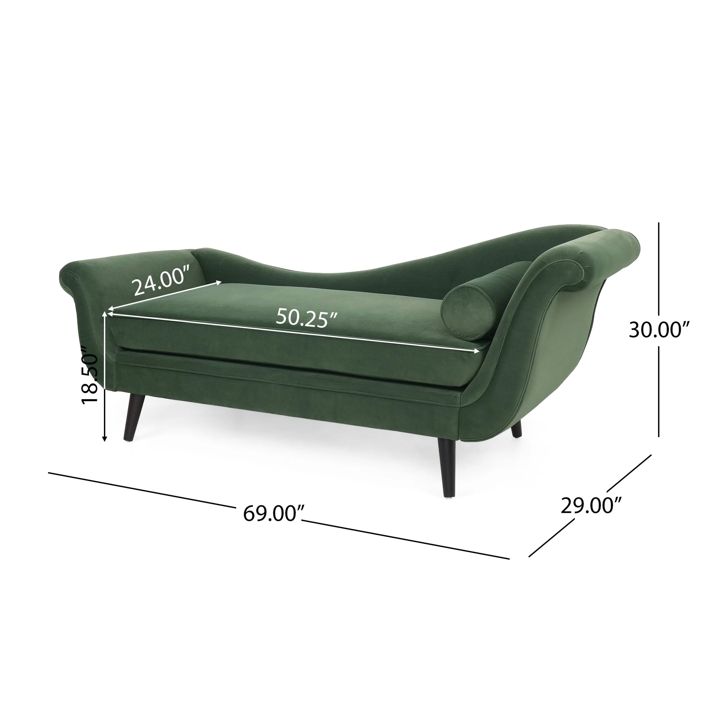 Noble House Xane Indoor Fabric Chaise Lounge With Bolster Pillow, Sage Green