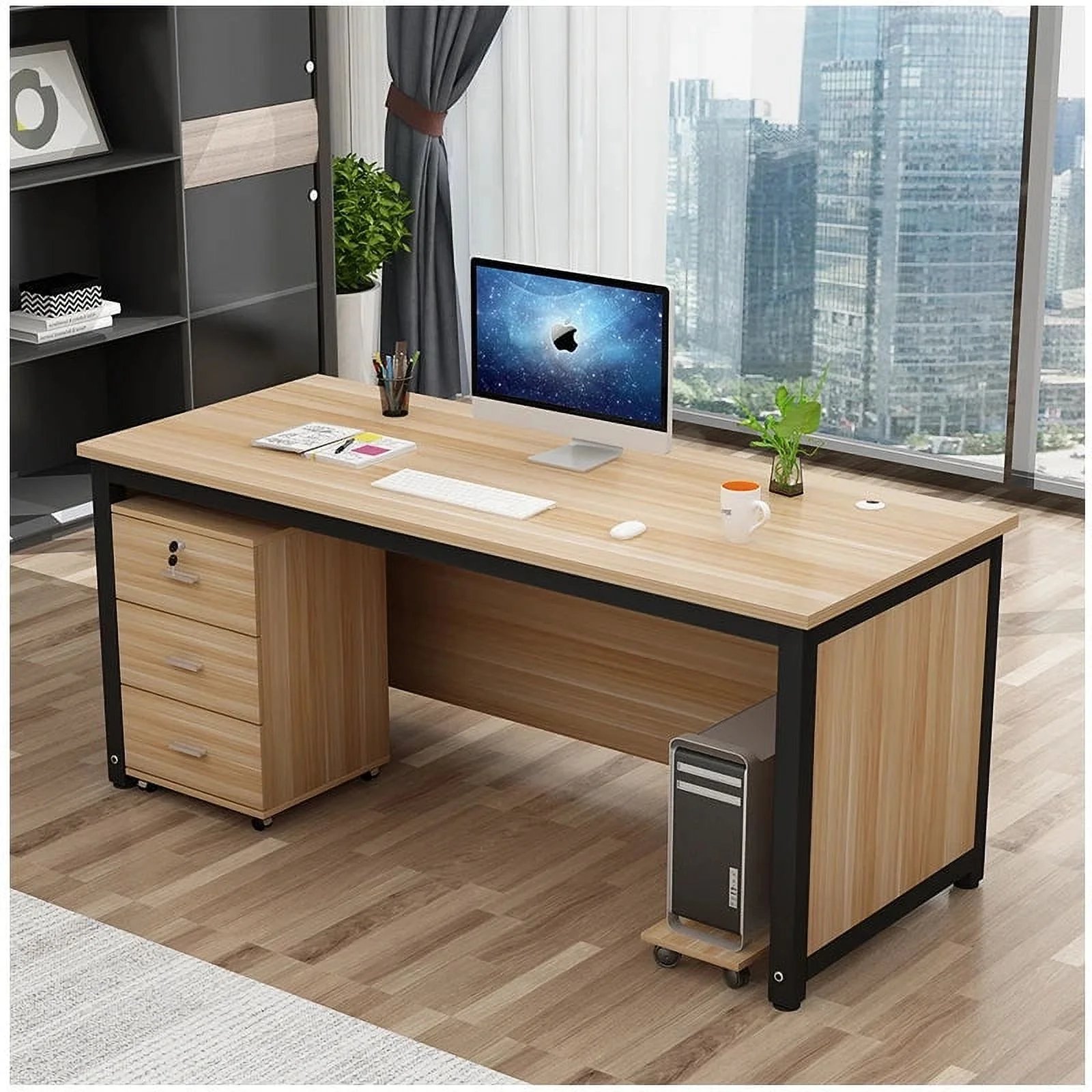 East West Furniture Driscoll Round Wooden and Metal End Table in Black/Oak