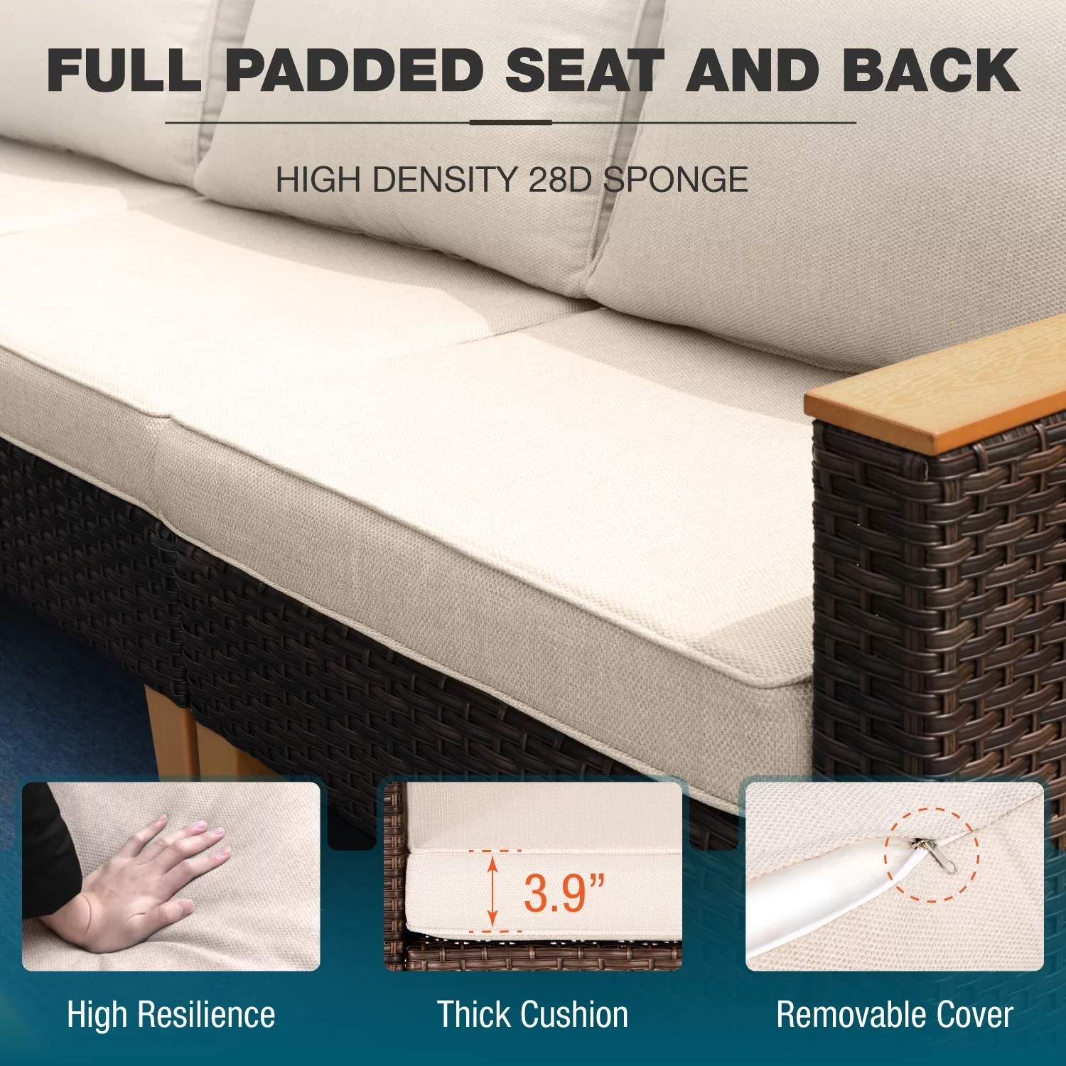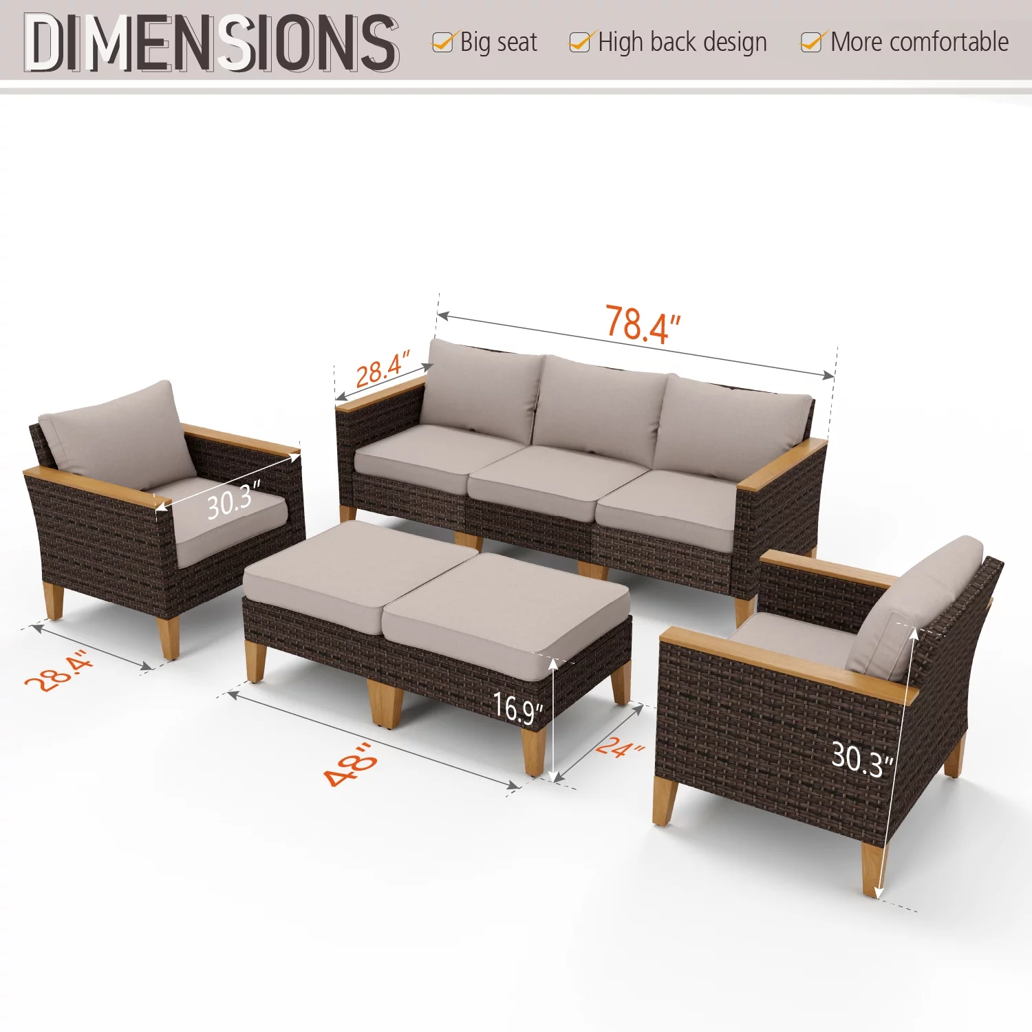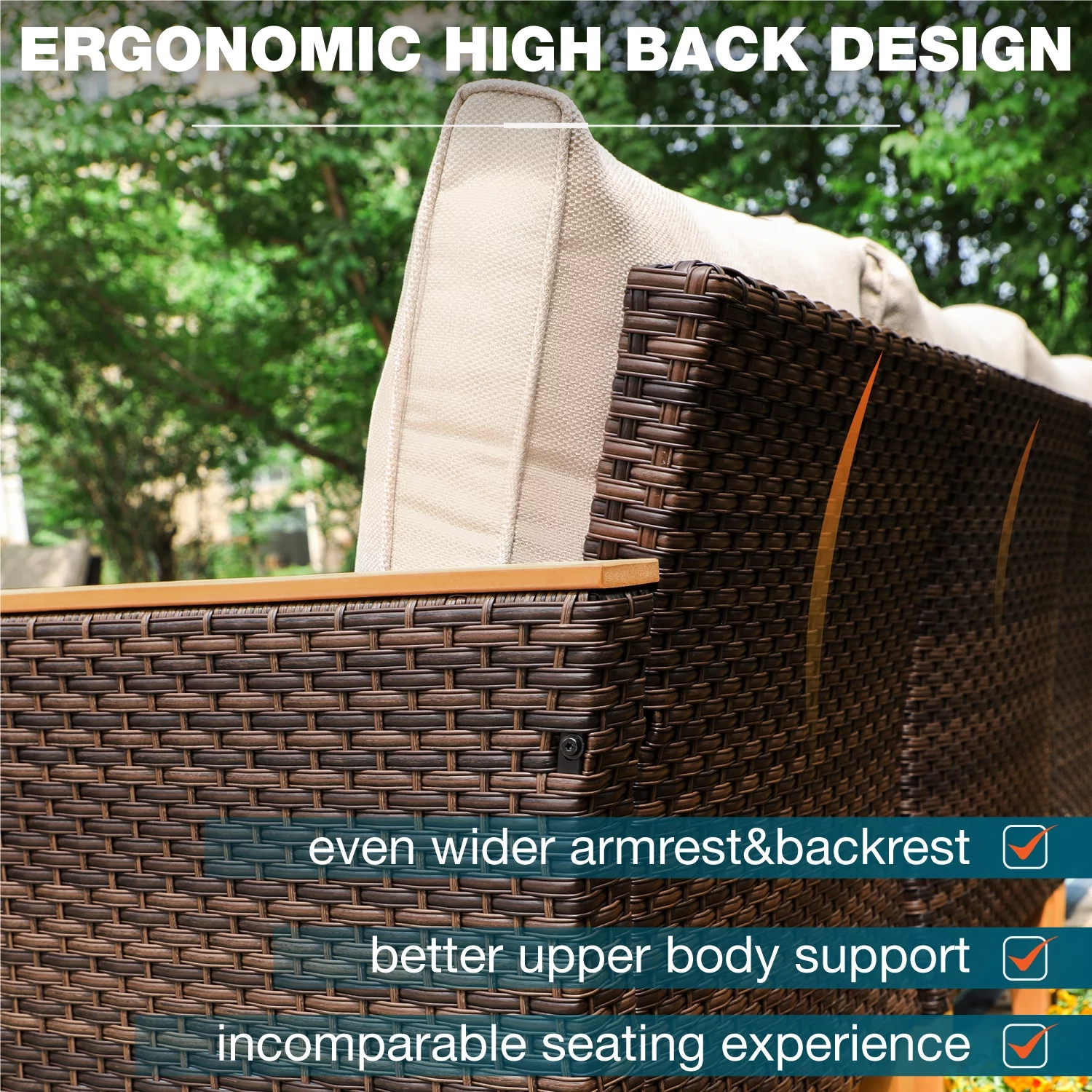 MF Studio 7 Piece Patio Conversation Set Outdoor Wicker Furniture Set Beige