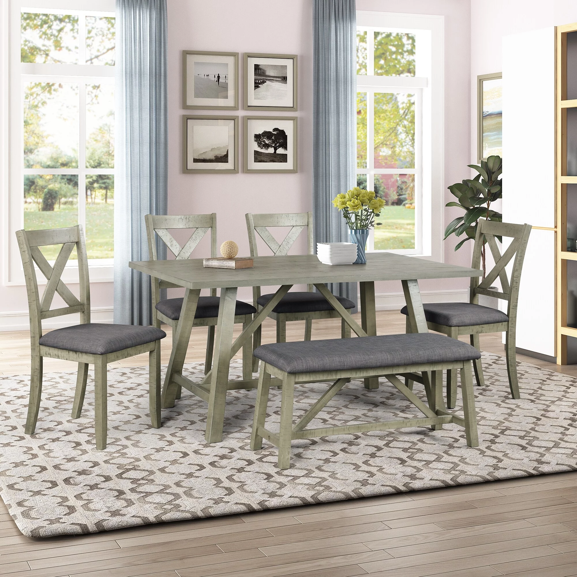 6 Piece Dining Table Set Wood Dining Table and chair Kitchen Table Set